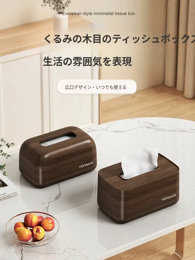 ウォールナット調ティッシュボックス - 高級感溢れるデザインでリビングを彩る!スプリング式で使いやすく、茶卓やデスクにぴったり。おしゃれなインテリアアイテムとしてもおすすめ!