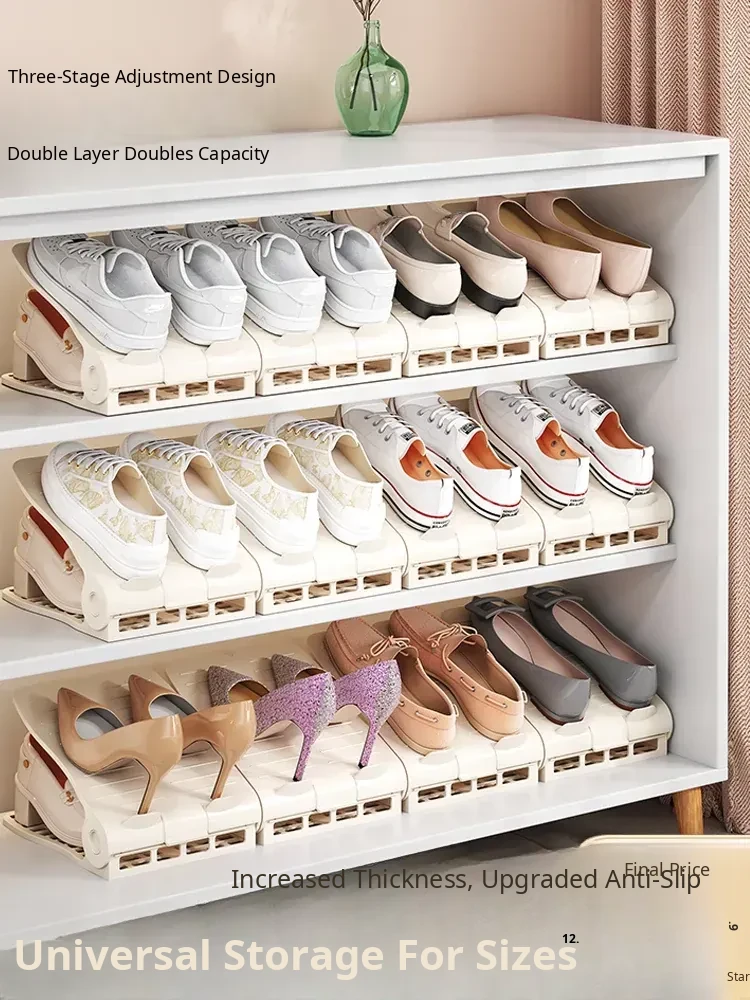 Dual-Layer Shoe Rack - Space-Saving Adjustable Shoe Storage Solution with Dividers and Supports for Home Use, Perfect for Organizing Your Footwear