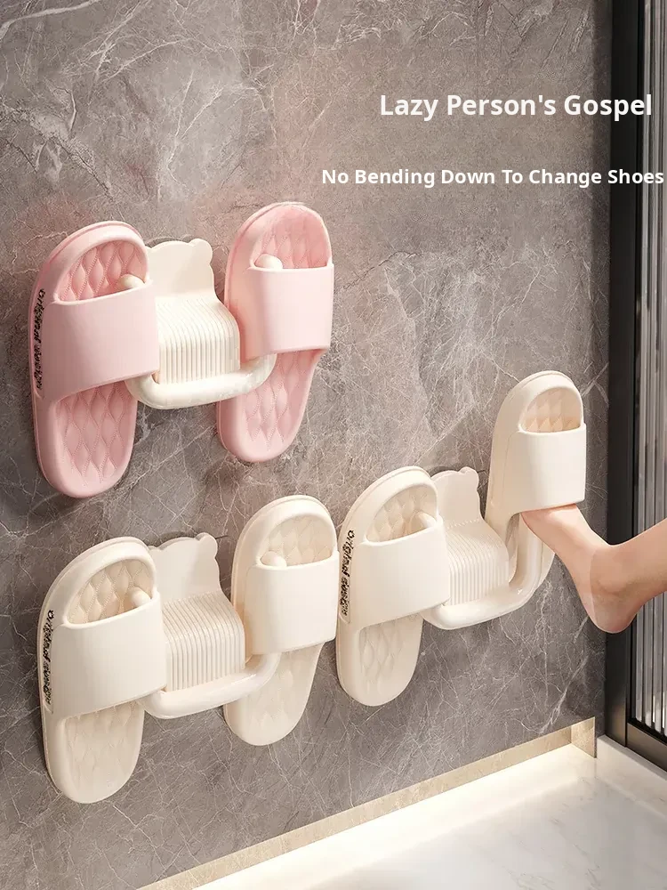 No-Drill Bathroom Slipper Rack - Wall-Mounted Folding Shoe Storage Organizer for Efficient Water Drainage, Perfect for Behind the Door Use!