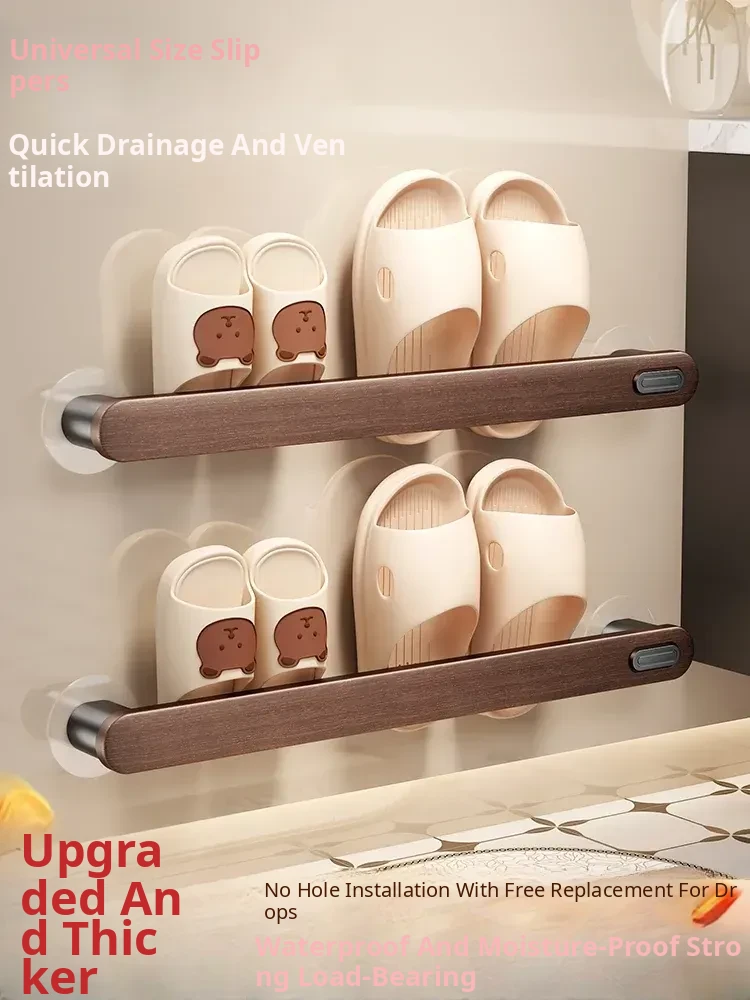 Wall-Mounted Bathroom Slipper Rack - No Drill Required, Space-Saving Shoe Organizer with Drainage for Towels and Bathroom Essentials. Perfect for a Tidy and Stylish Toilet Space!