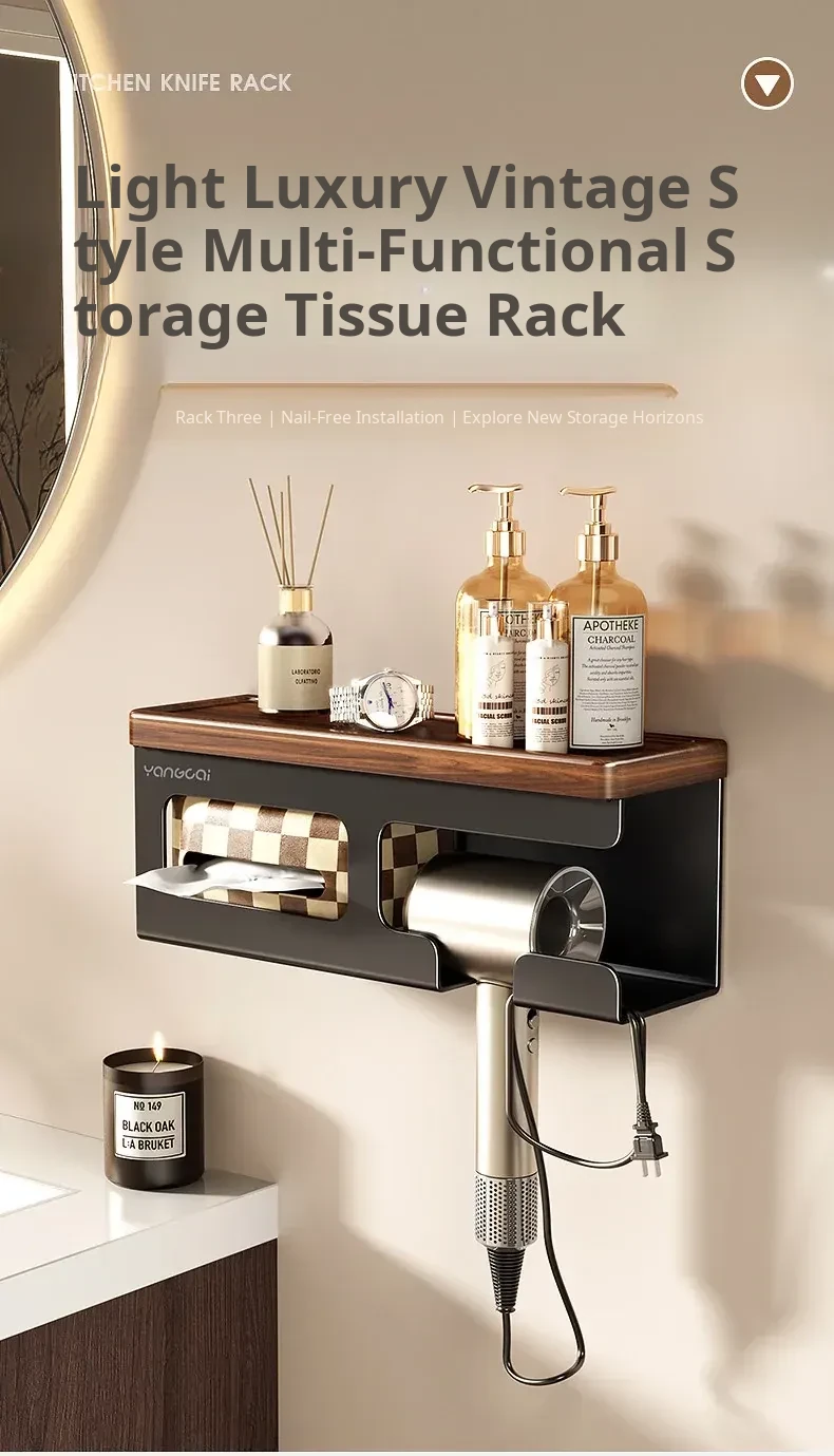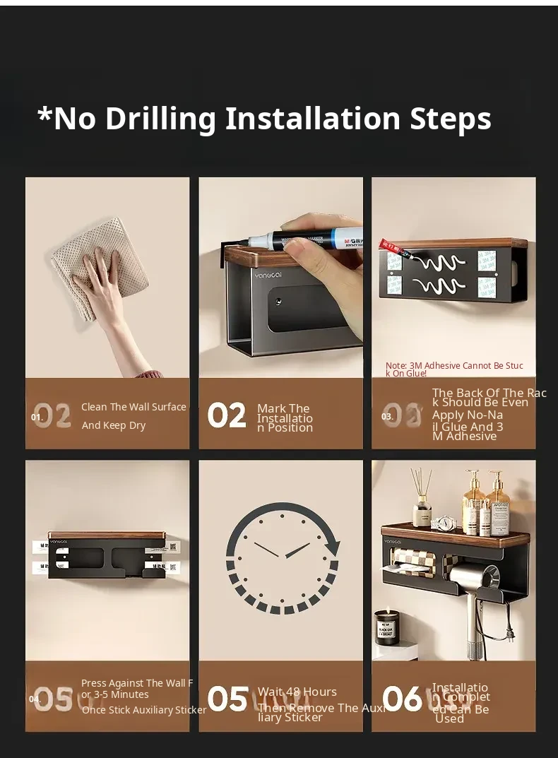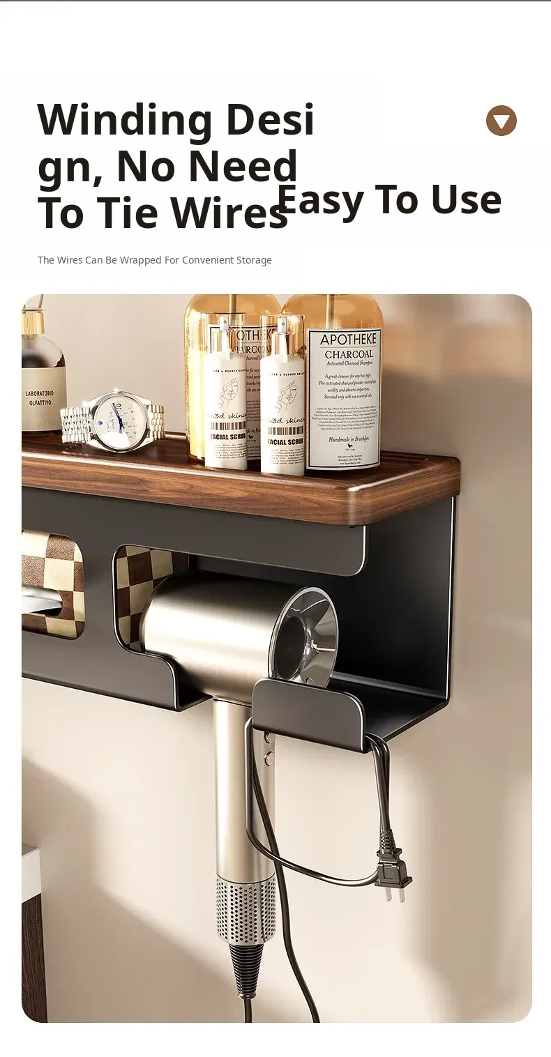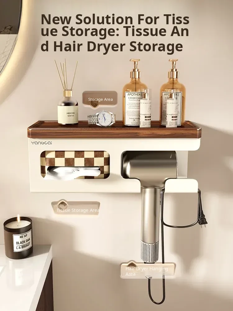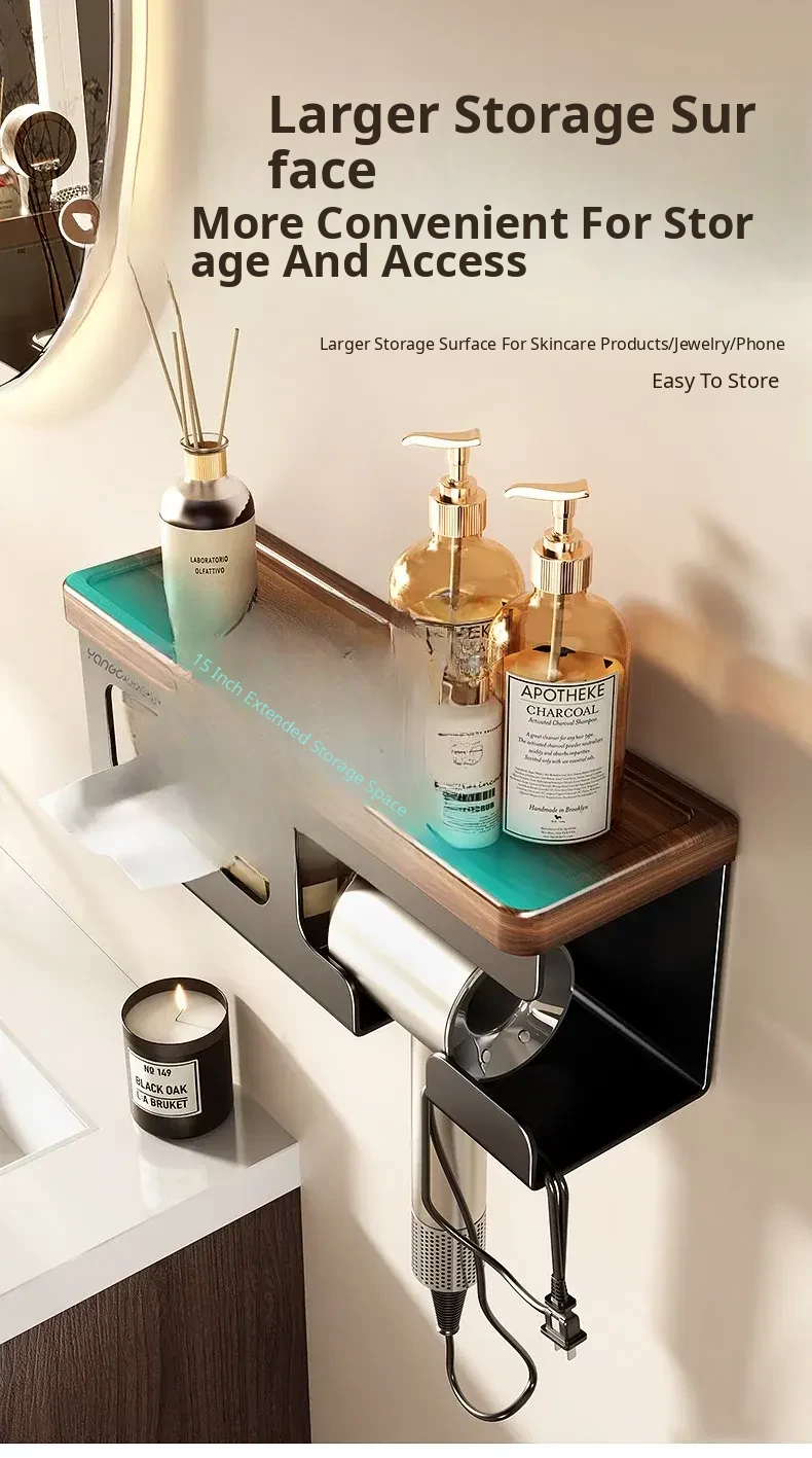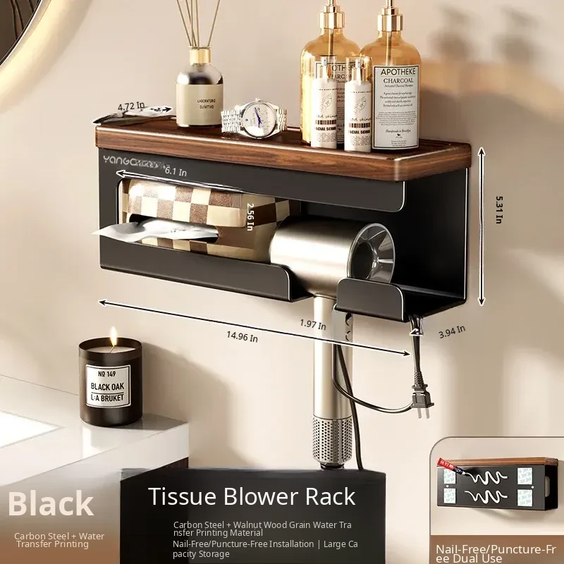 Walnut Grain ● Luxury Model [Paper Towel Hair Dryer Rack]