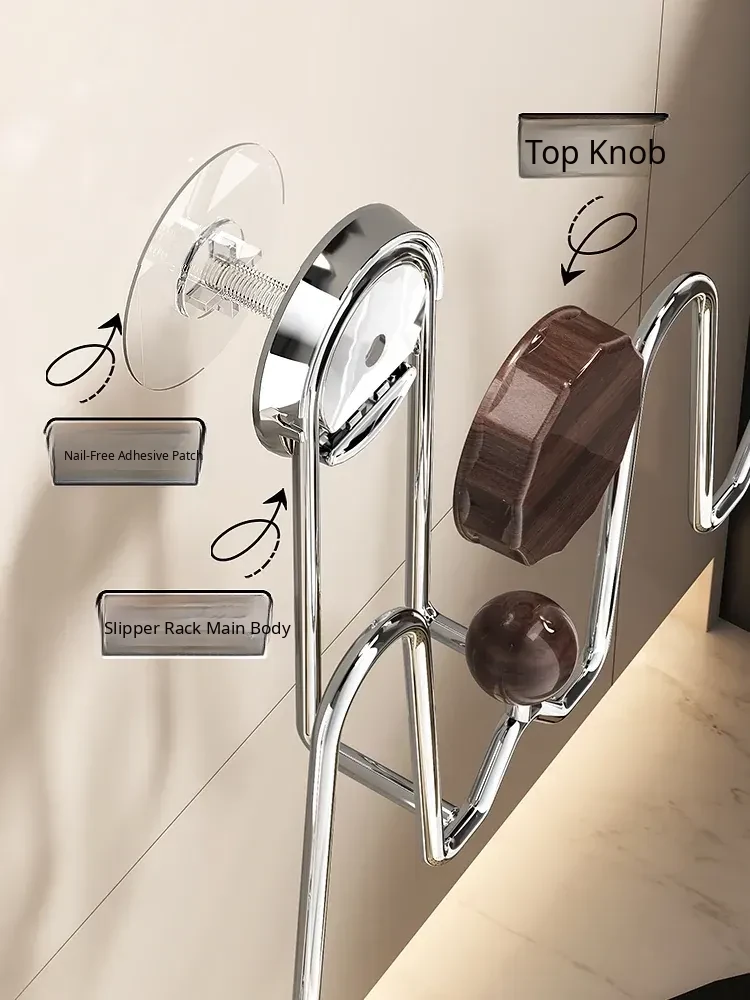Bathroom Suction Cup Shoe Rack - No Drill Wall-Mounted Organizer for Toilets, Drainage Design for Wet Shoes, Space-Saving Storage Solution