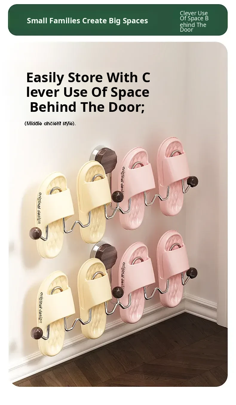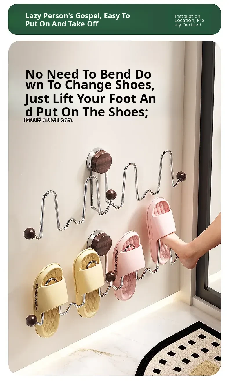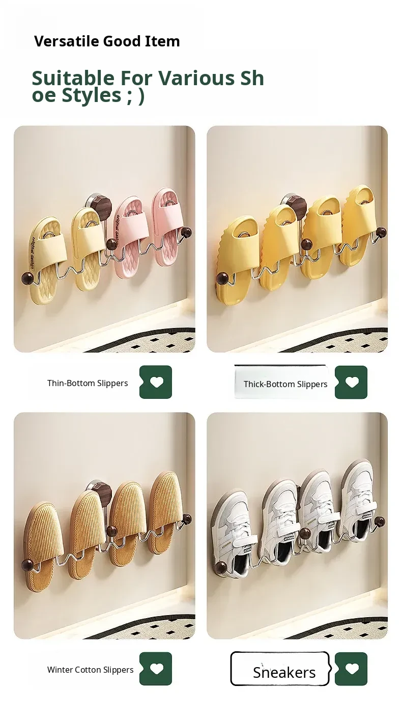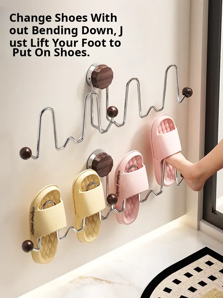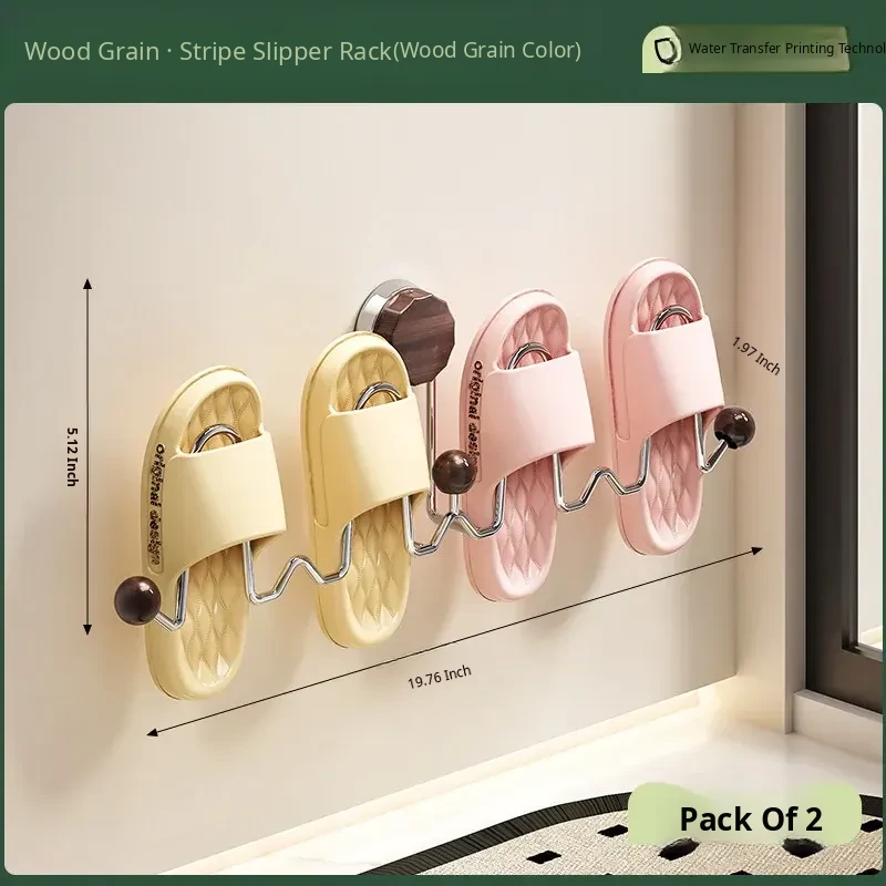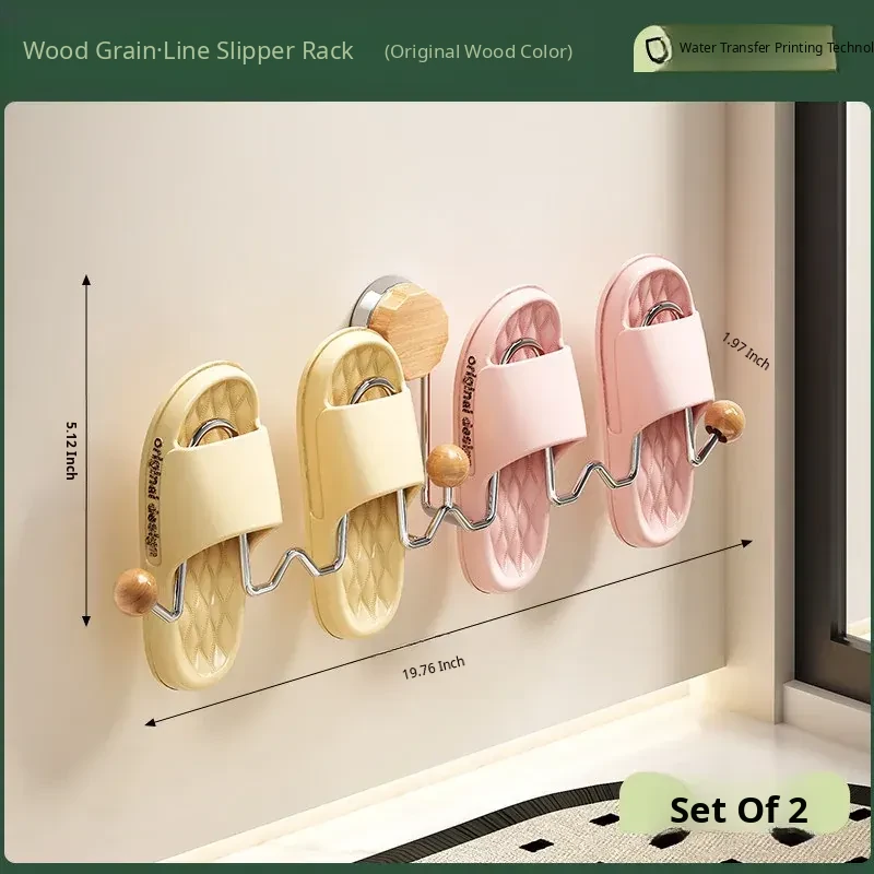 Wood Color●Suction Cup Slipper Rack [Can Hang 2 Pairs]