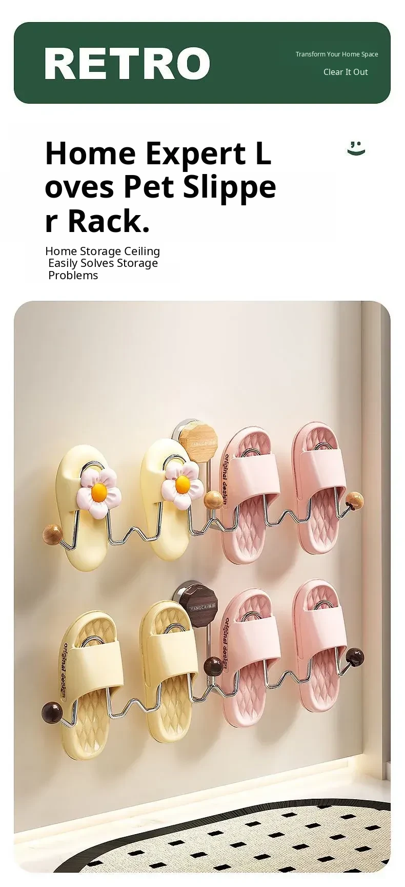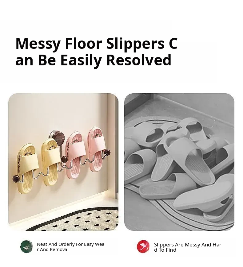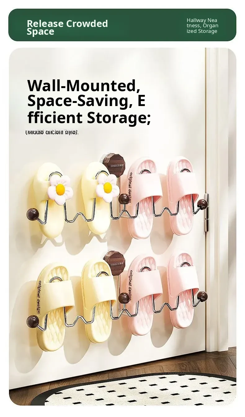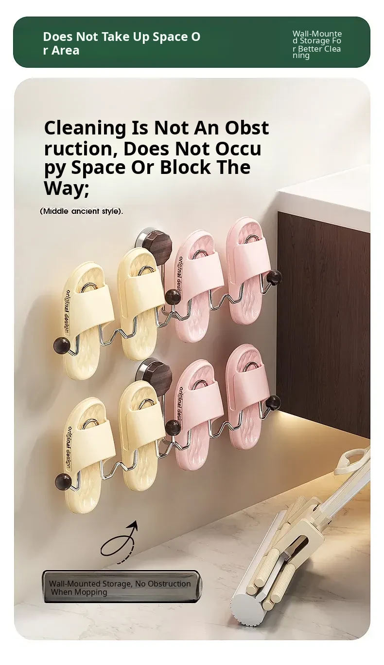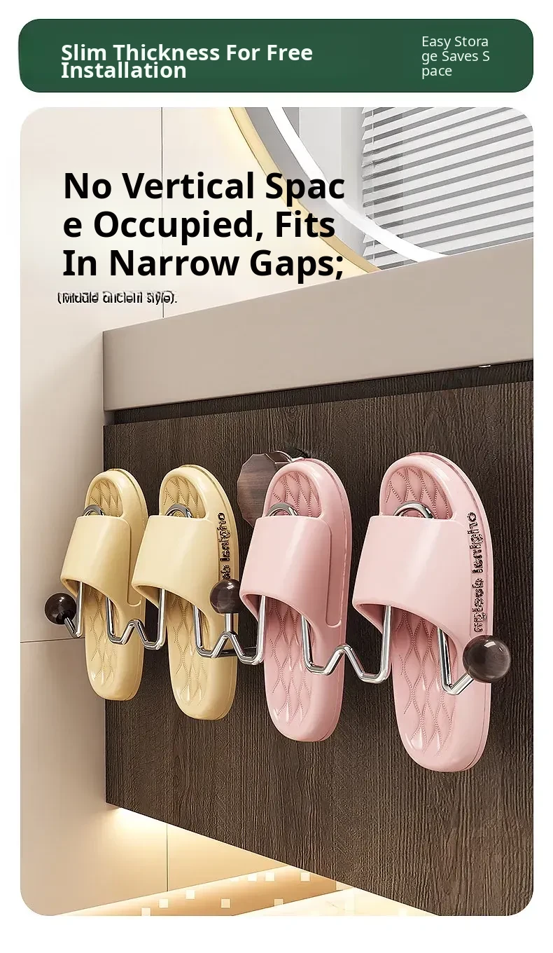 Wood Color●Suction Cup Slipper Rack [Can Hang 2 Pairs]