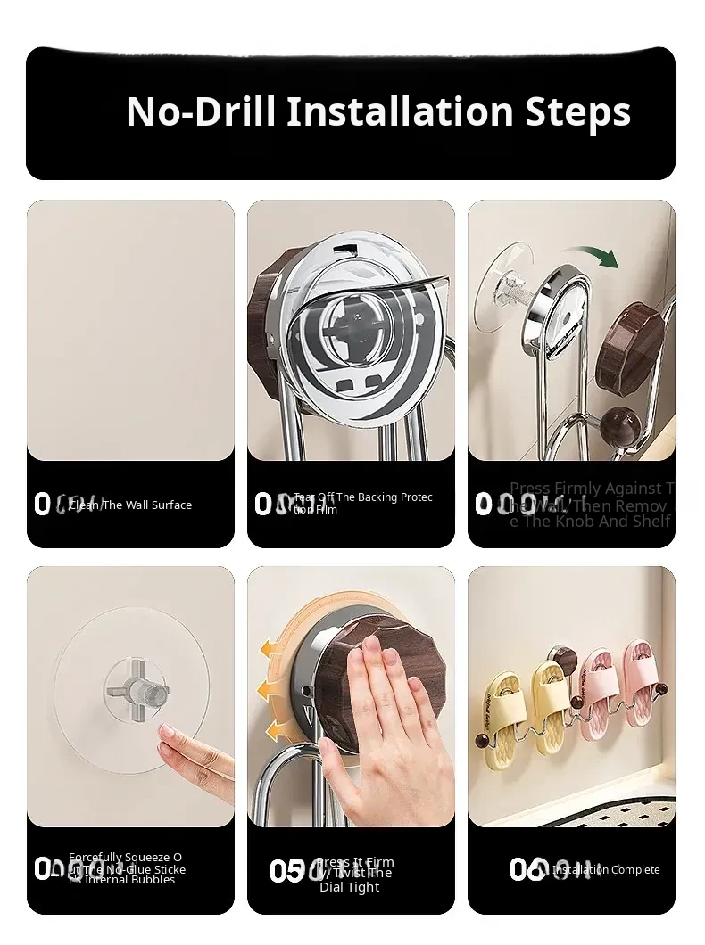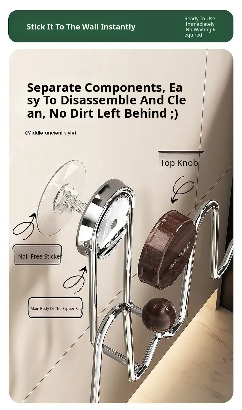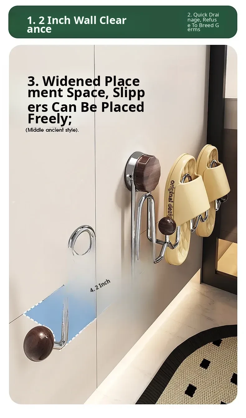 Walnut Color●Suction Cup Slipper Rack [Can Hang 2 Pairs]