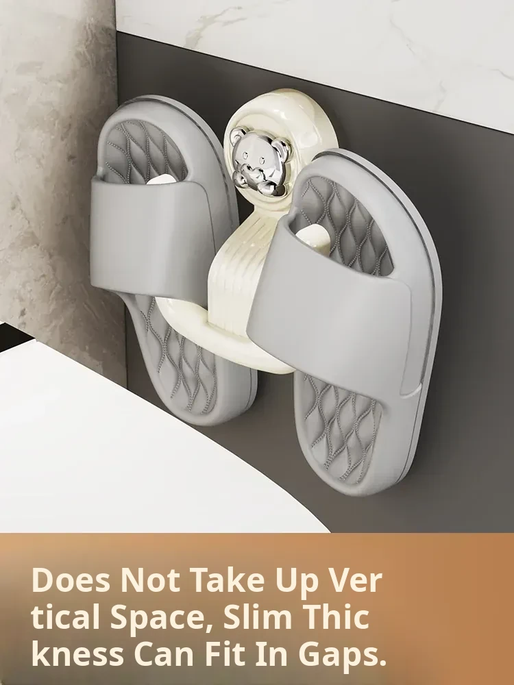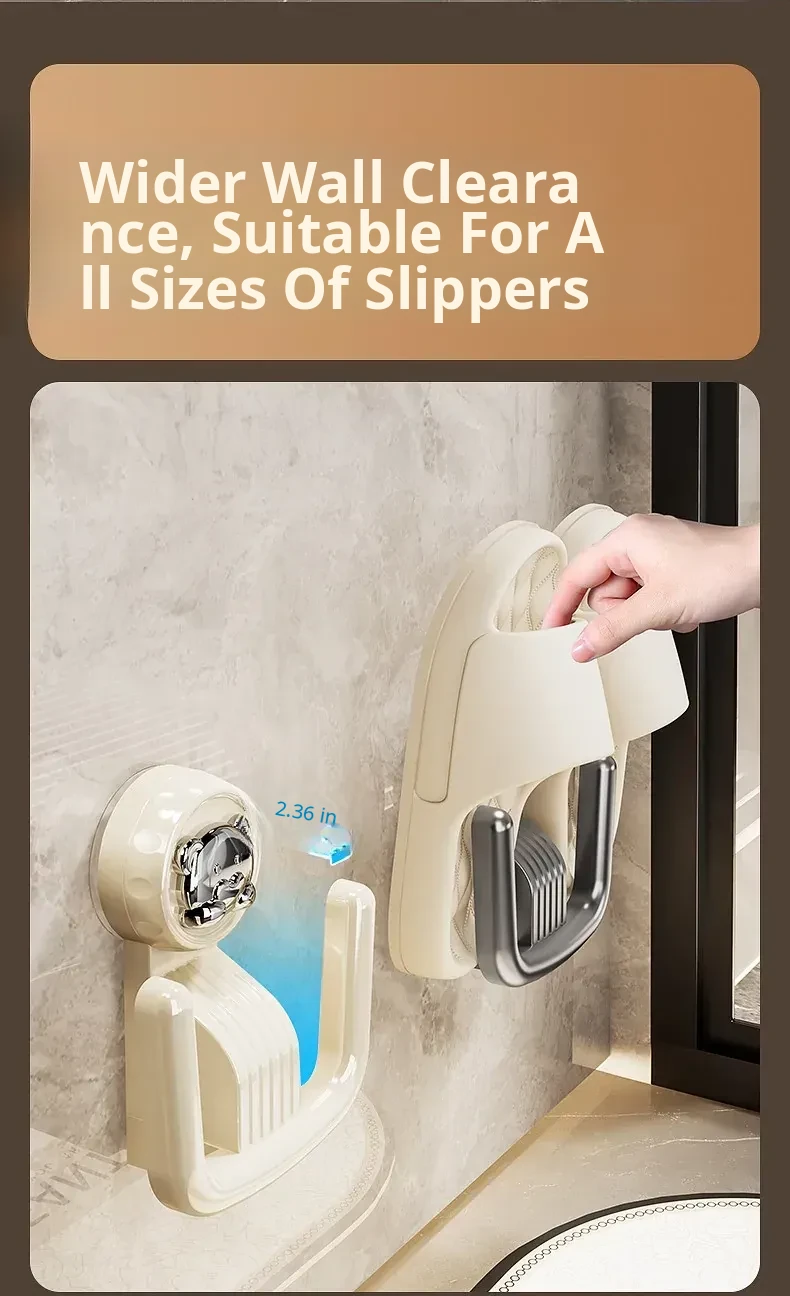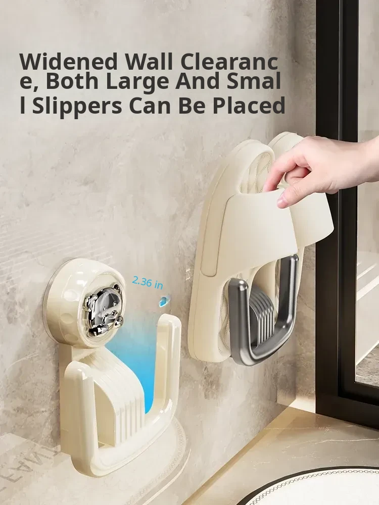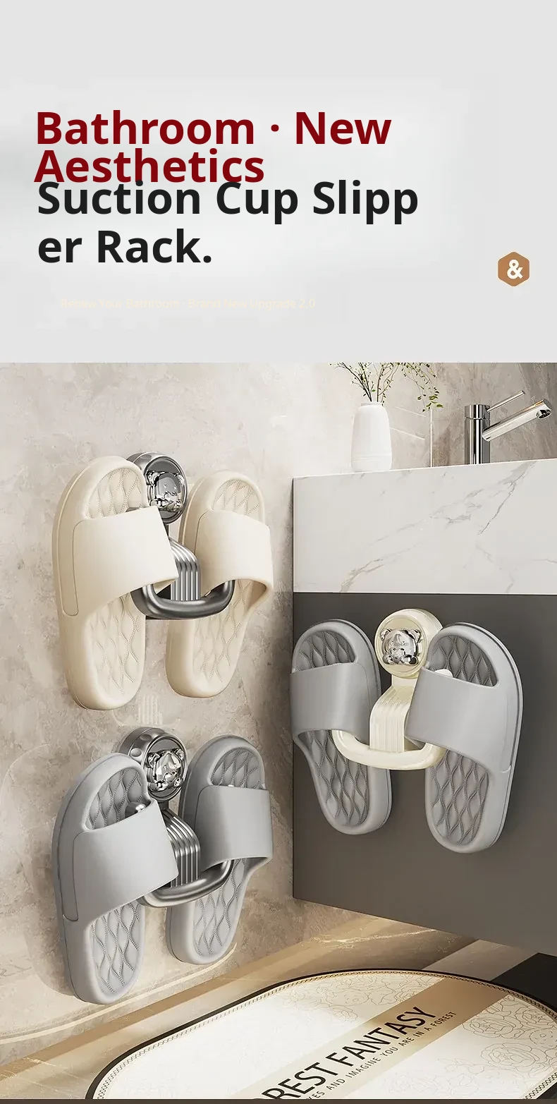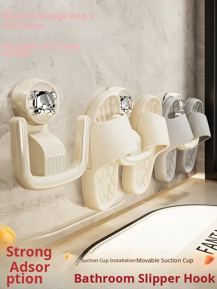 Bathroom Suction Cup Slipper Holder - No Drilling Required Shoe Storage Solution, Wall-Mounted Slipper Rack with Drainage Hooks for Hygienic Organization