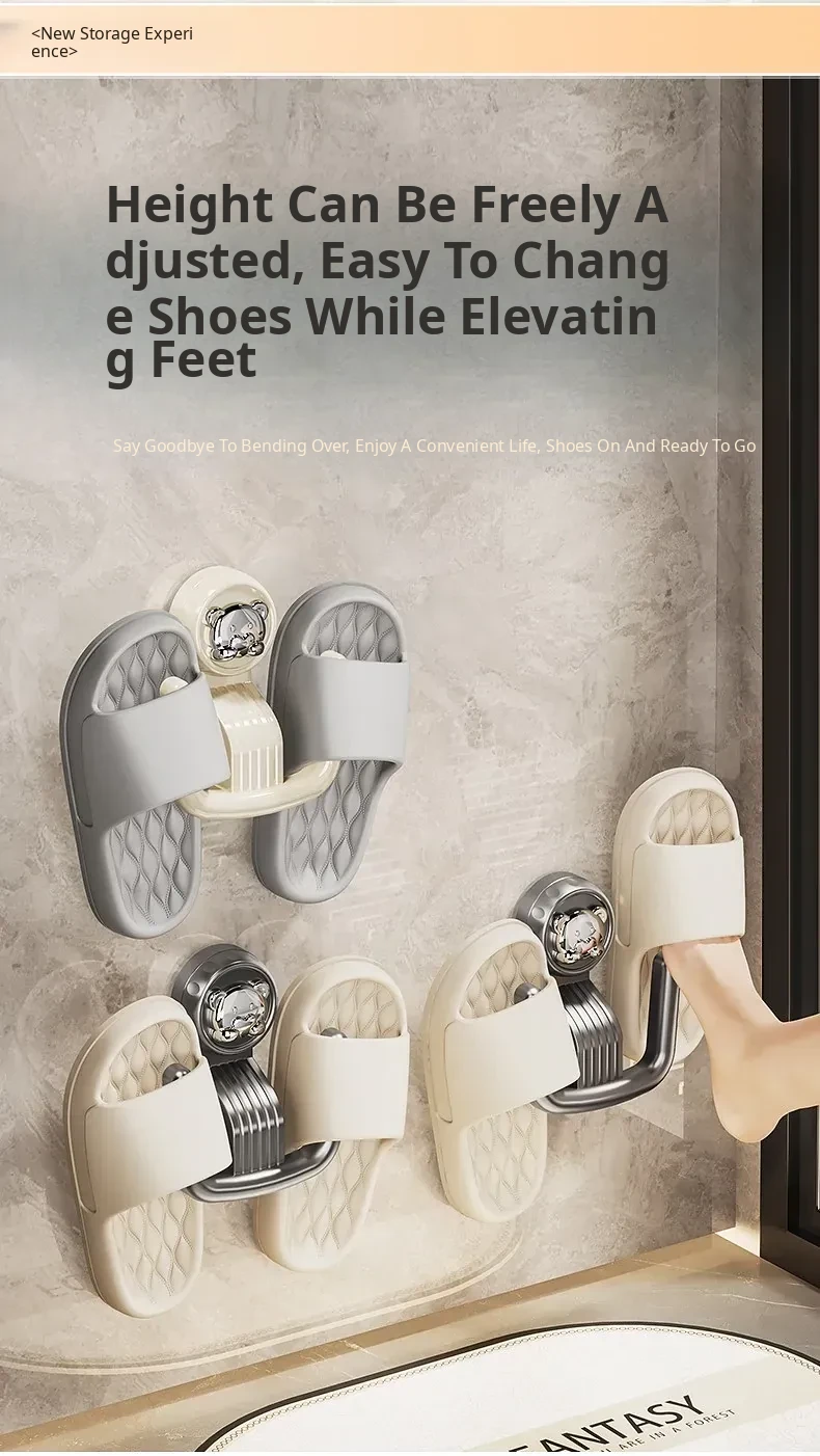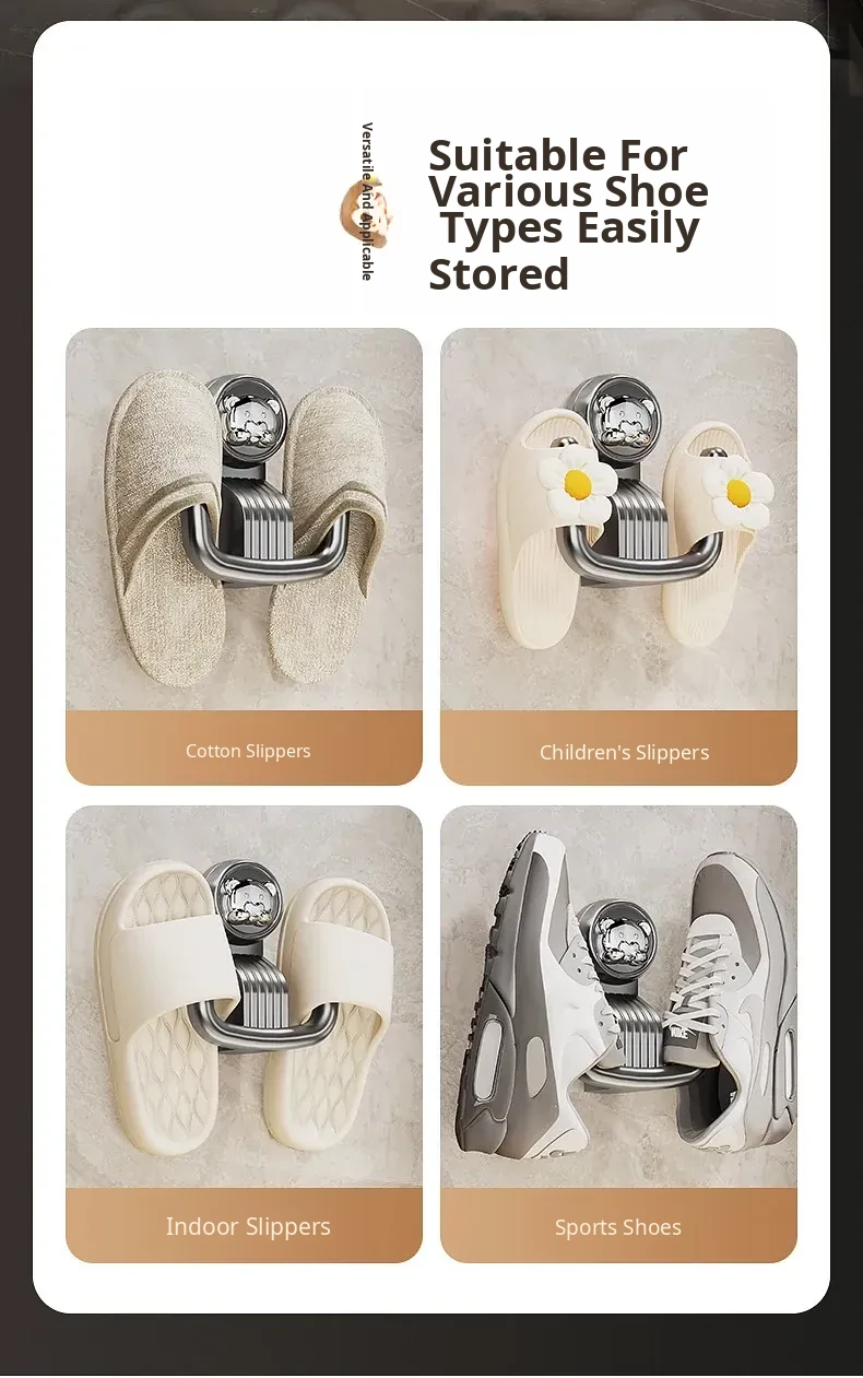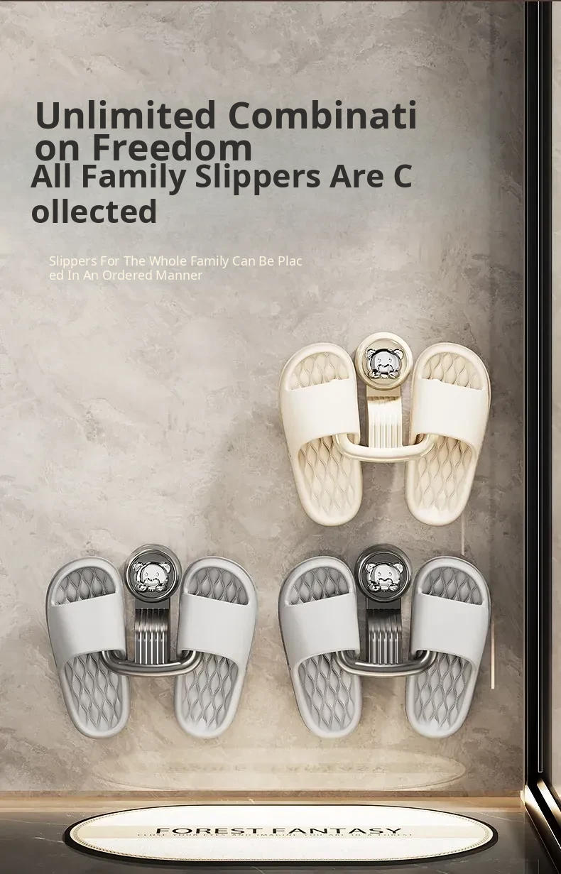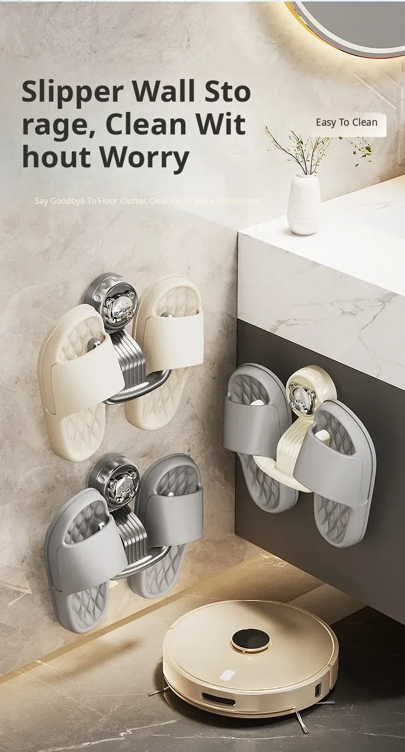 Bathroom Suction Cup Slipper Holder - No Drilling Required Shoe Storage Solution, Wall-Mounted Slipper Rack with Drainage Hooks for Hygienic Organization
