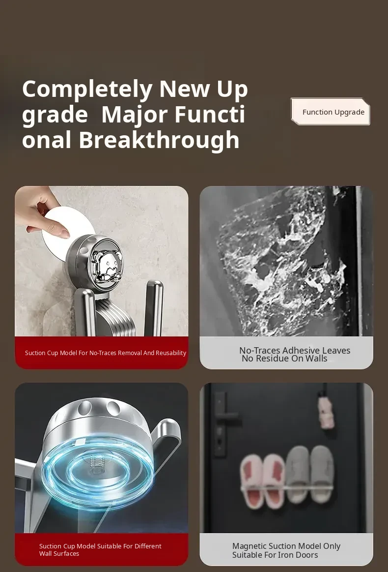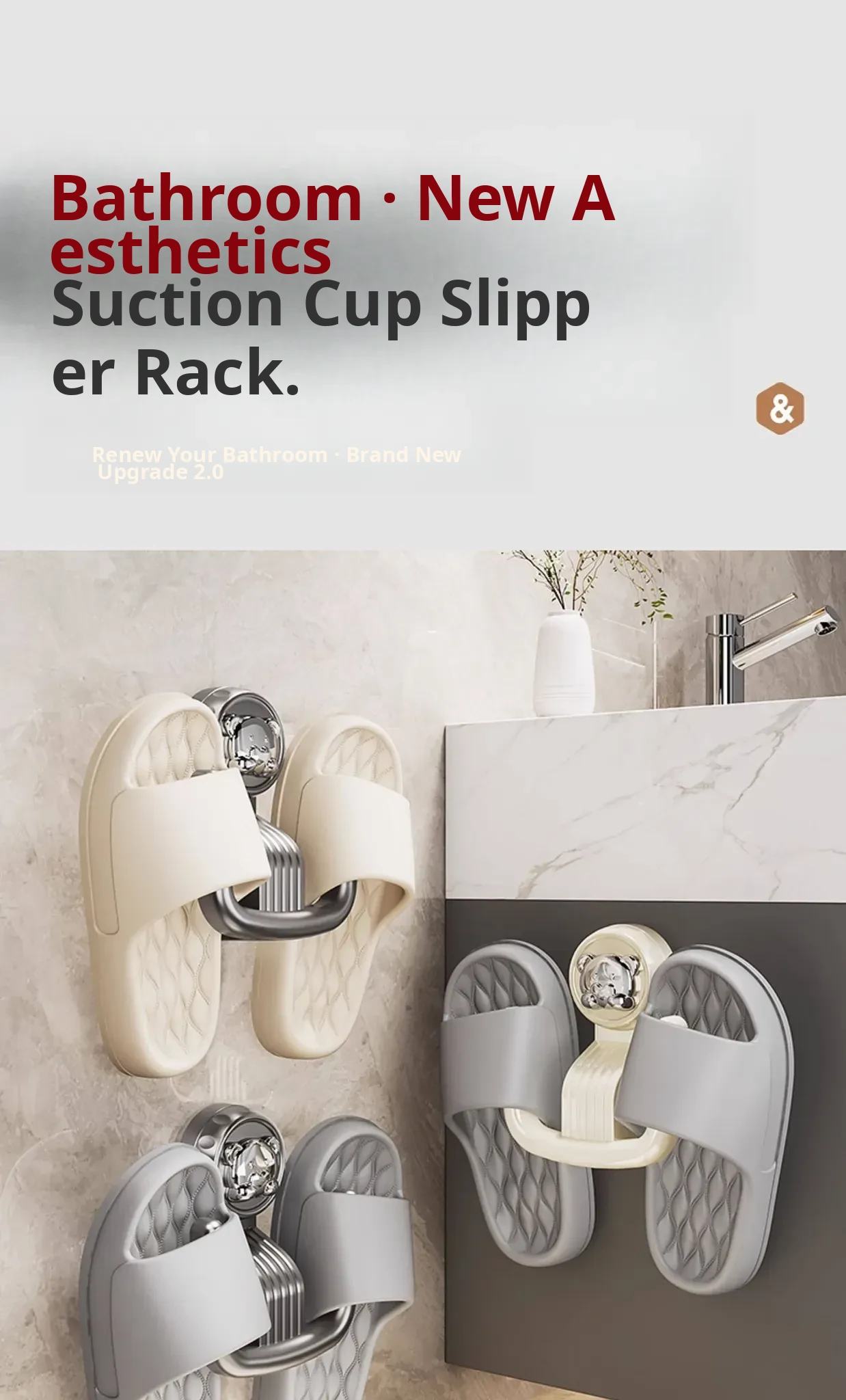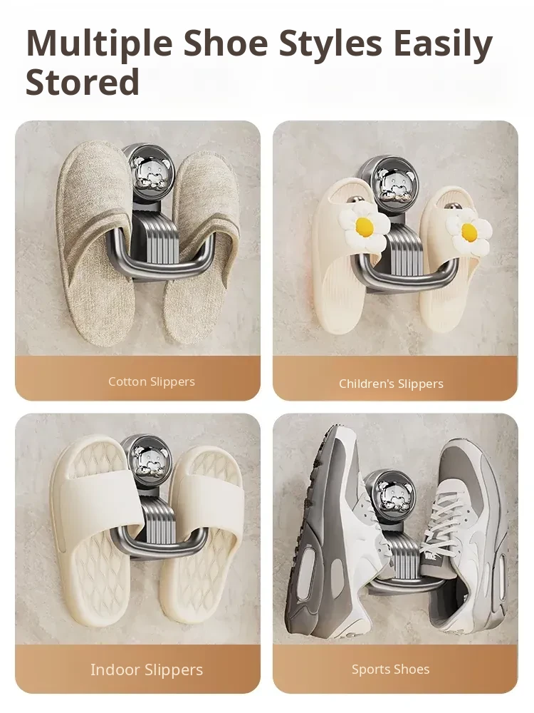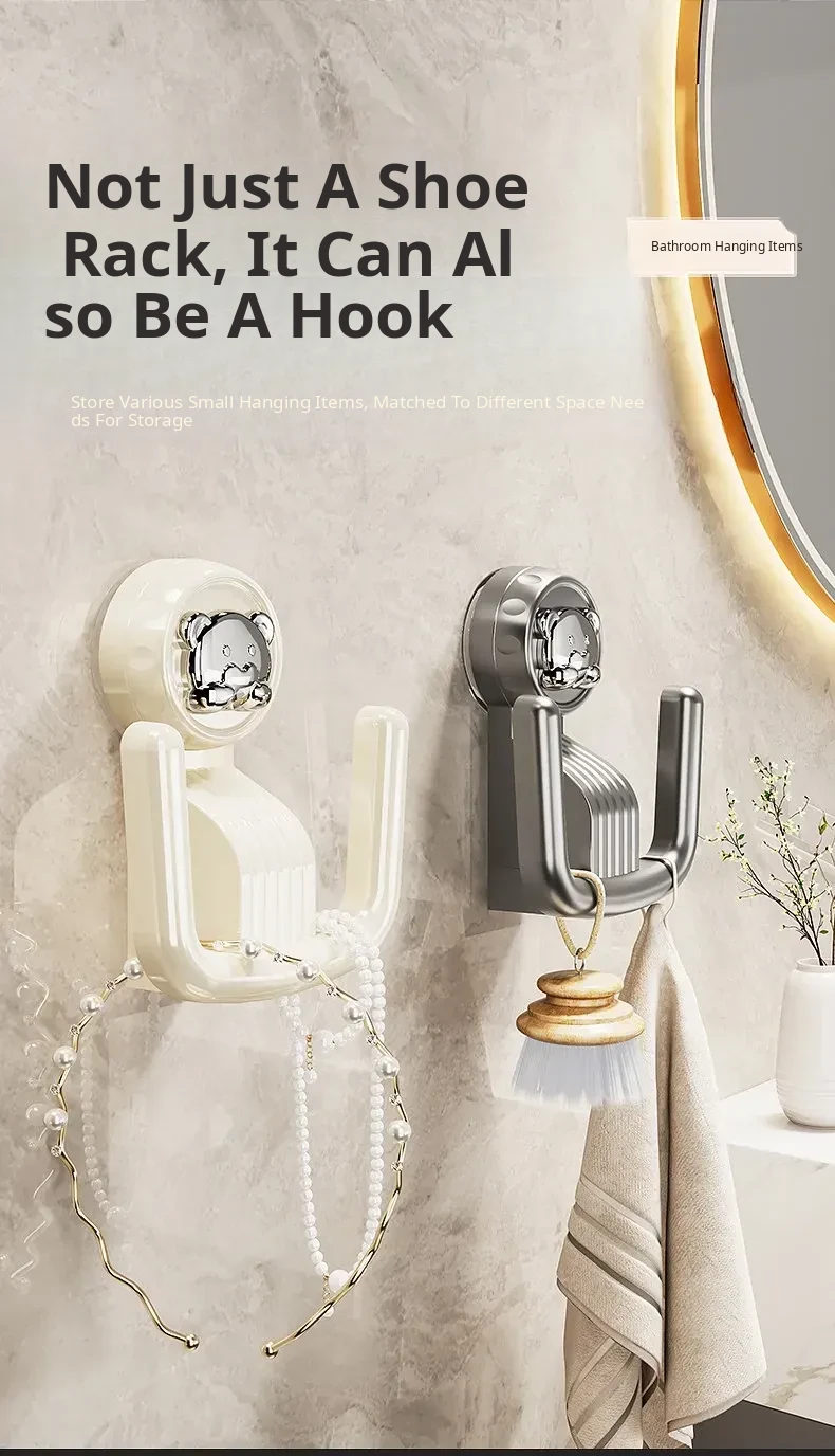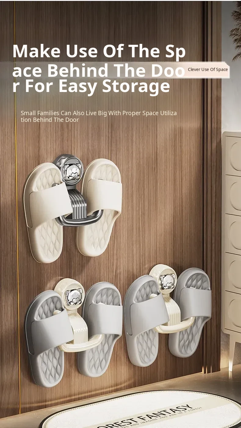 Bathroom Suction Cup Slipper Holder - No Drilling Required Shoe Storage Solution, Wall-Mounted Slipper Rack with Drainage Hooks for Hygienic Organization