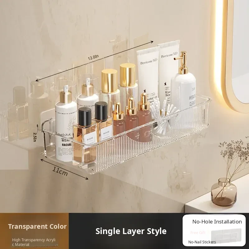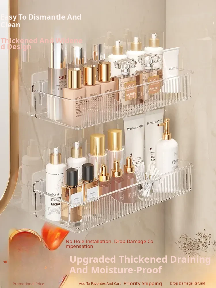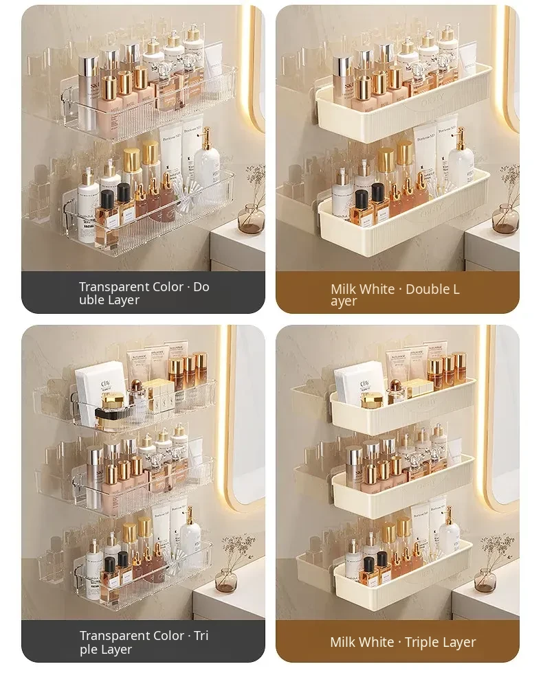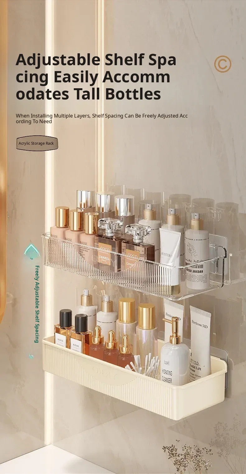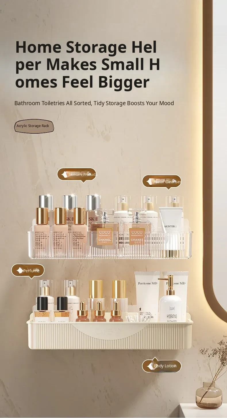 Bathroom Wall-Mounted Storage Rack - No Drilling Required! Stylish and Functional Organizer for Toiletries, Cosmetics, and Essentials - Perfect for Your Bathroom and Vanity!