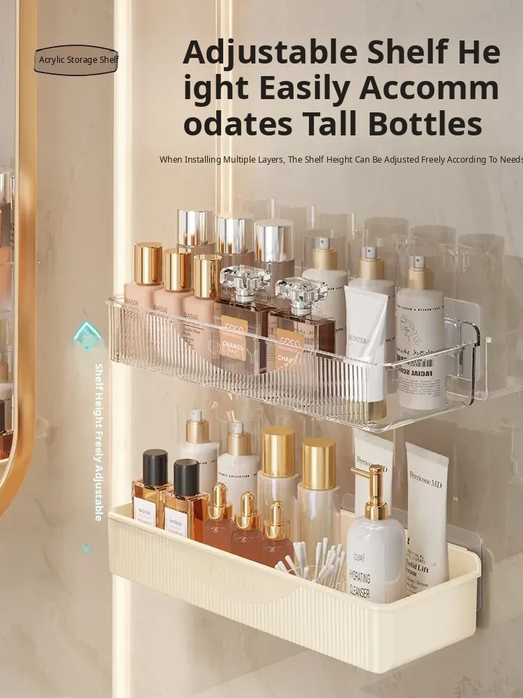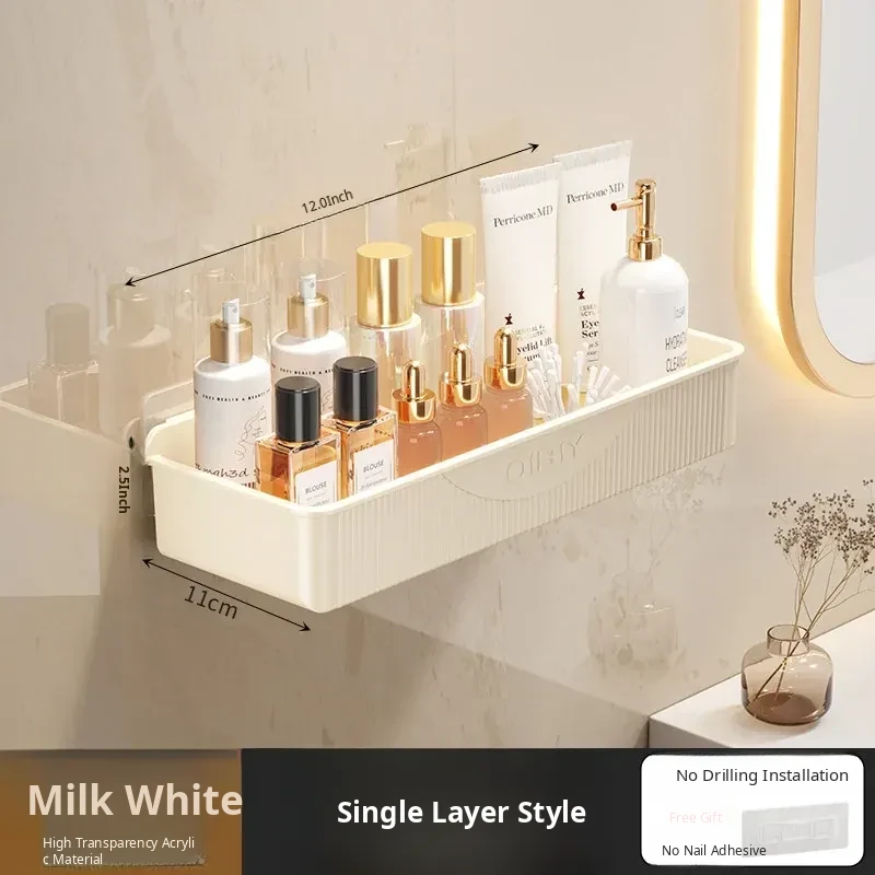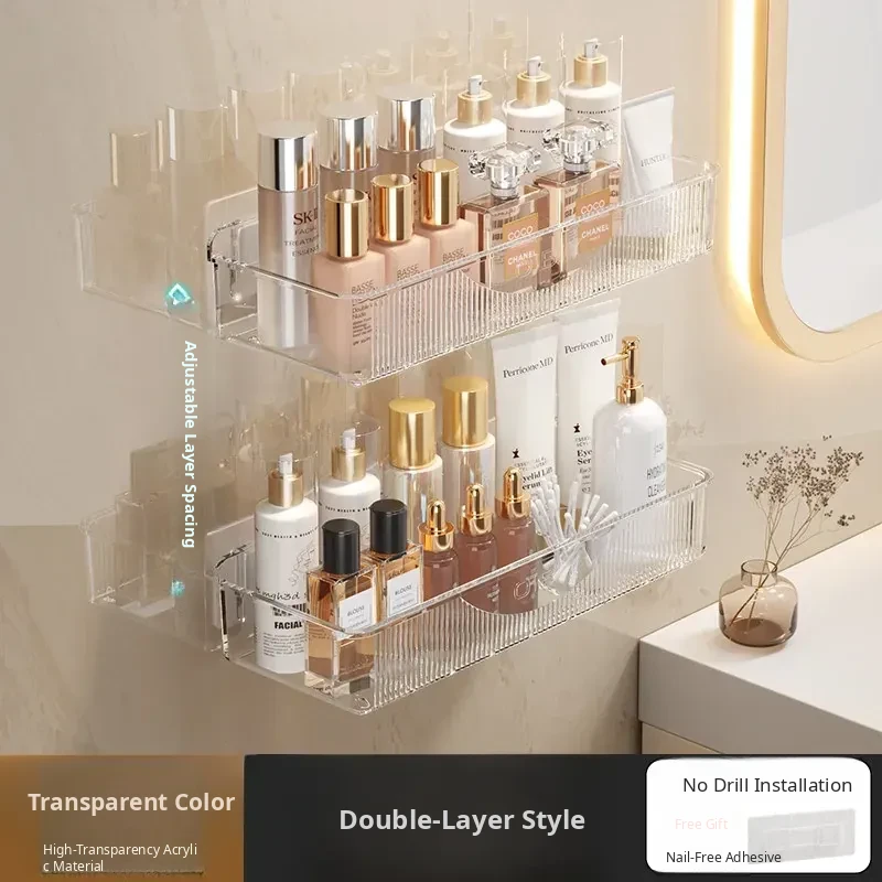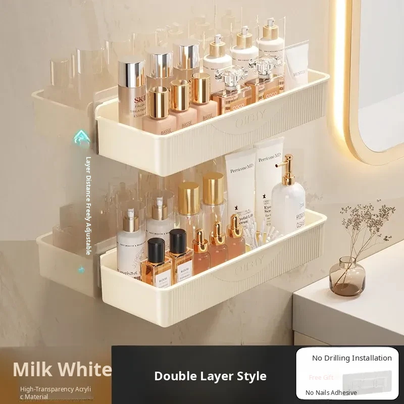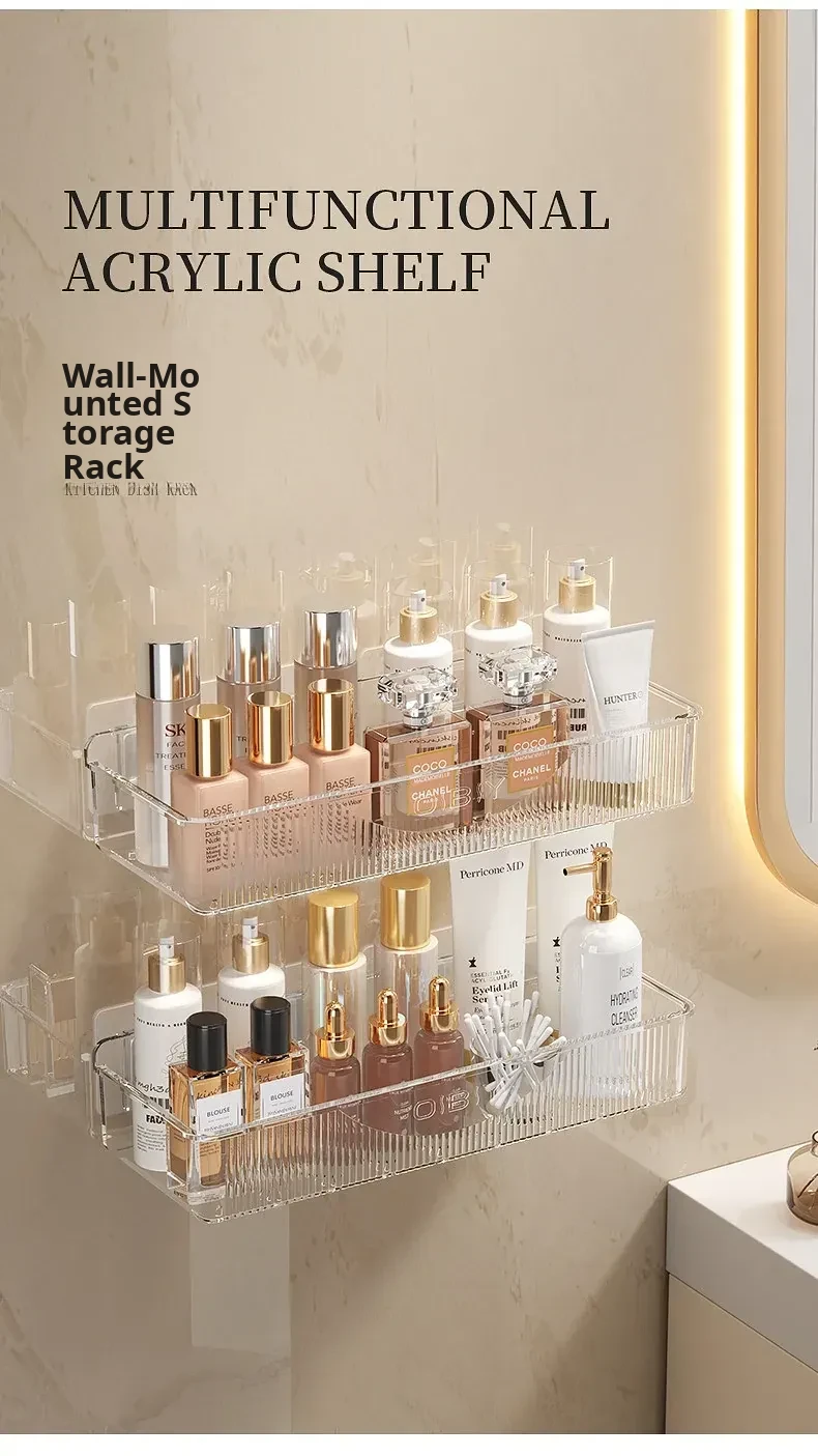 Bathroom Wall-Mounted Storage Rack - No Drilling Required! Stylish and Functional Organizer for Toiletries, Cosmetics, and Essentials - Perfect for Your Bathroom and Vanity!