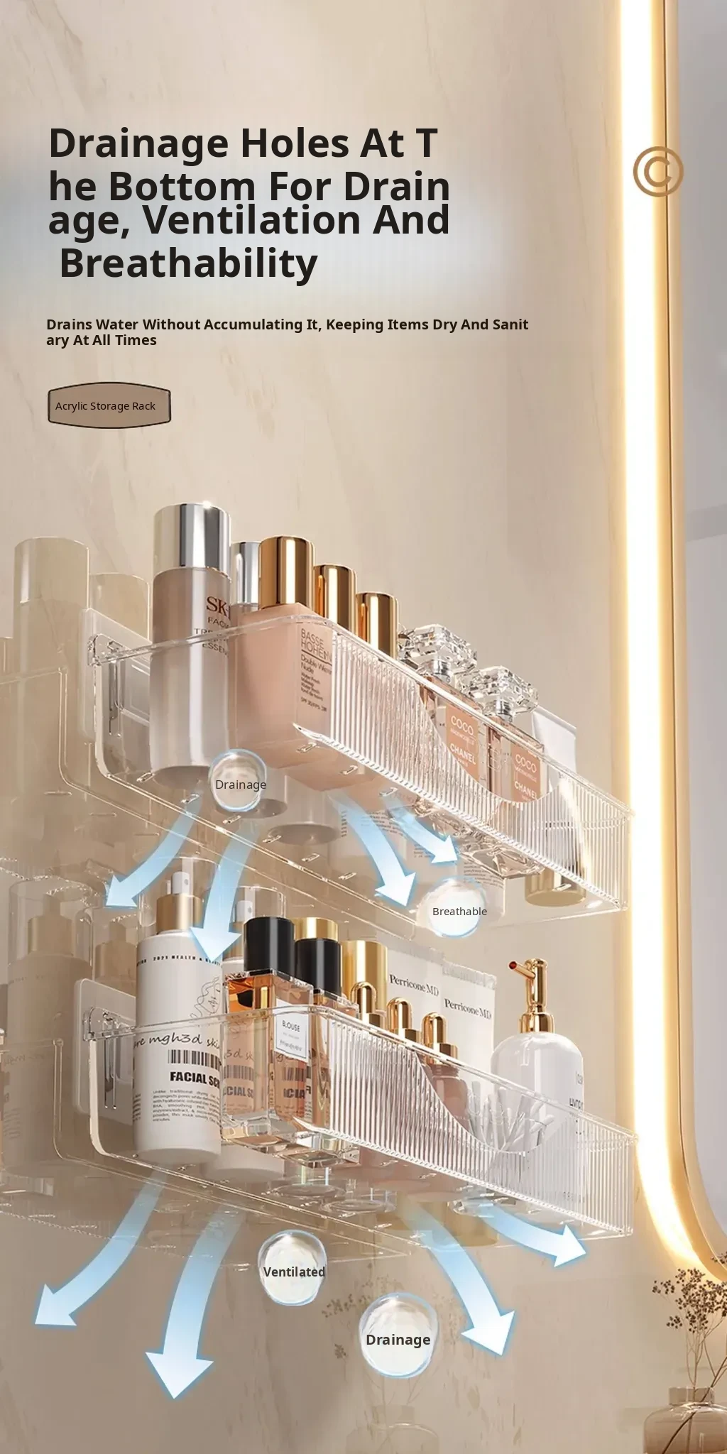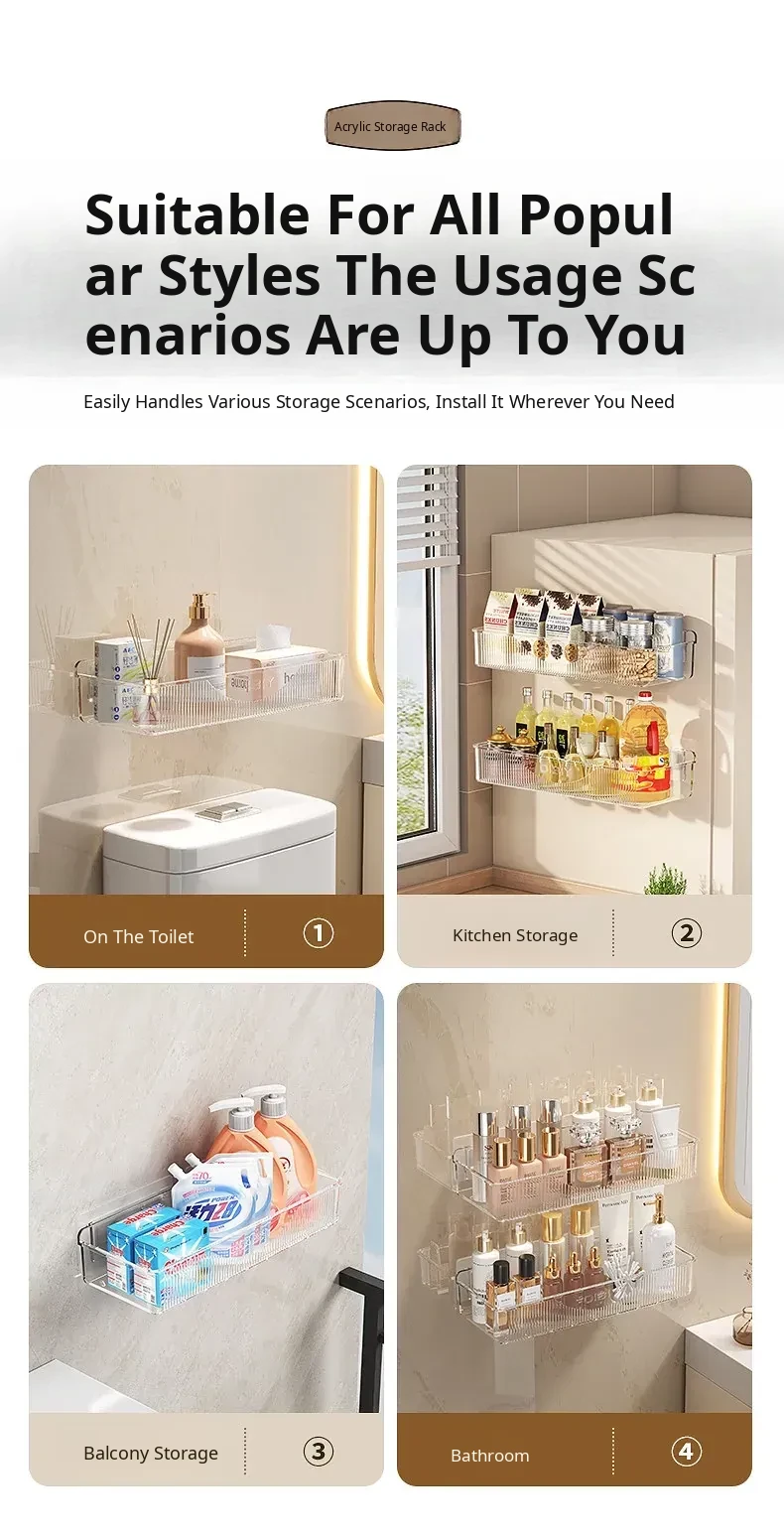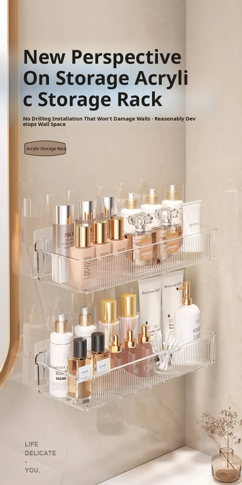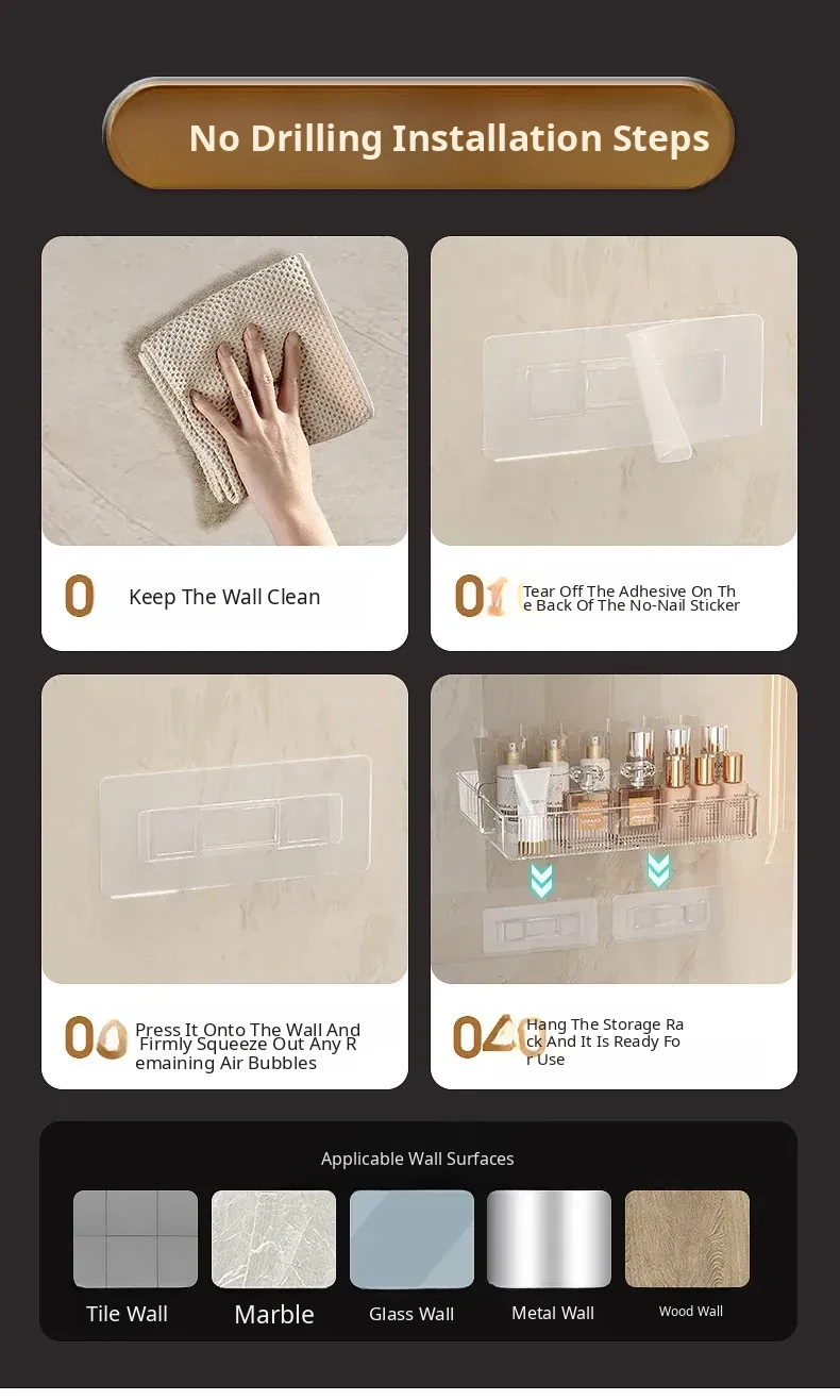 Bathroom Wall-Mounted Storage Rack - No Drilling Required! Stylish and Functional Organizer for Toiletries, Cosmetics, and Essentials - Perfect for Your Bathroom and Vanity!