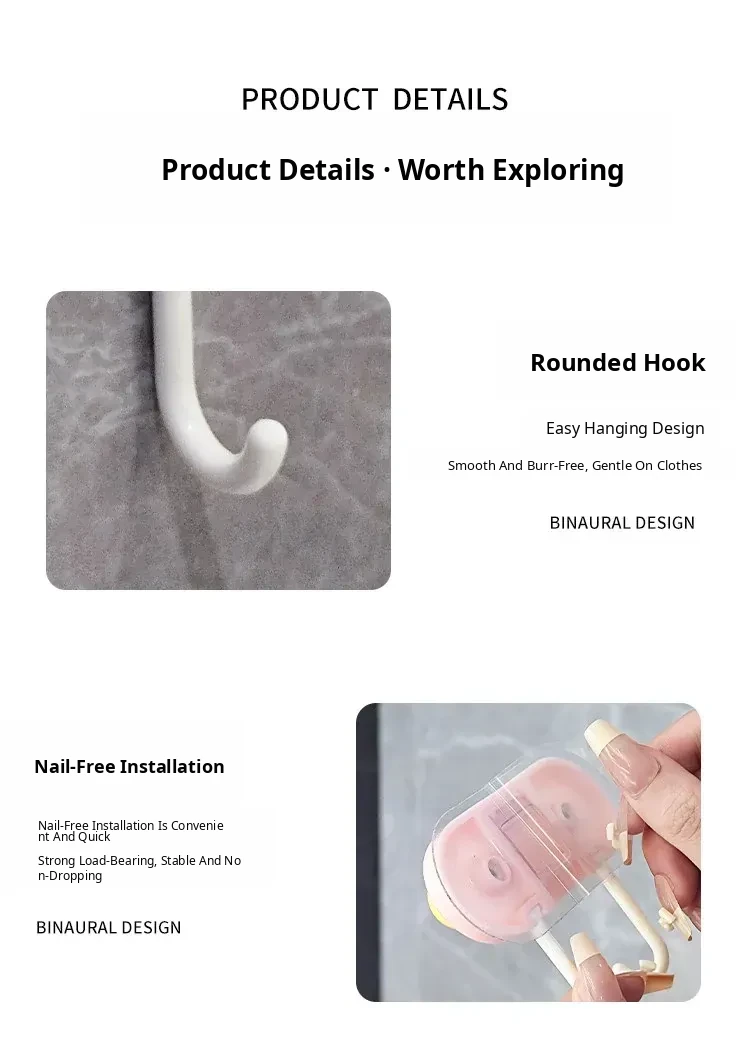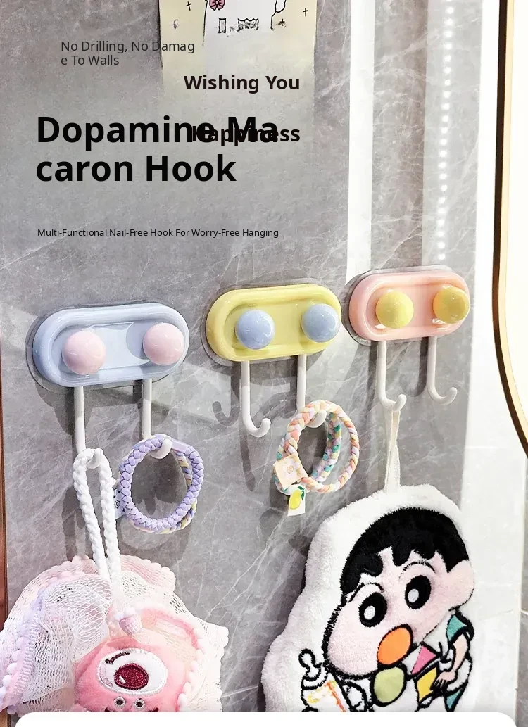 Dopamine Hook - No Drill Strong Adhesive Hooks for Bathroom and Toilet, Seamless Wall-Mounted Hangers, Perfect for Hanging Coats and Accessories Behind Doors