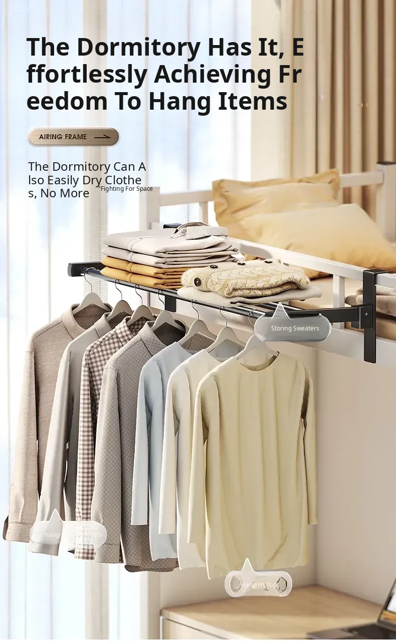 Dormitory Bedside Clothes Rack - Multifunctional Headboard Storage Shelf for Students - Ideal for Hanging Clothes and Organizing Essentials in Bunk Beds