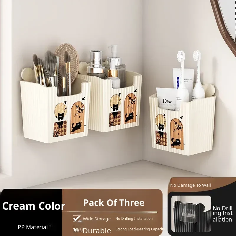 Cream●Wall-Mounted Storage Box [Pack of 3]