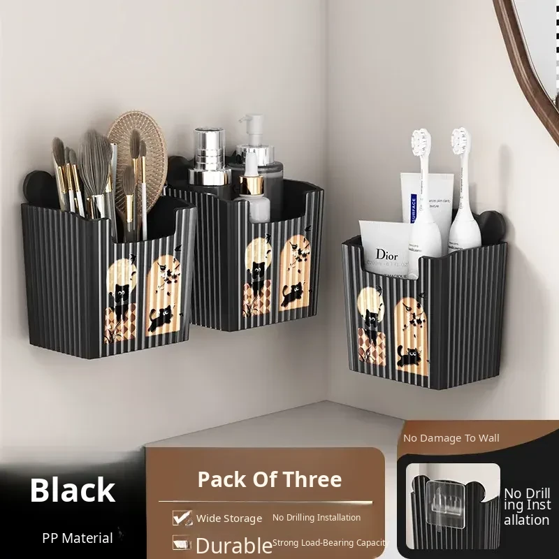 Black●Wall-Mounted Storage Box [Pack of 3]