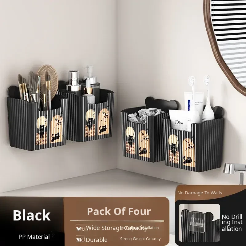 Black●Wall-Mounted Storage Box [Pack of 4]