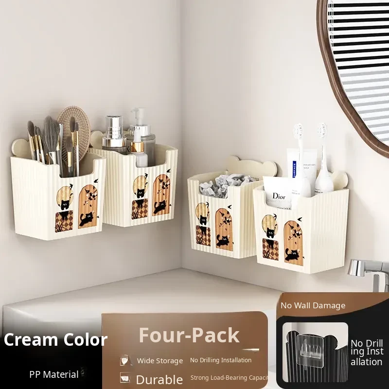 Cream●Wall-Mounted Storage Box [Pack of 4]