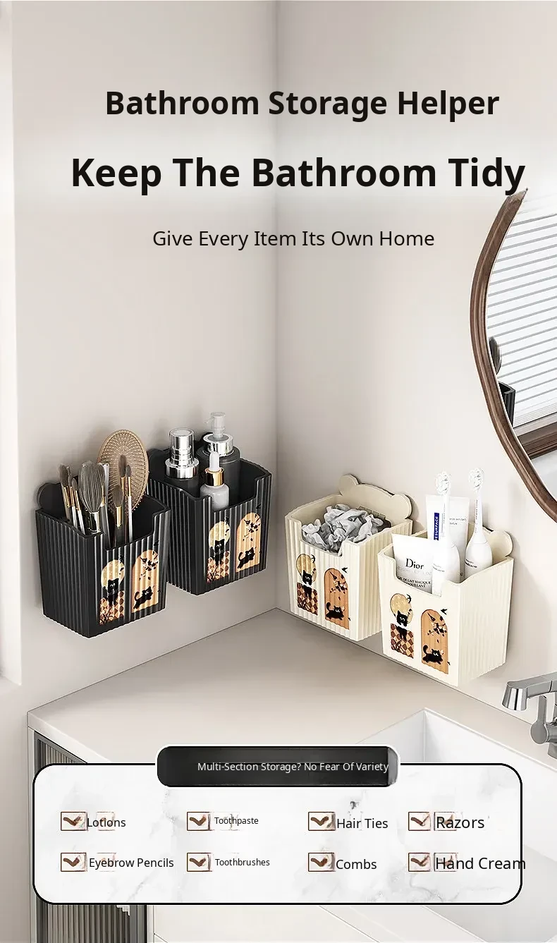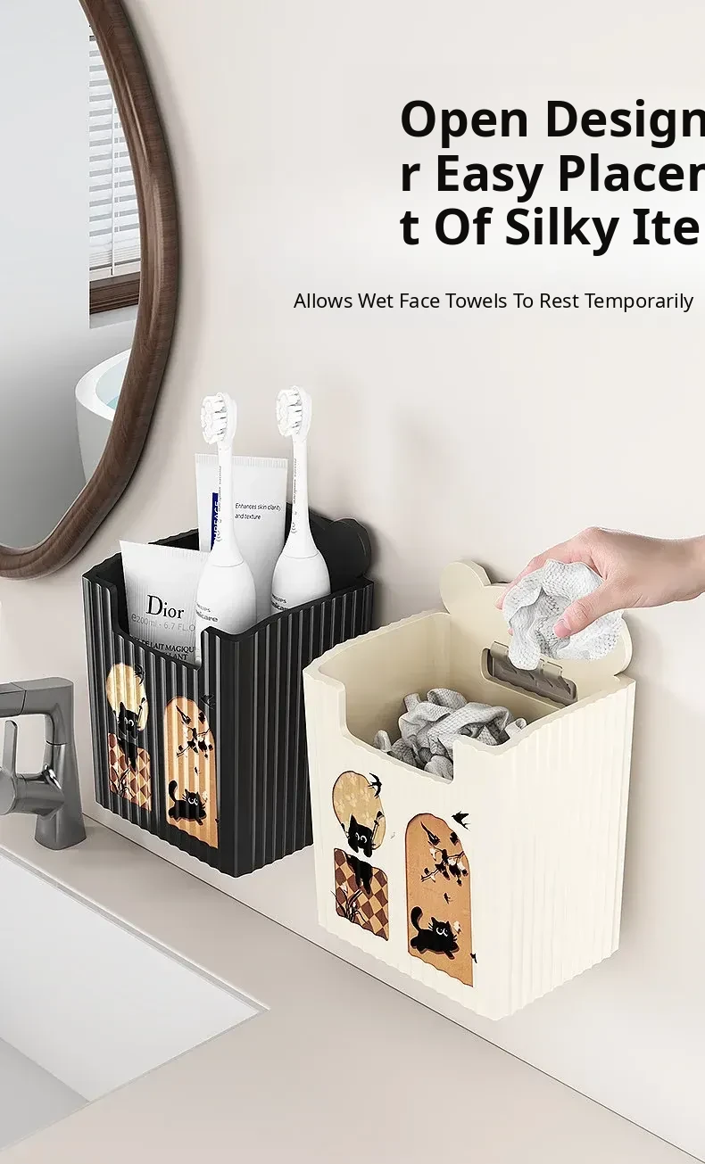 Eco-Friendly Makeup Organizer - Wall-Mounted, No Drill Storage Rack for Bathroom and Vanity - Discarded Face Towel Holder and Cosmetic Storage Solution