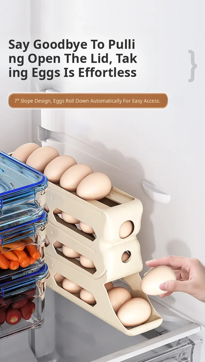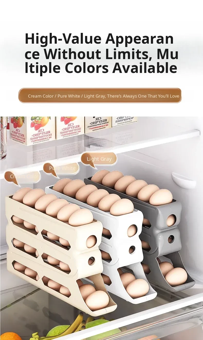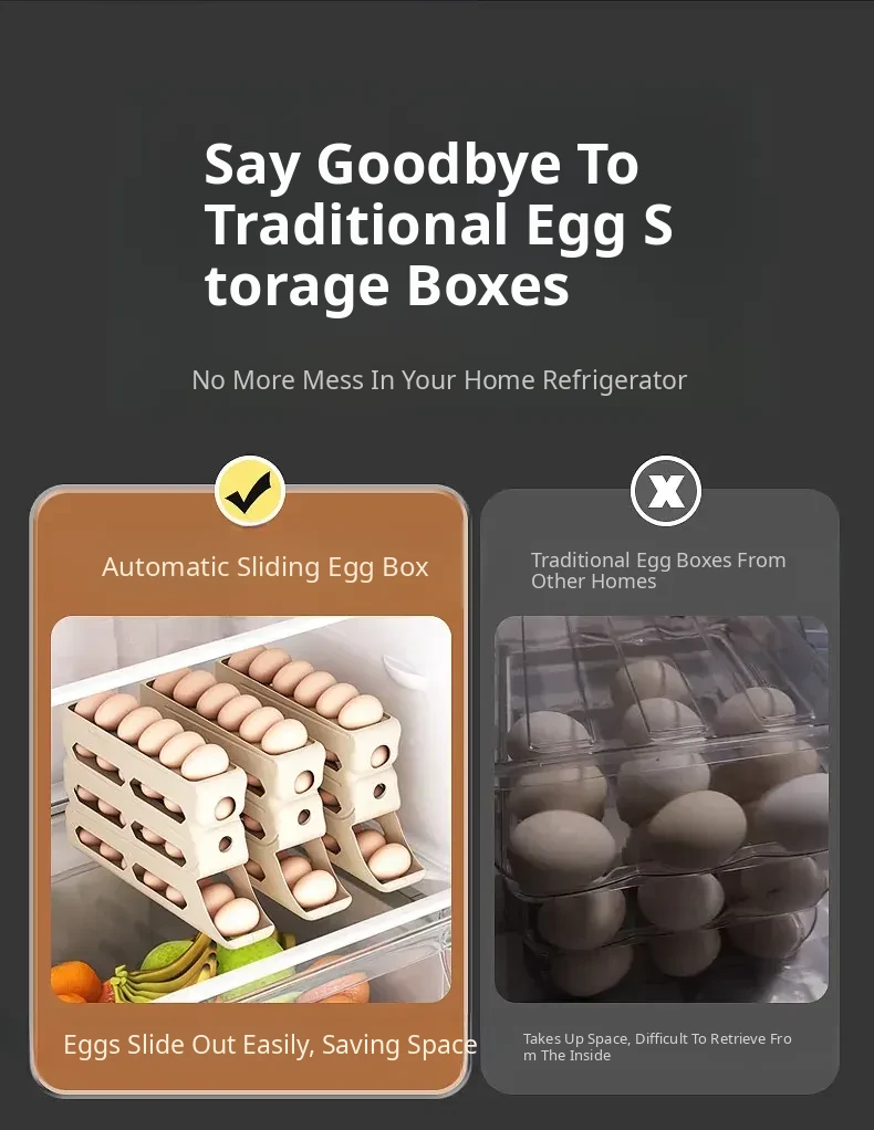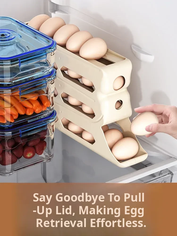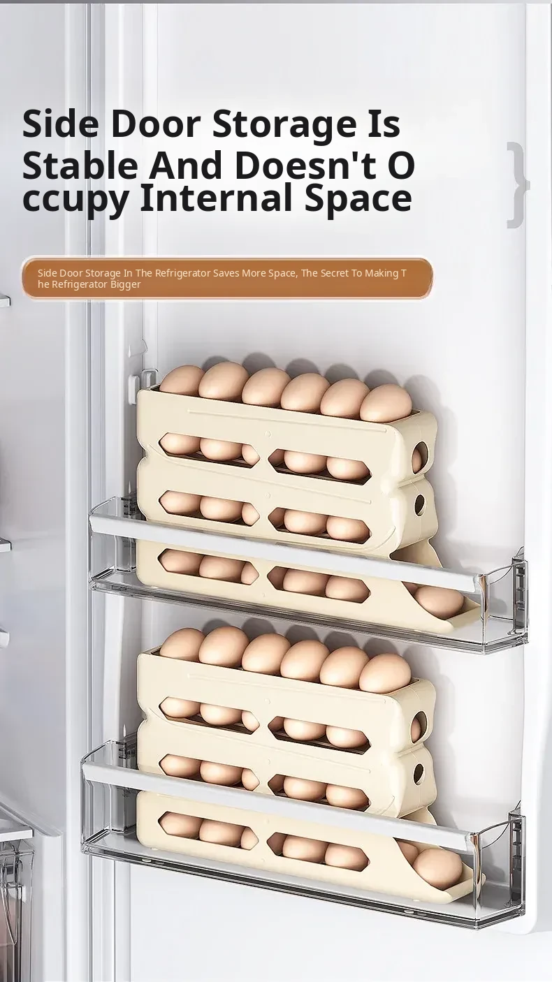 Egg Storage Box - Refrigerator Side Door Egg Holder with Automatic Rolling Feature, Egg Freshness Keeper, Organizing Magic for Your Kitchen!