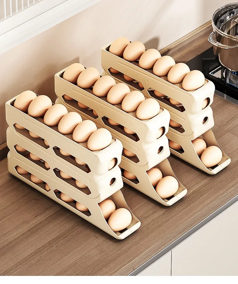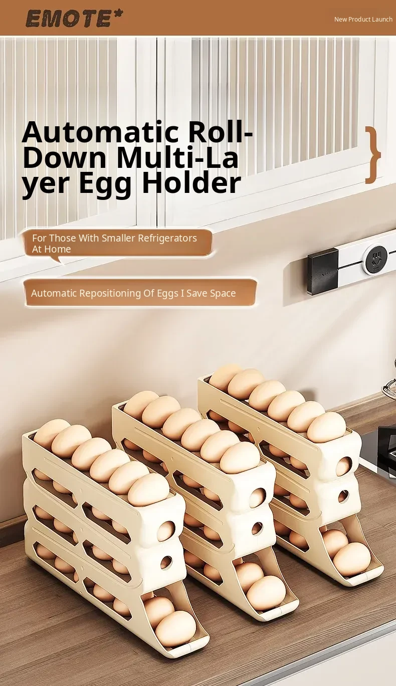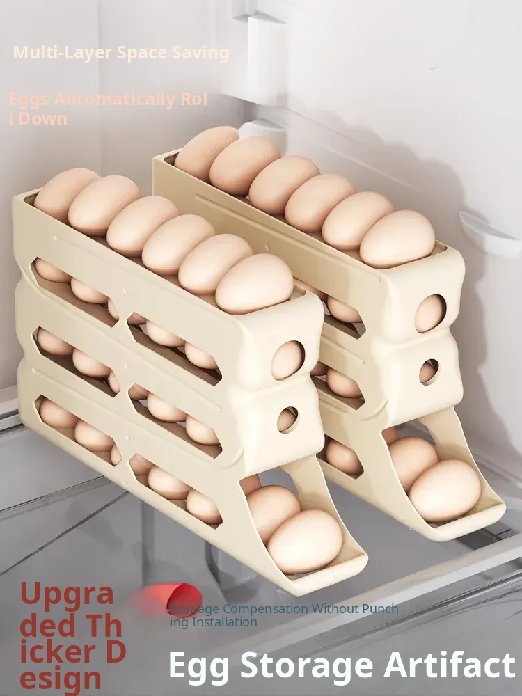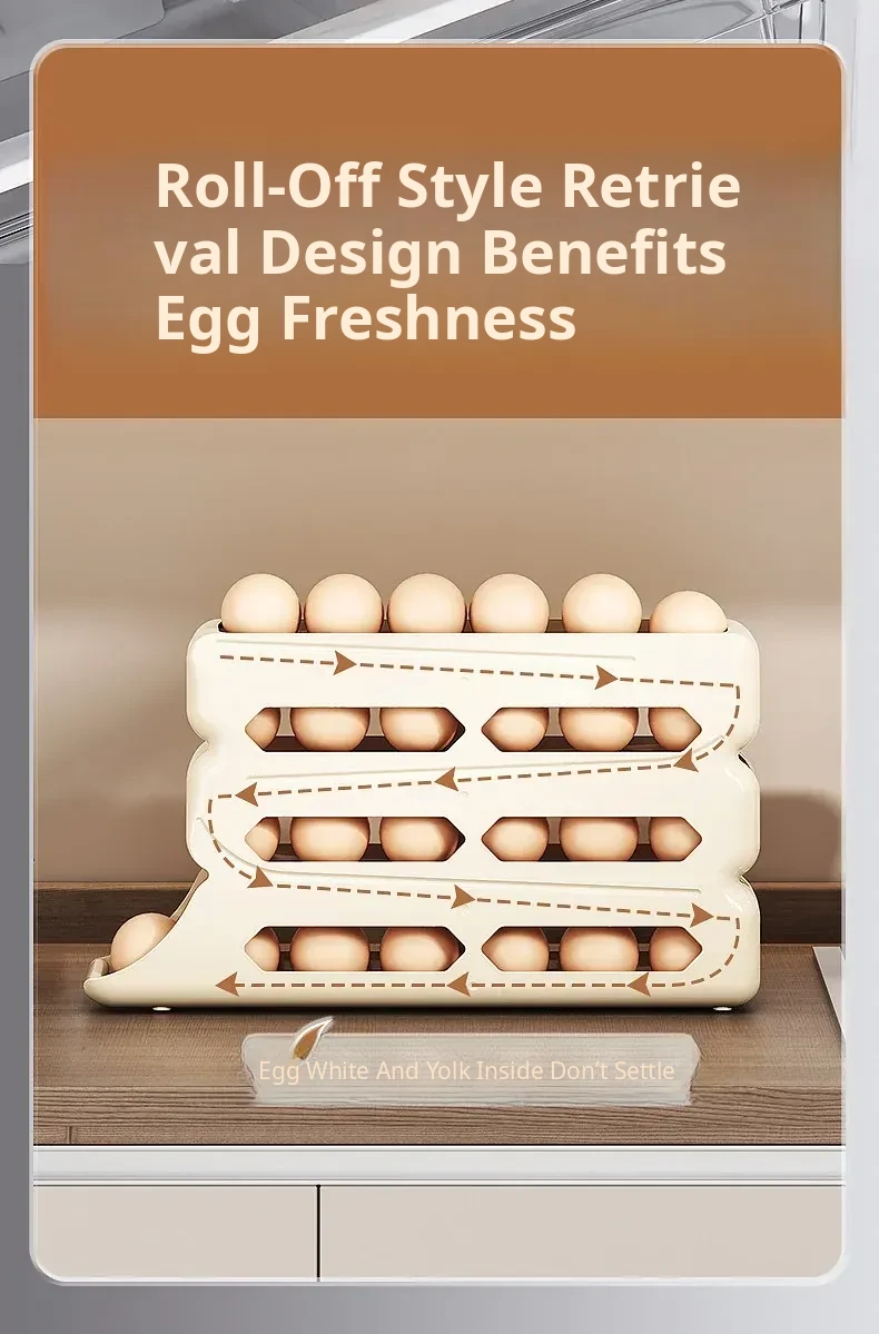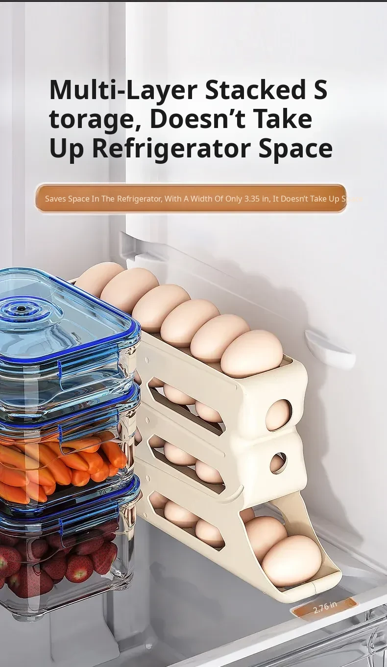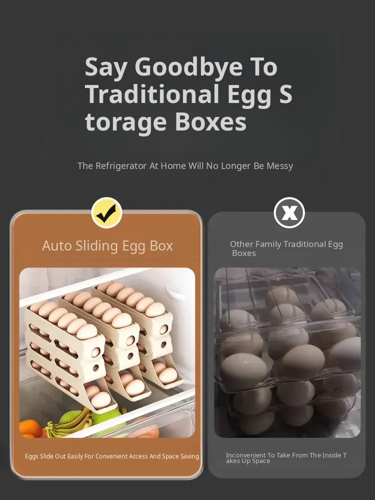 Egg Storage Box - Refrigerator Side Door Egg Holder with Automatic Rolling Feature, Egg Freshness Keeper, Organizing Magic for Your Kitchen!