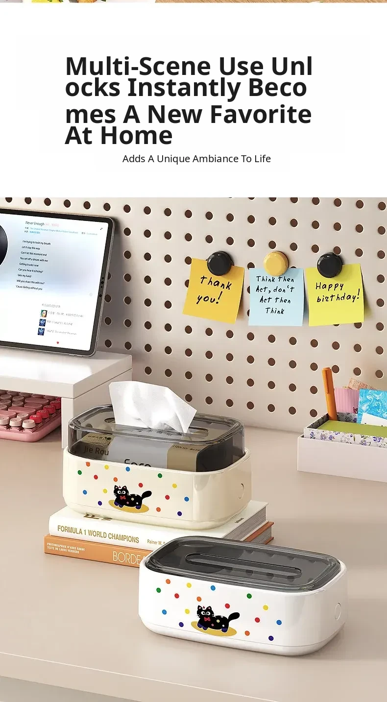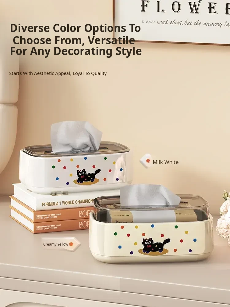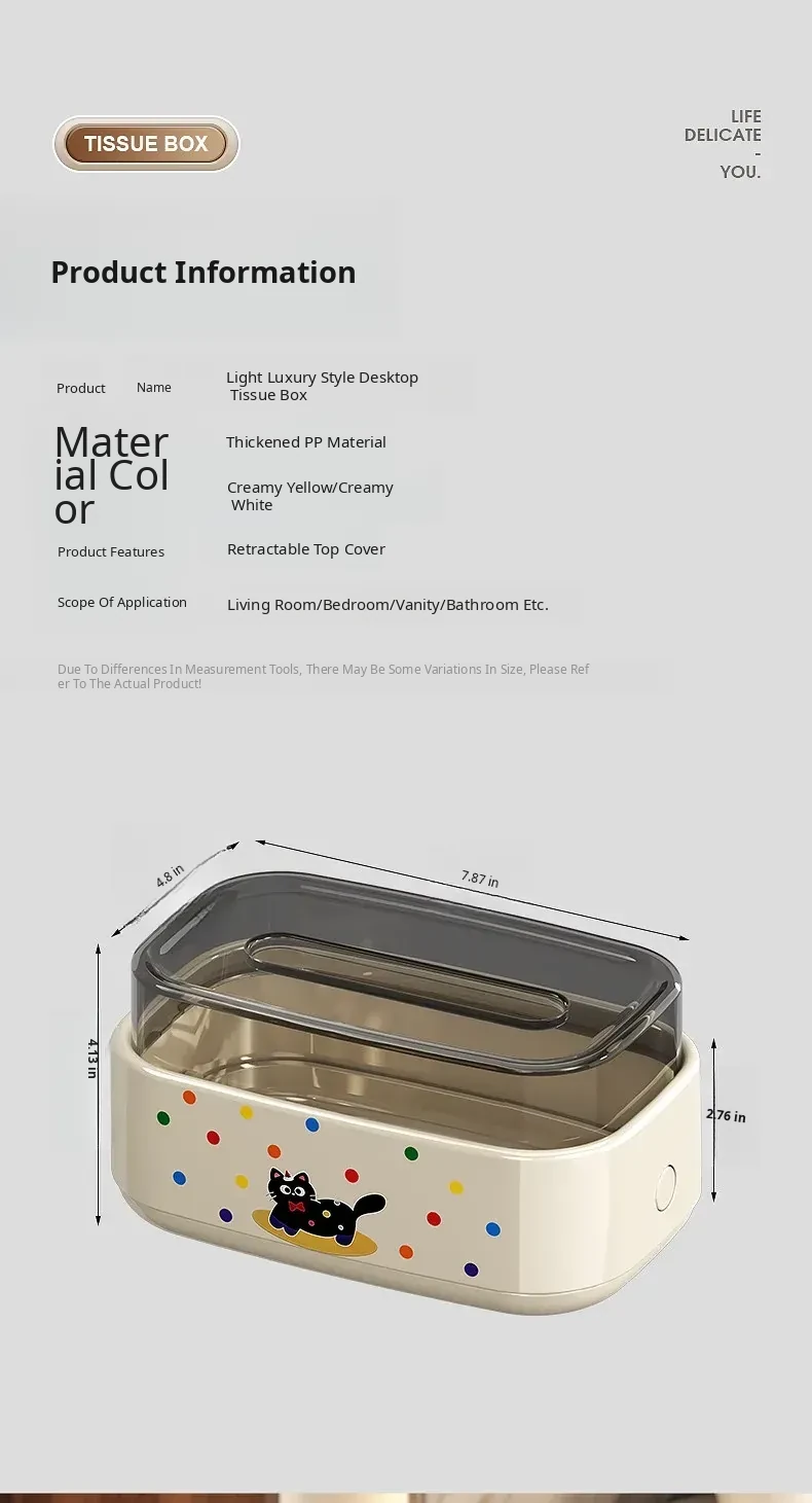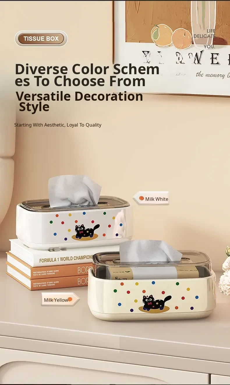 Creamy Yellow⭐Cartoon Cat Tissue Box