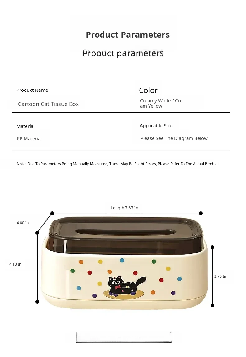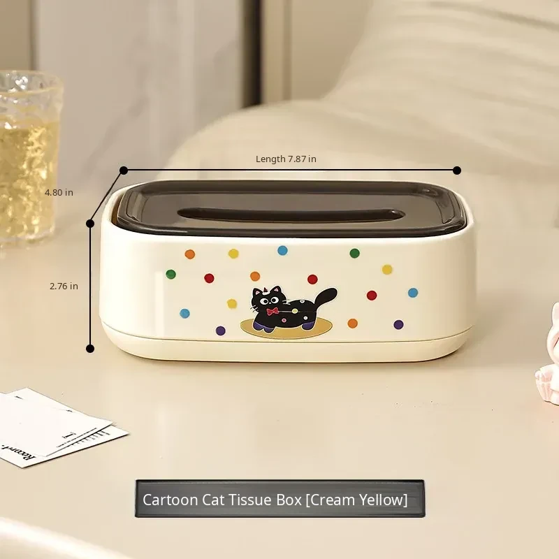 Creamy Yellow ⭐ Cartoon Cat Tissue Box