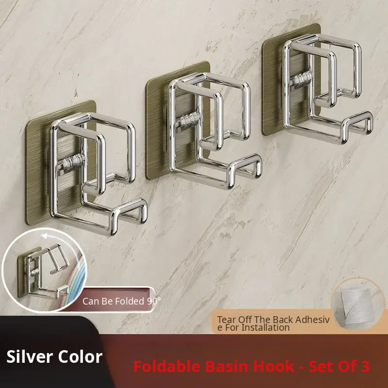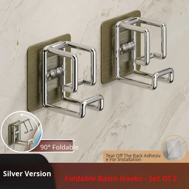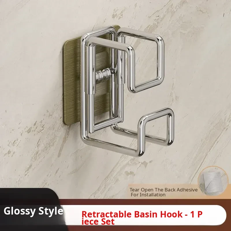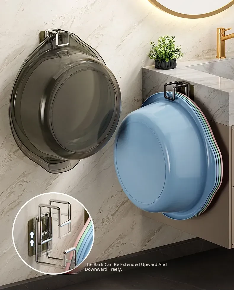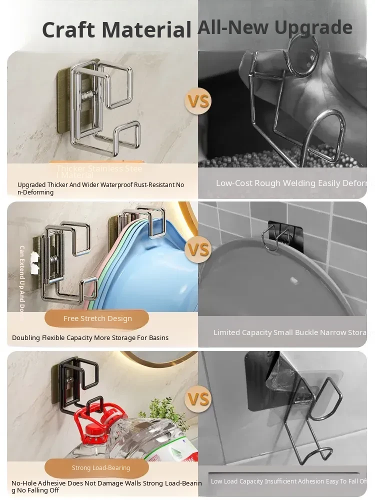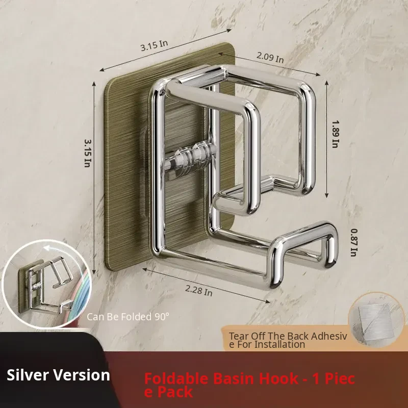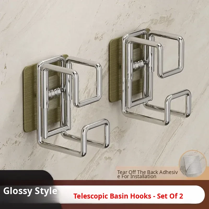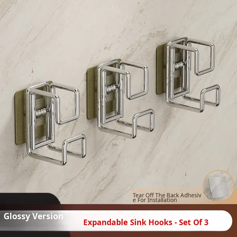 Expandable Bathroom Sink Storage Rack - No Drill Wall-Mounted Hook Organizer for Washbasin, Perfect for Space-Saving in Your Bathroom!