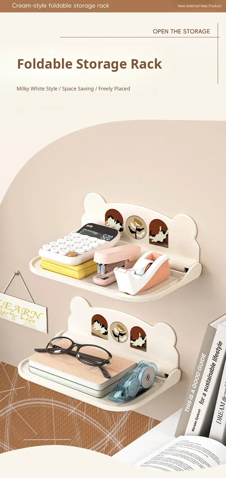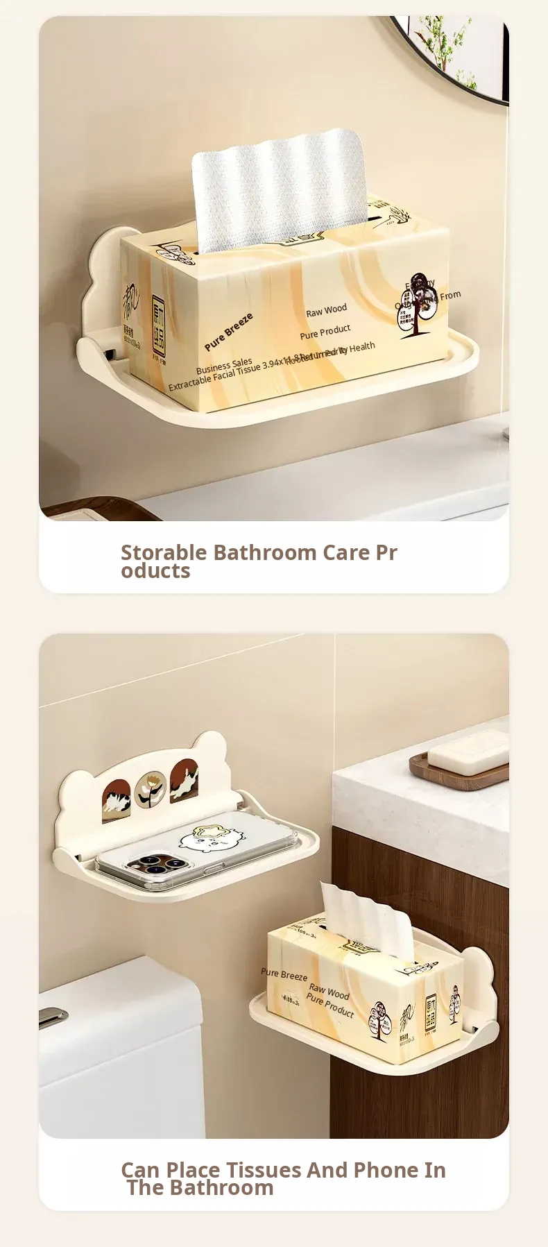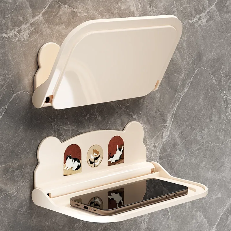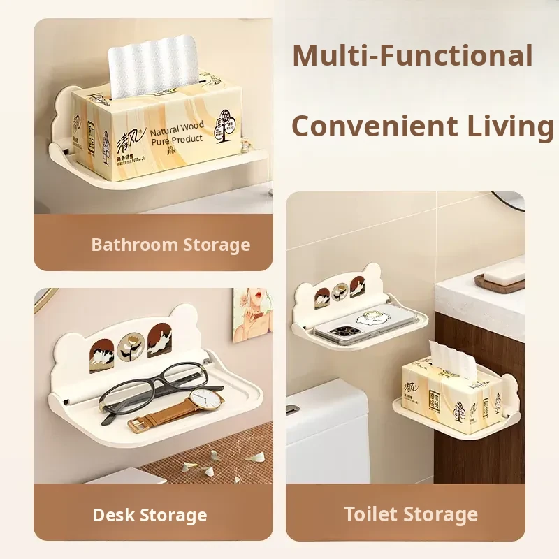 Foldable Bathroom Storage Rack - No Drill Wall-Mounted Tissue Holder & Phone Organizer for Dorm Rooms and Bedrooms - Space-Saving Solution for Students