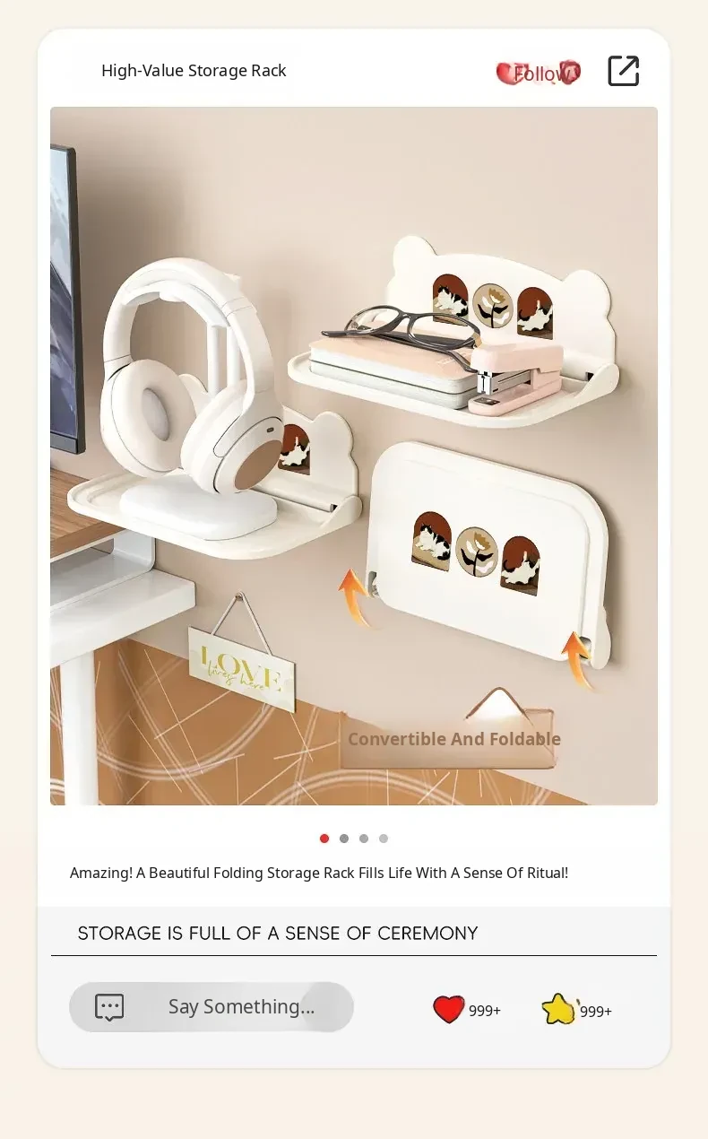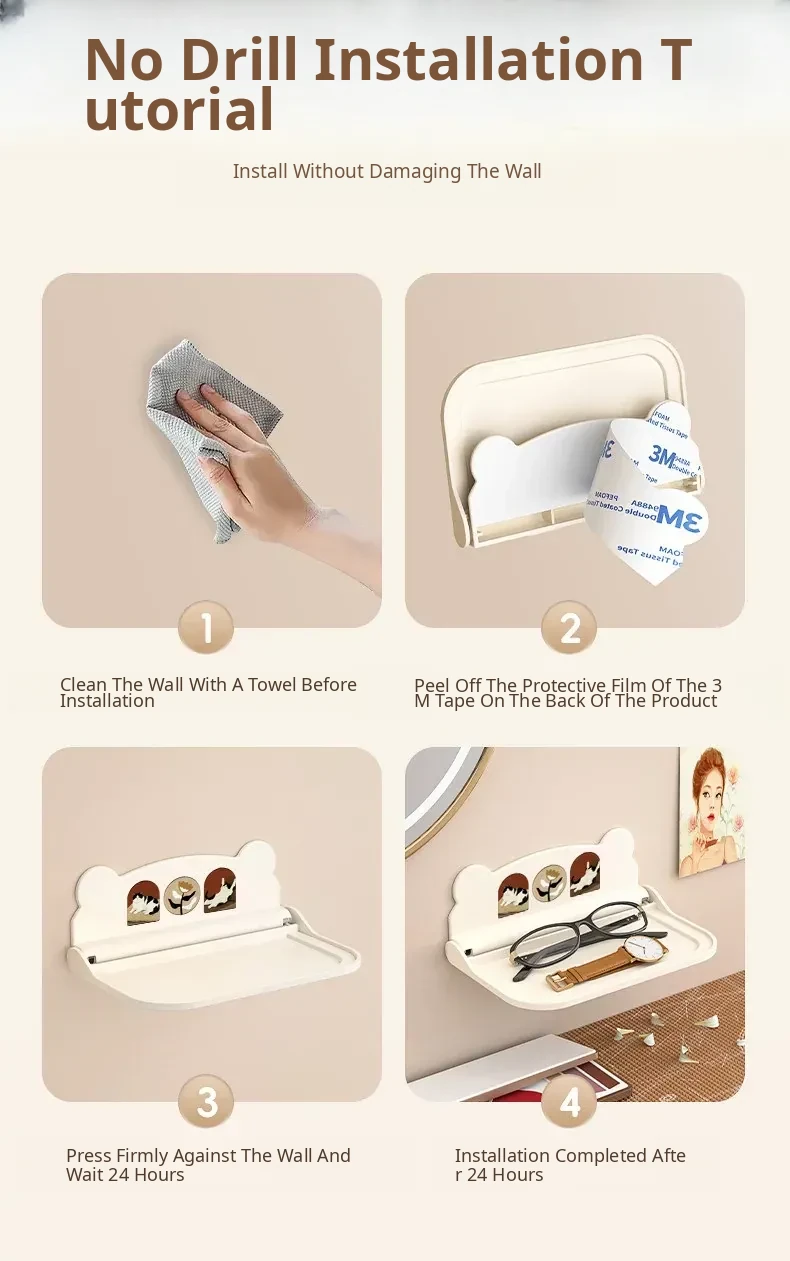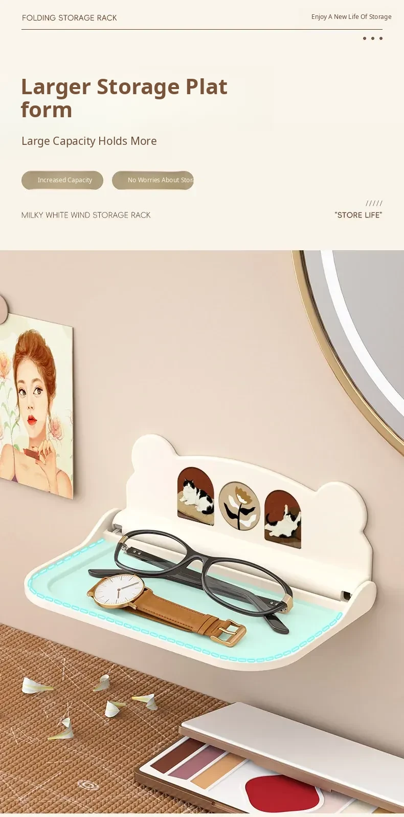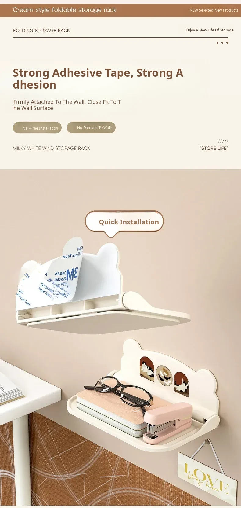 Foldable Bathroom Storage Rack - No Drill Wall-Mounted Tissue Holder & Phone Organizer for Dorm Rooms and Bedrooms - Space-Saving Solution for Students