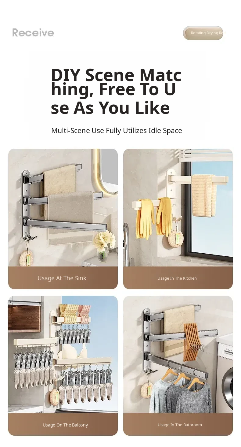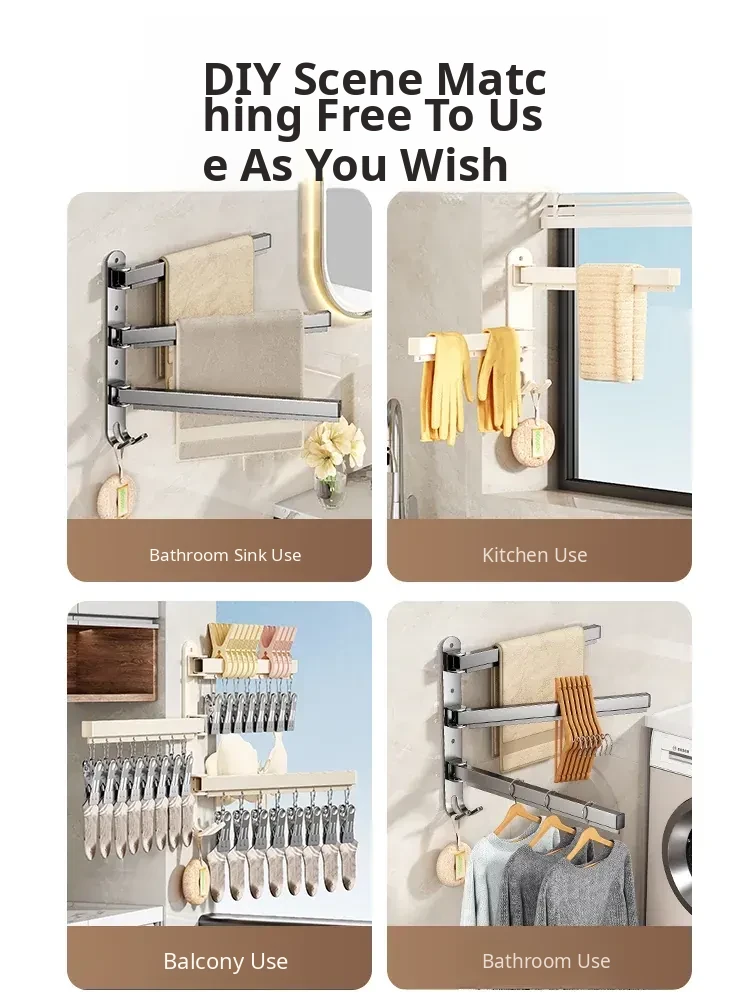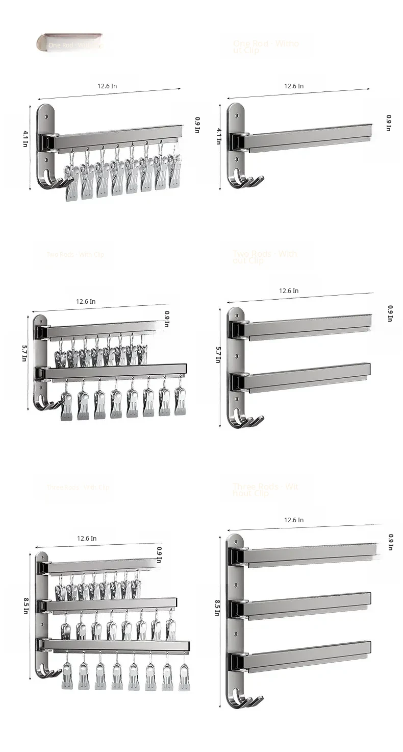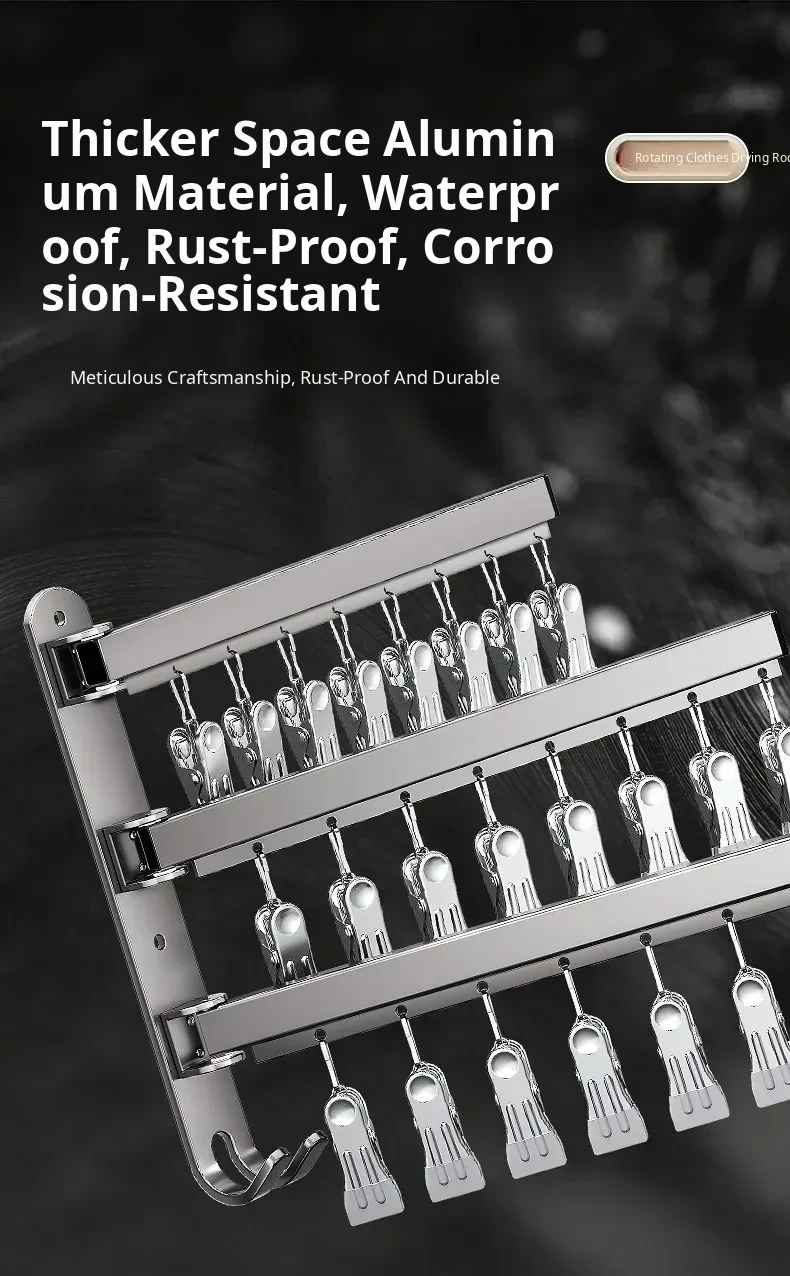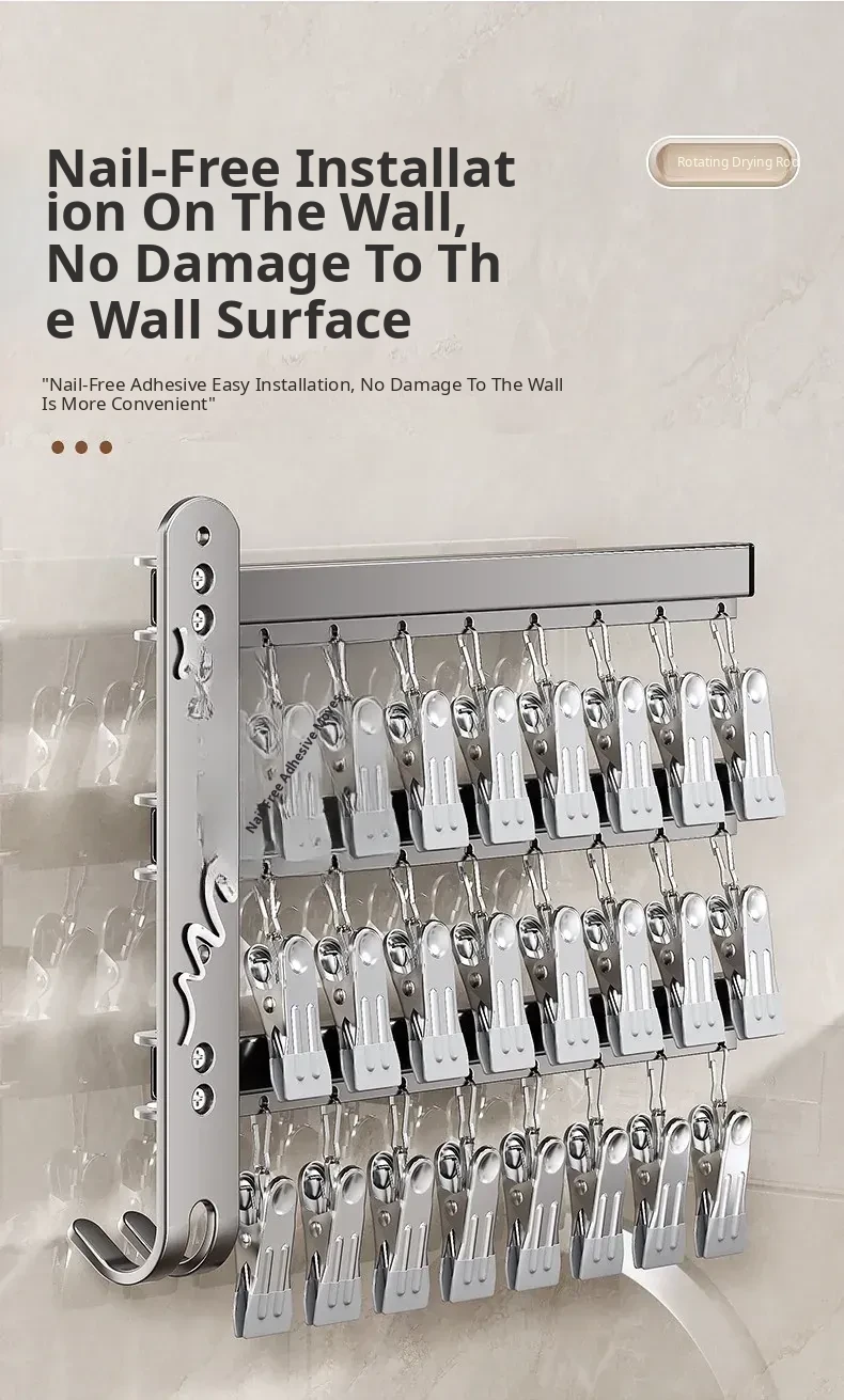 Foldable No-Drill Sock and Underwear Drying Rack - Multi-Functional Rotating Clothes Hanger with Multiple Clips for Balcony Storage Solution