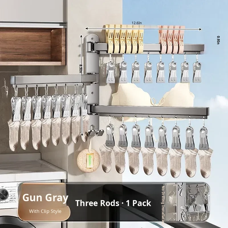 2 Pack-Gun Gray ⭐ [24 Clips] Three Poles ⭐ Folding Sock Rack