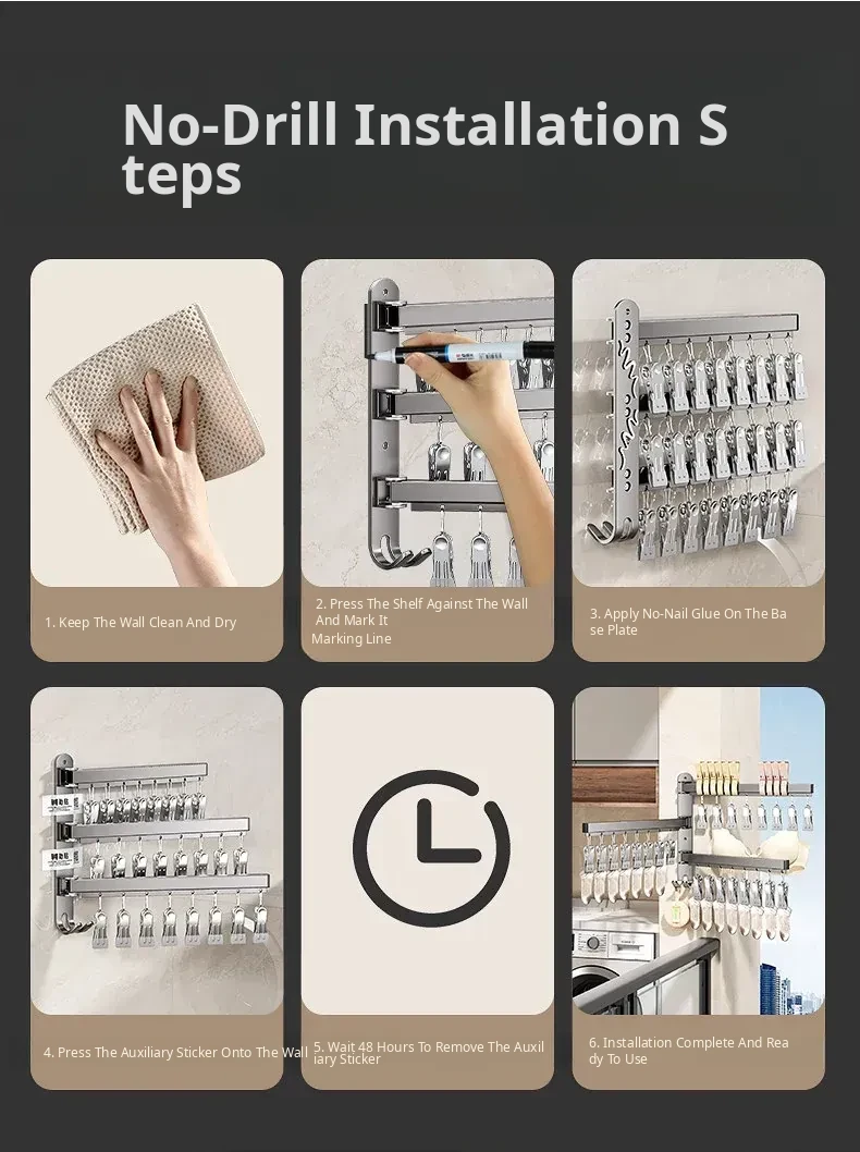 Gun Ash⭐[16 Clips] Double Pole⭐Folding Sock Rack