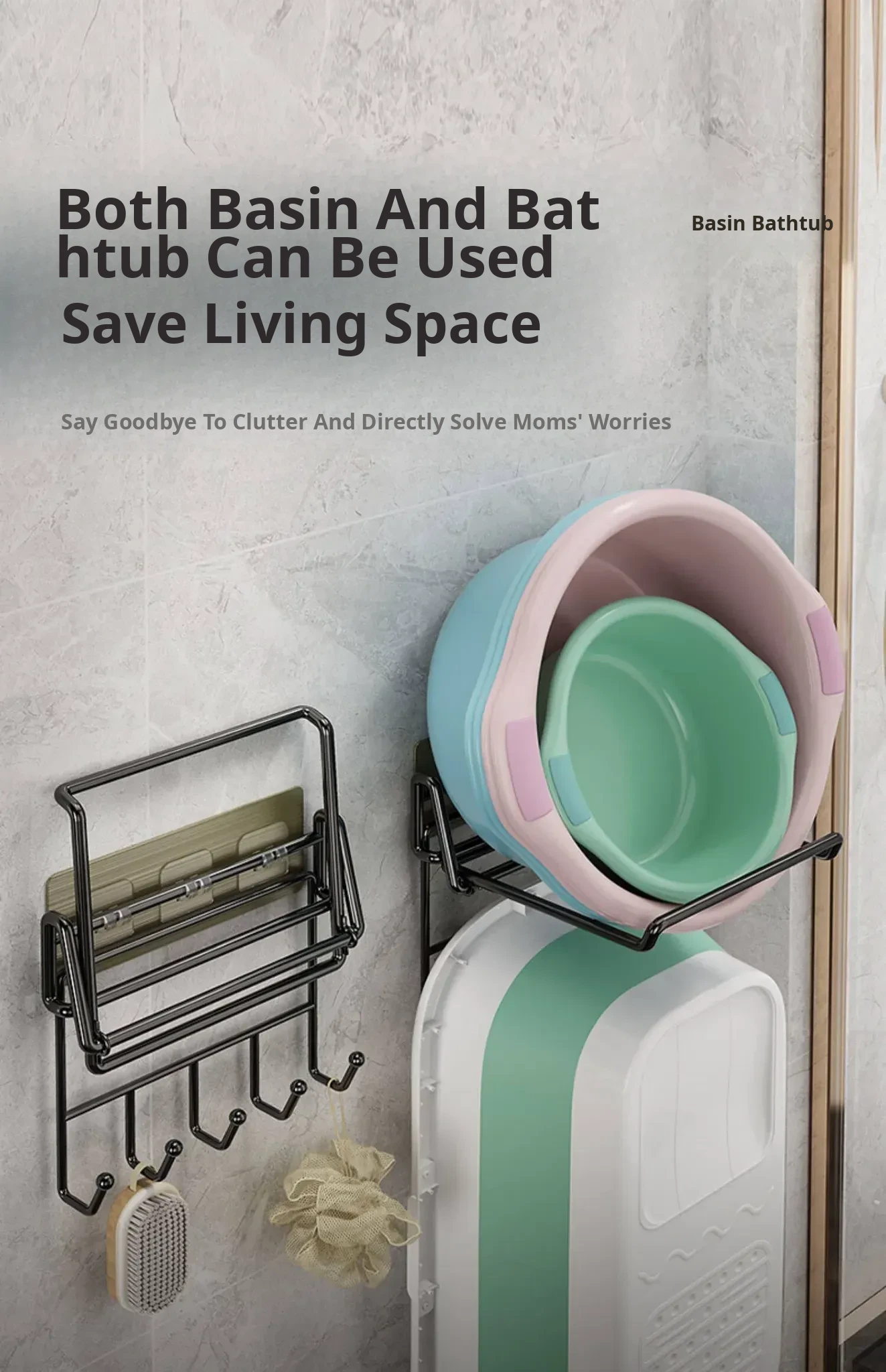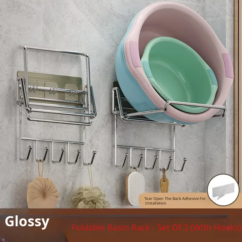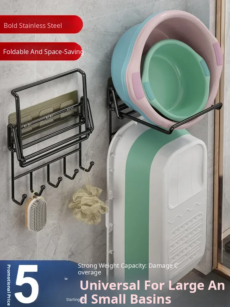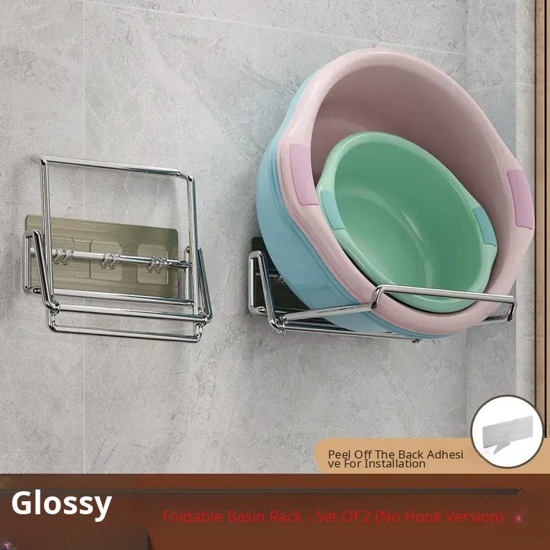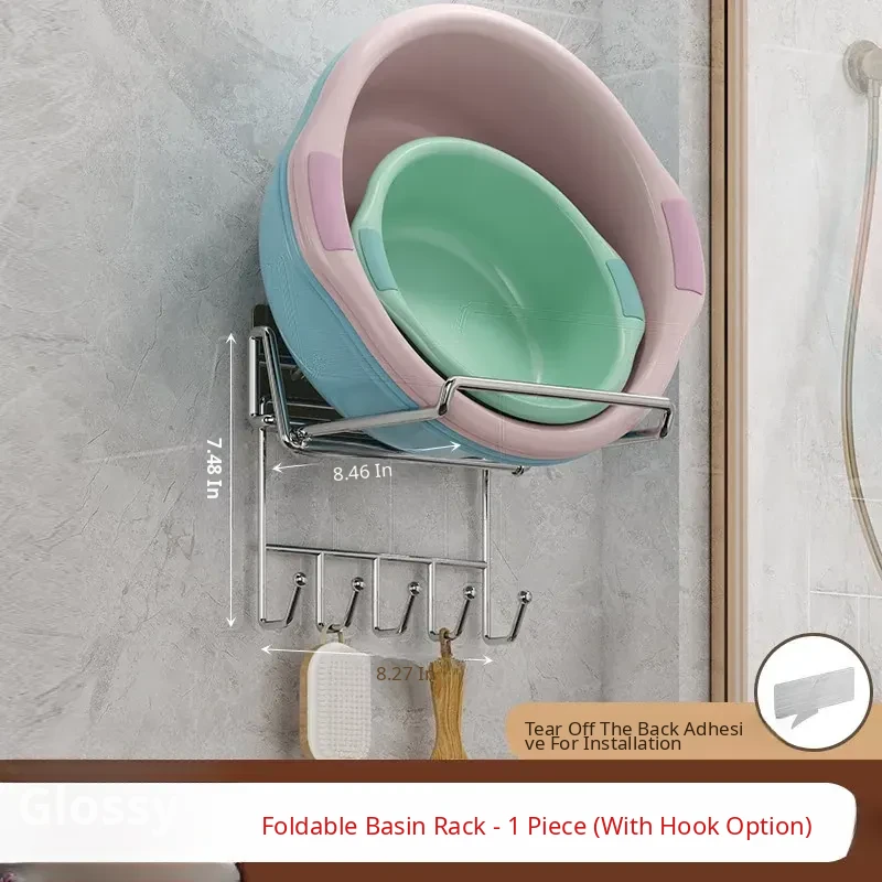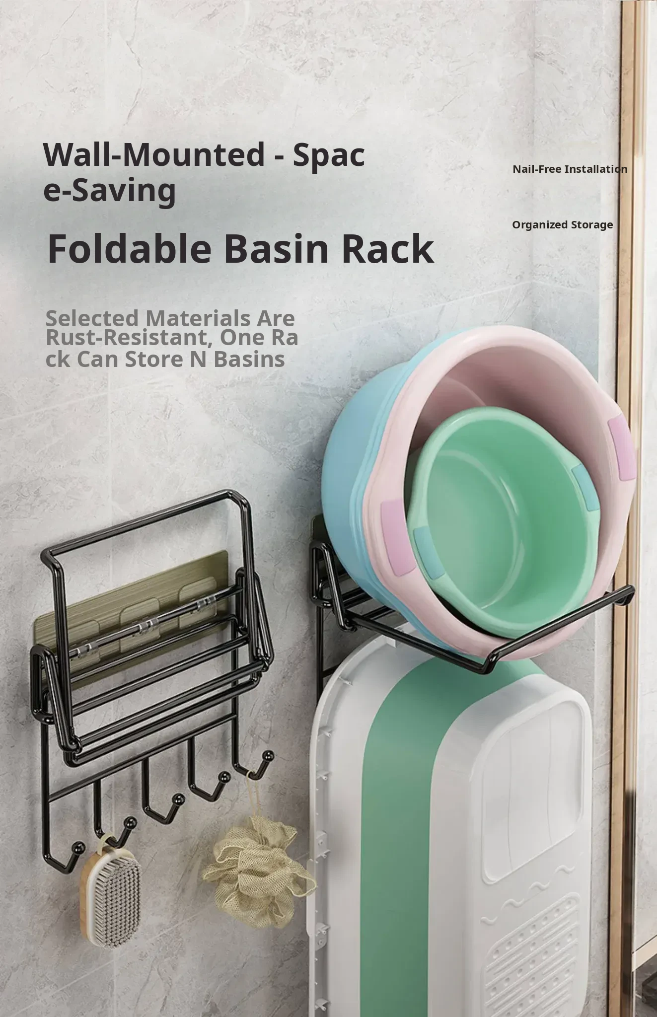Foldable Wall-Mounted Basin Rack – No Drilling Required! Space-Saving Storage Solution for Your Bathroom or Toilet, Perfect for Organizing Basins and Essentials. Ideal for Small Spaces!