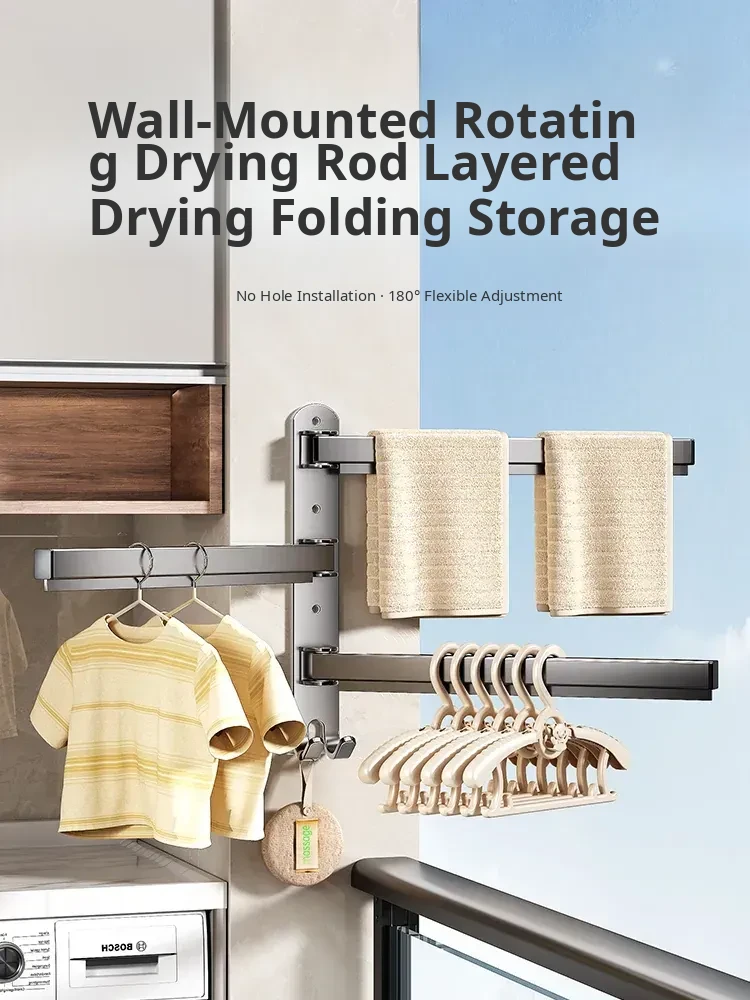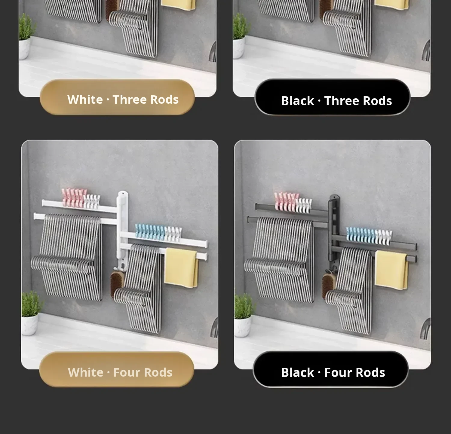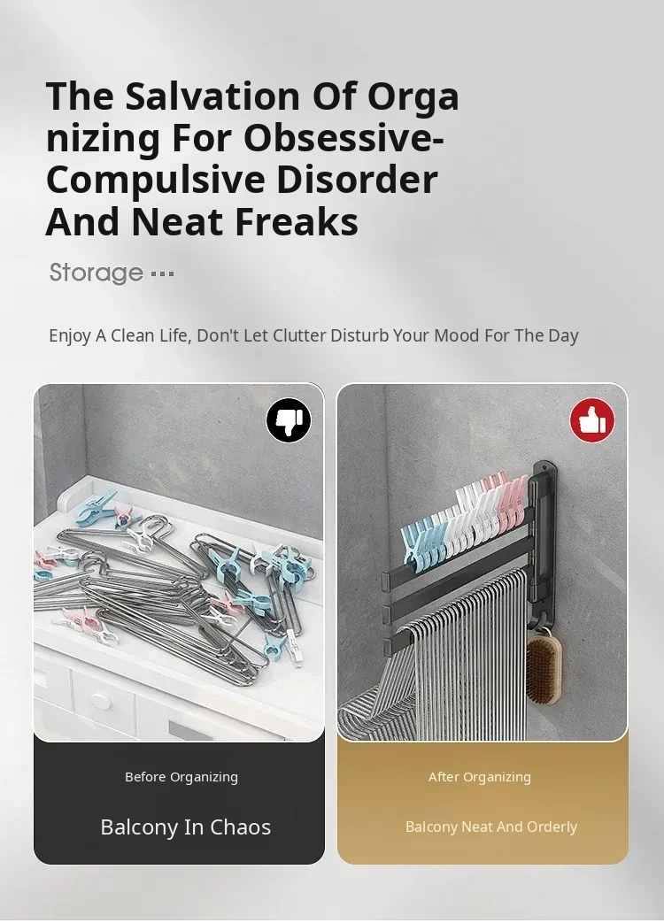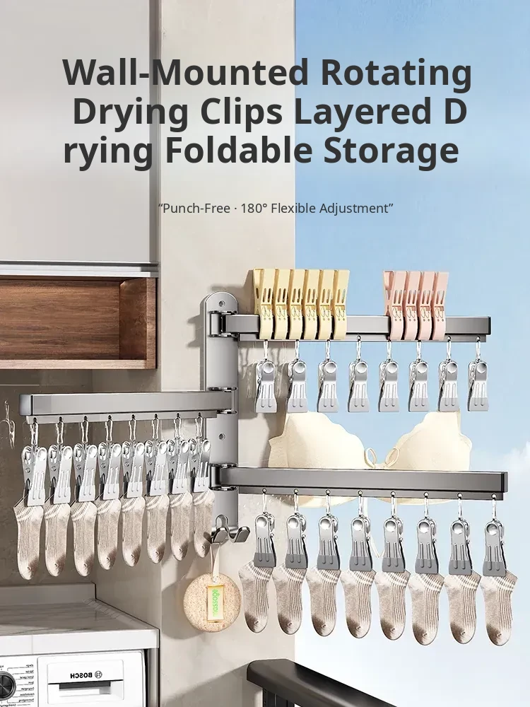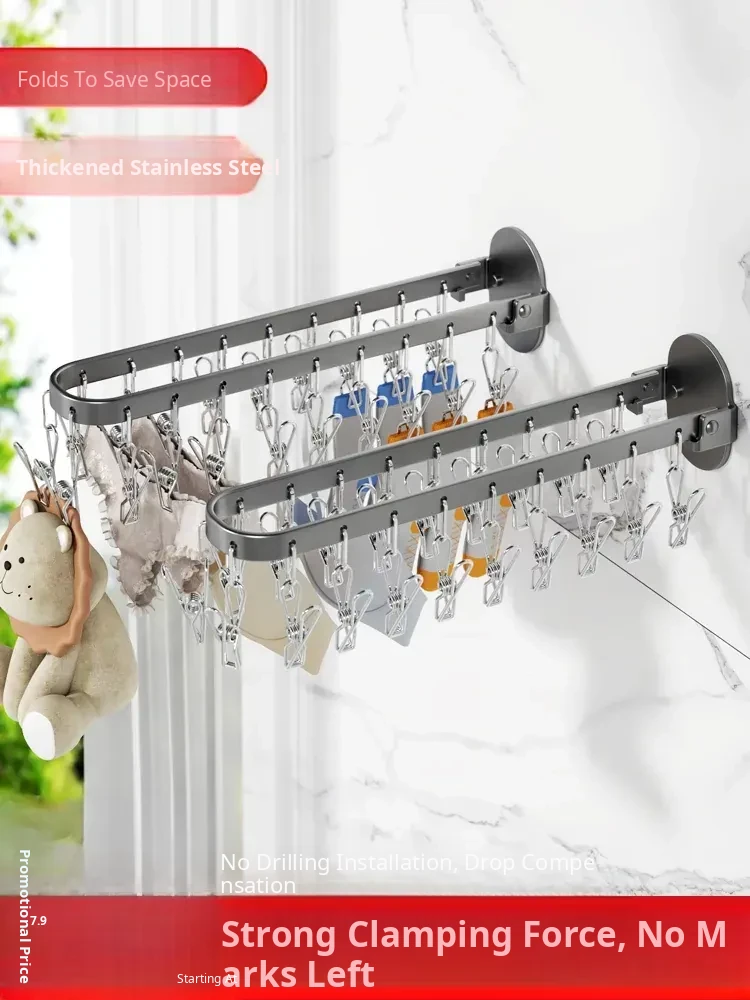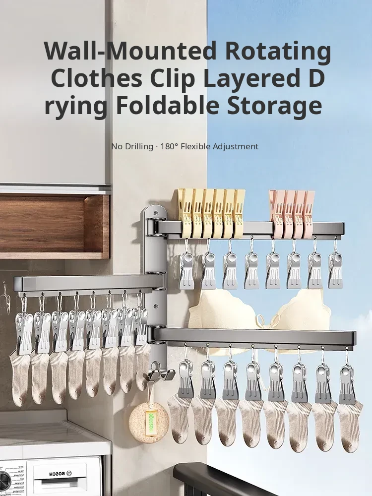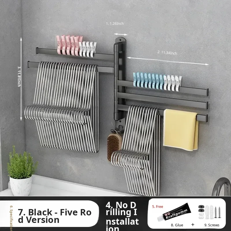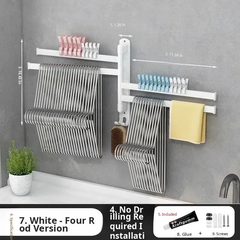 Foldable Wall-Mounted Clothes Drying Rack with Hooks - No Drilling Required, Perfect for Balcony Organization and Maximizing Space!