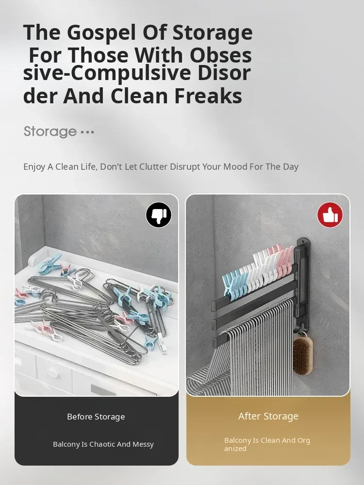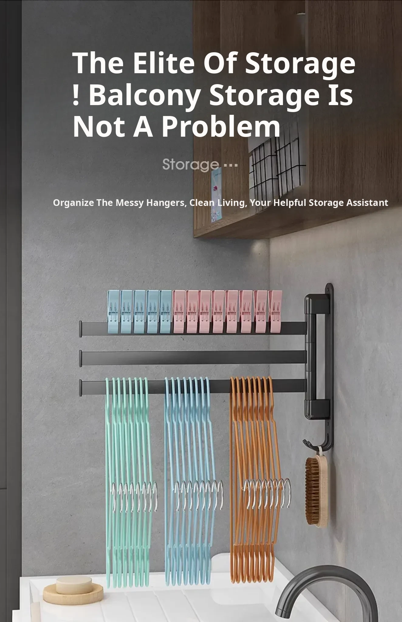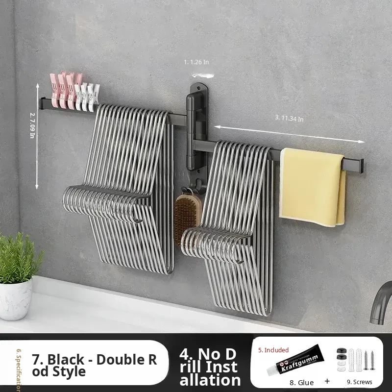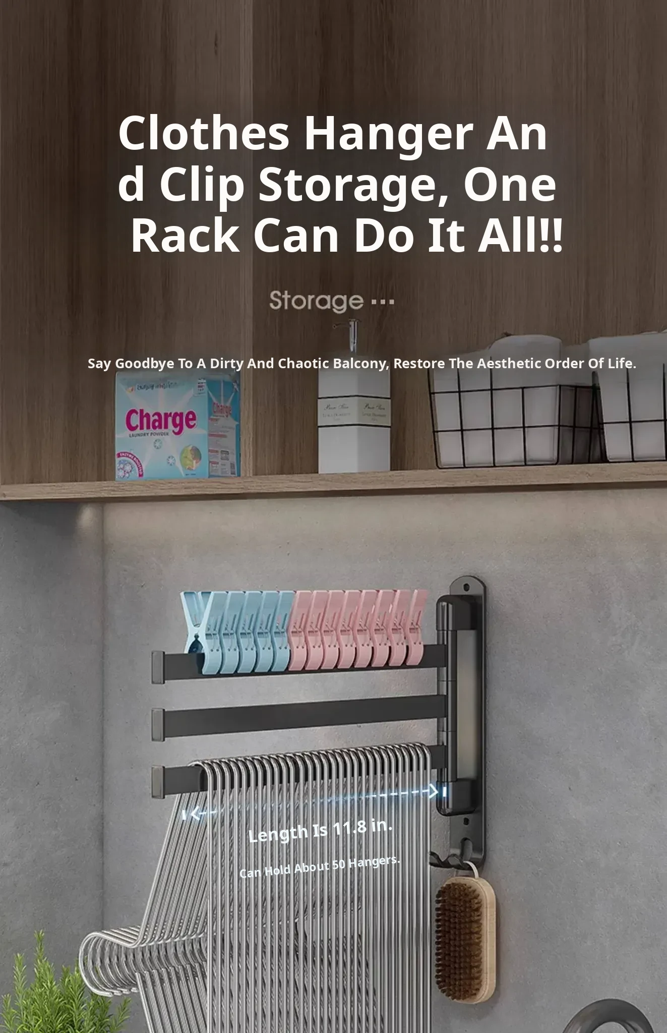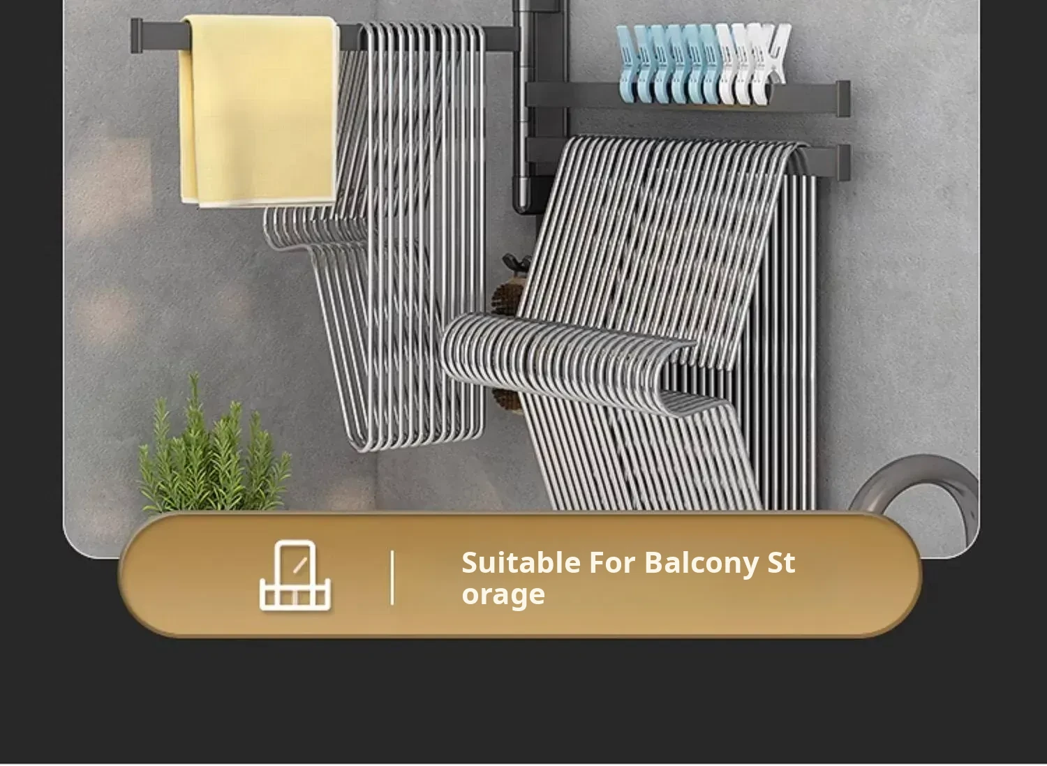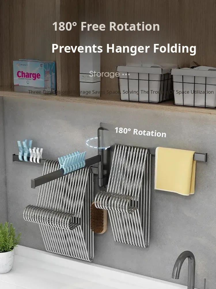 Foldable Wall-Mounted Clothes Drying Rack with Hooks - No Drilling Required, Perfect for Balcony Organization and Maximizing Space!