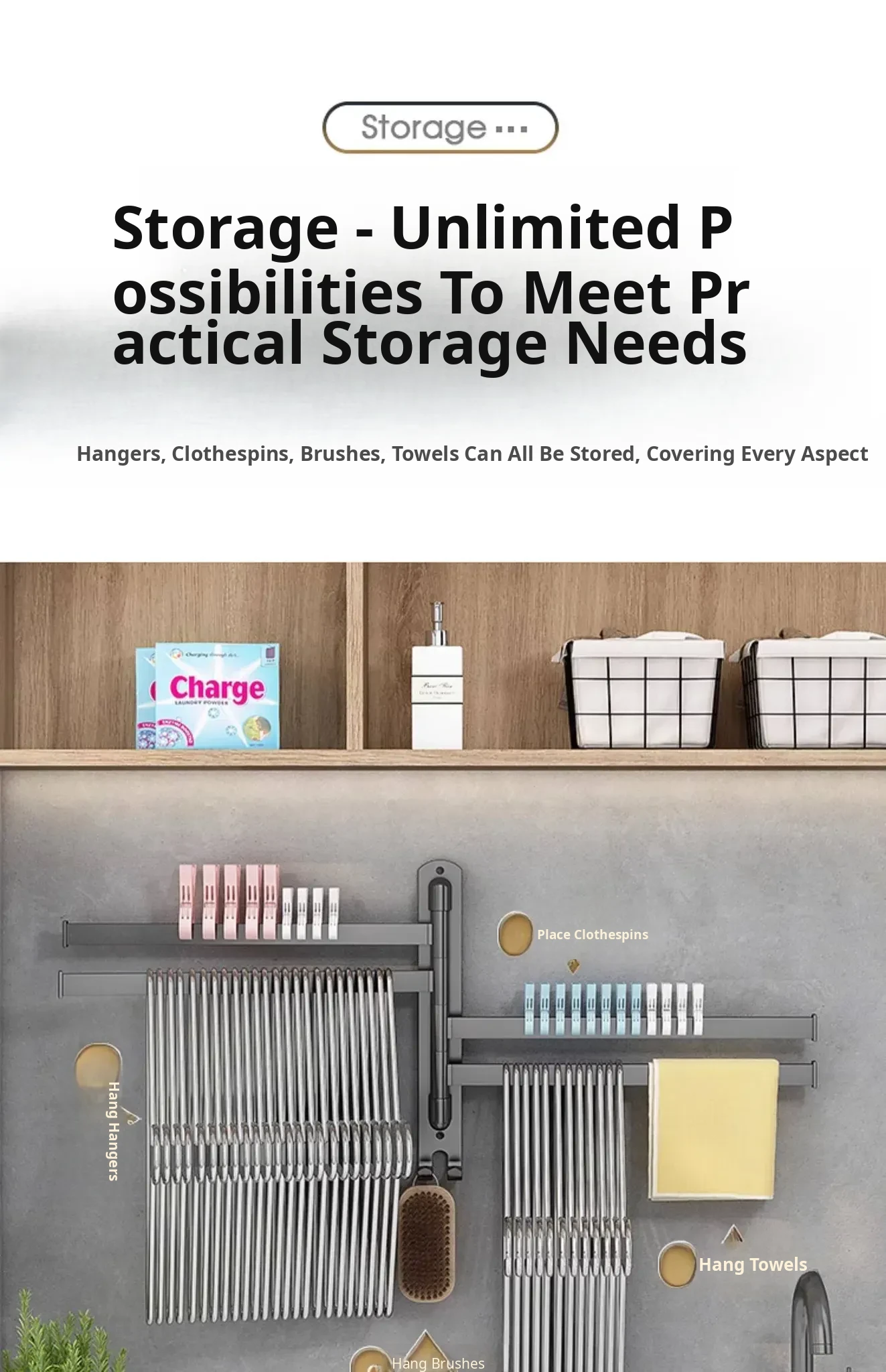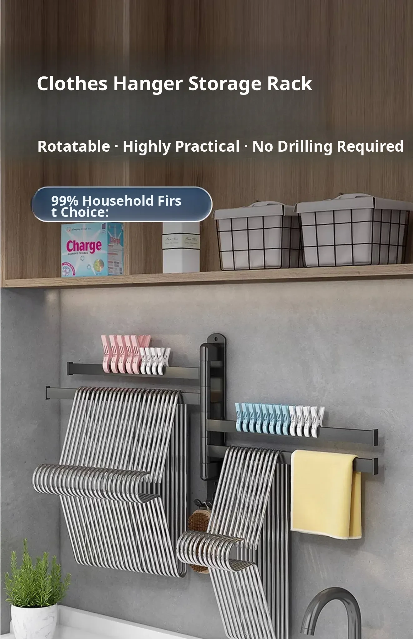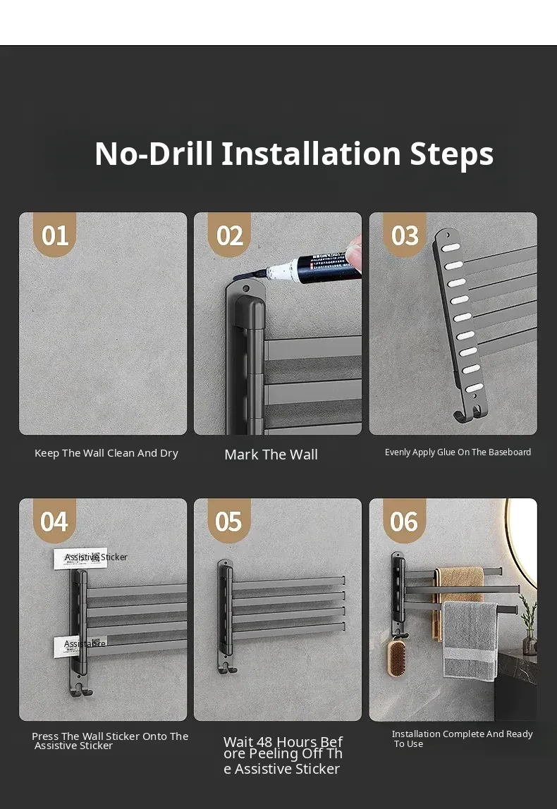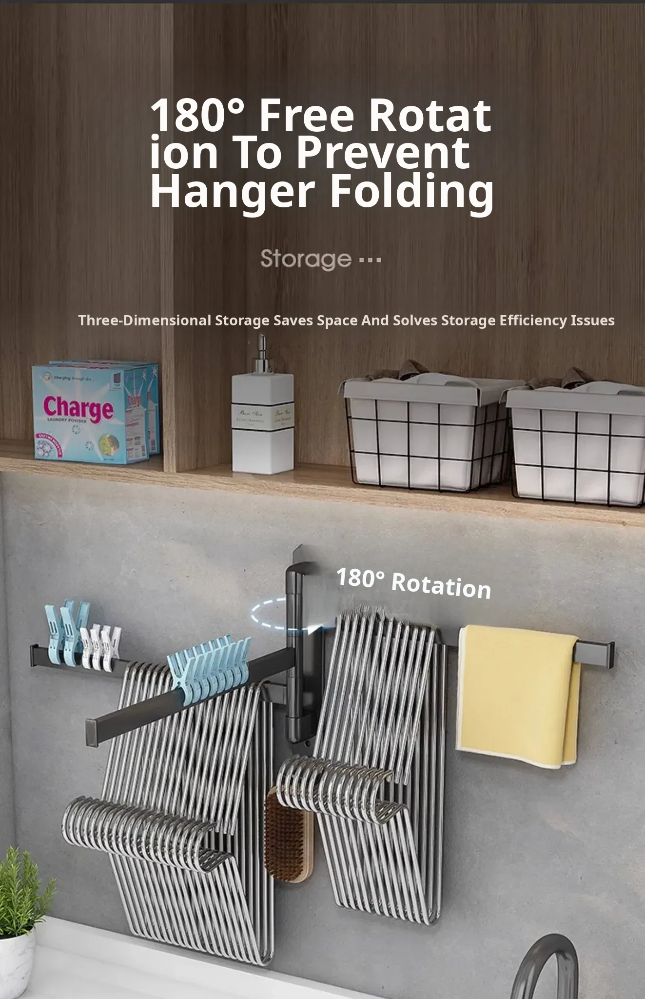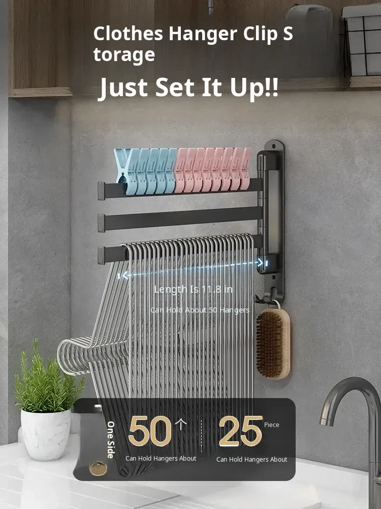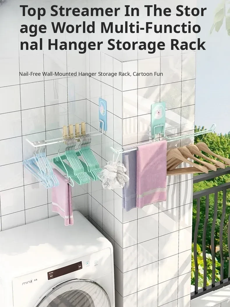Foldable Wall-Mounted Clothes Drying Rack with Hooks - No Drilling Required, Perfect for Balcony Organization and Maximizing Space!