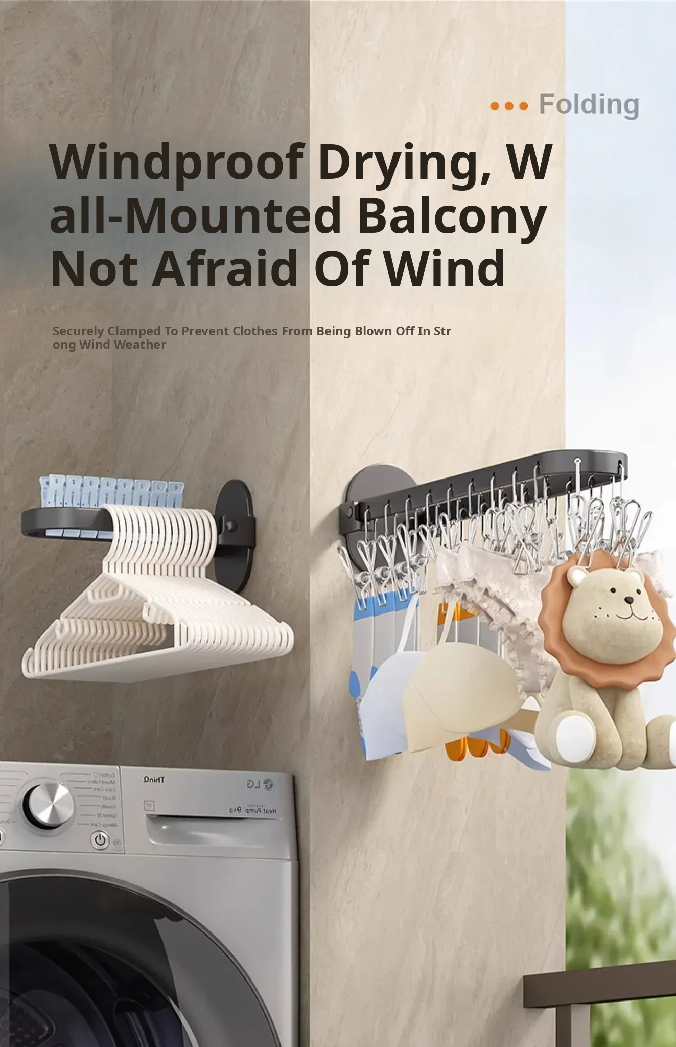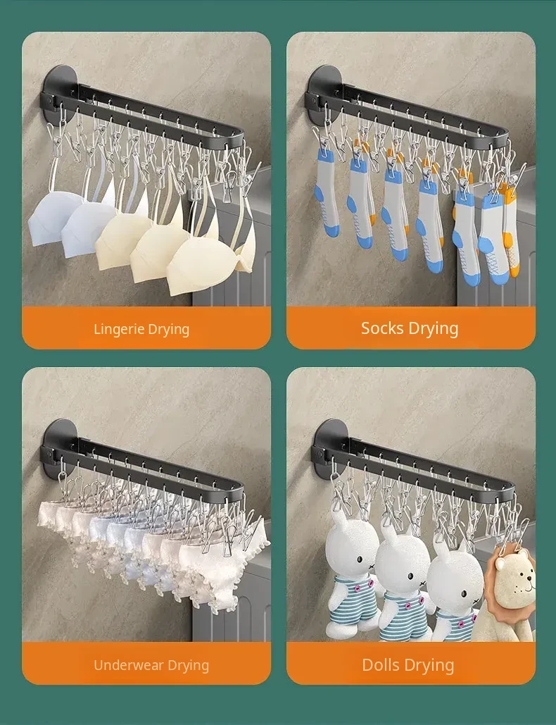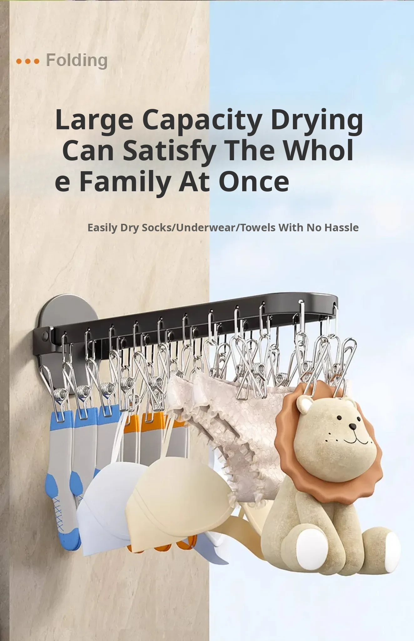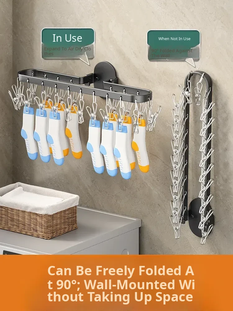 Foldable Wall-Mounted Drying Rack with Multiple Clips - Perfect for Socks, Underwear, and Delicates! Ideal for Home and Balcony Use, Space-Saving Design for Efficient Drying.