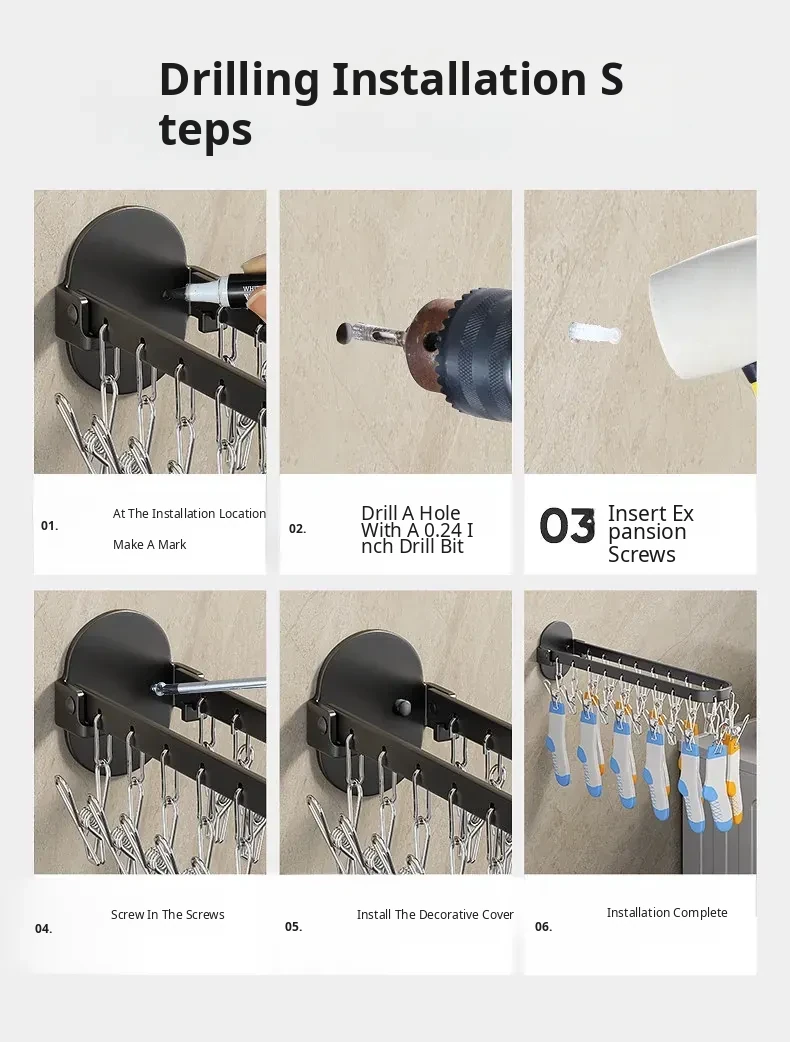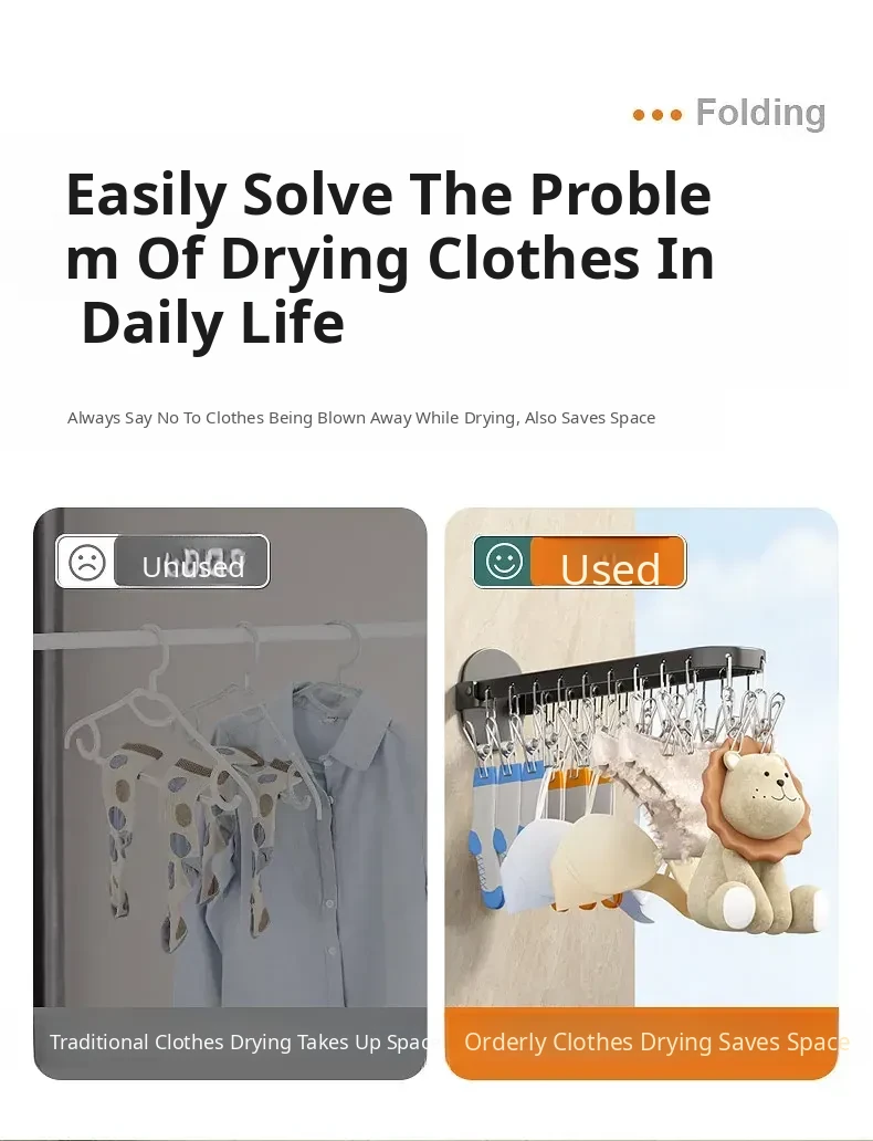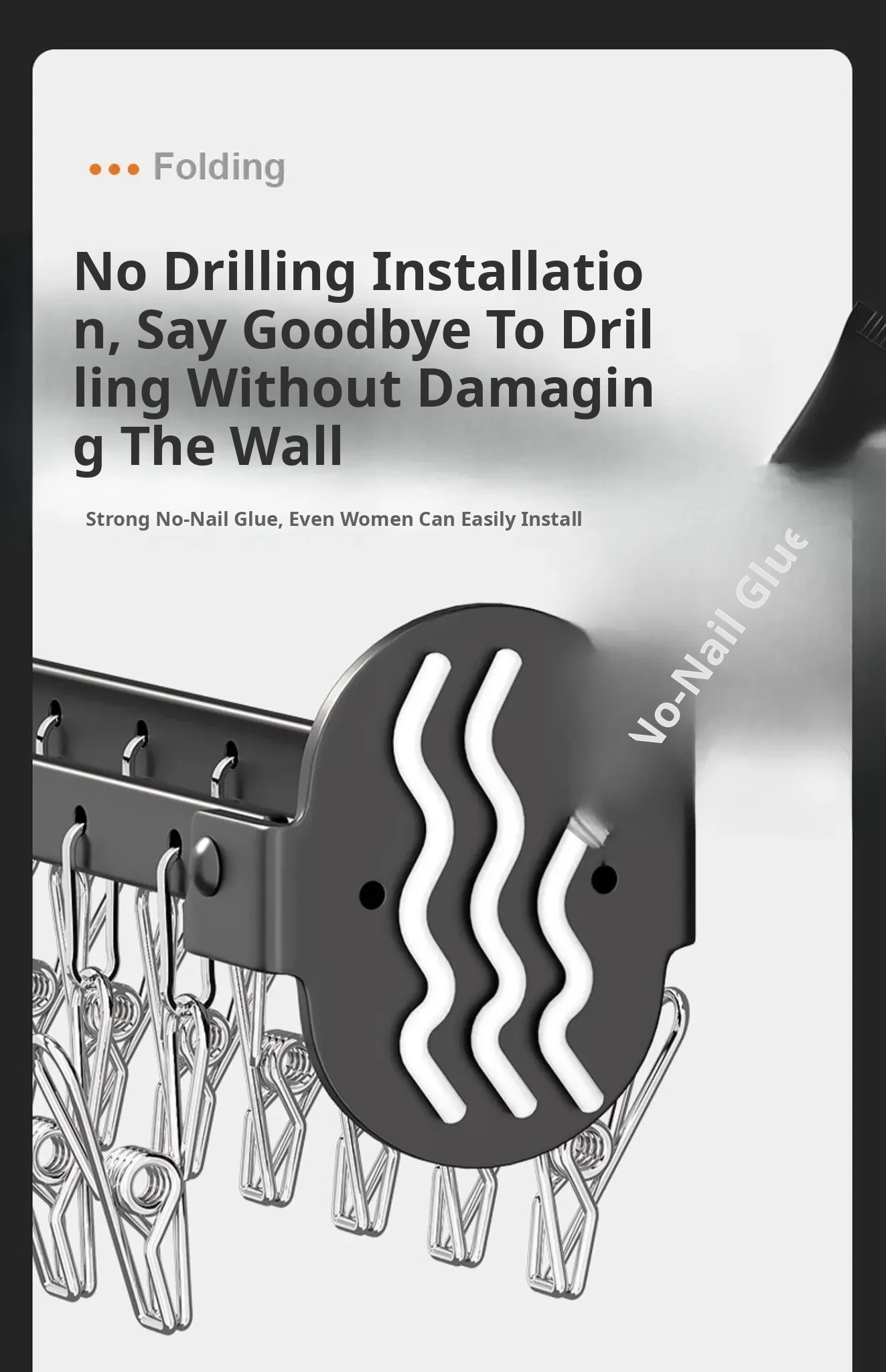 Foldable Wall-Mounted Drying Rack with Multiple Clips - Perfect for Socks, Underwear, and Delicates! Ideal for Home and Balcony Use, Space-Saving Design for Efficient Drying.
