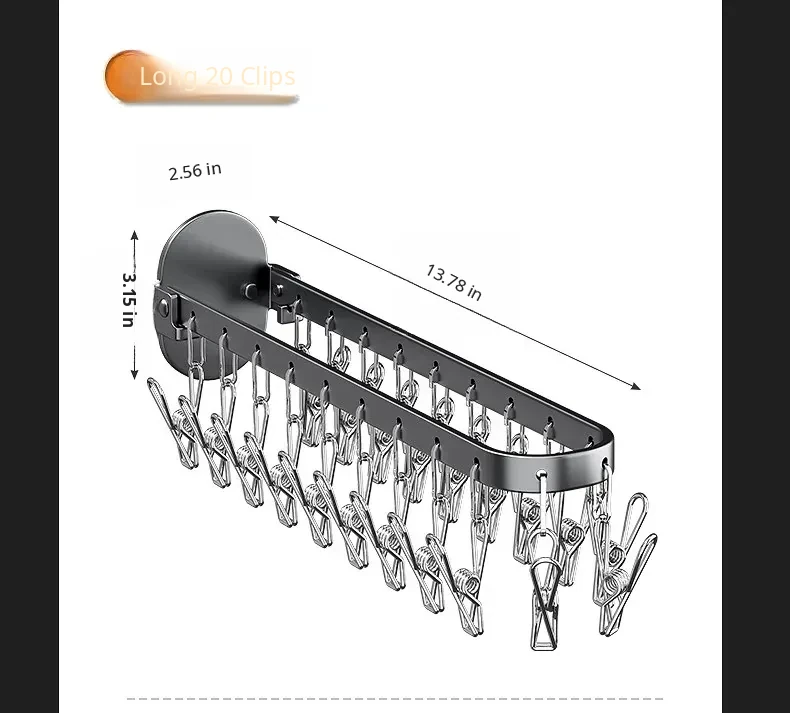 Black●Long Foldable Sock Clips●20 Clips [1 Pack]