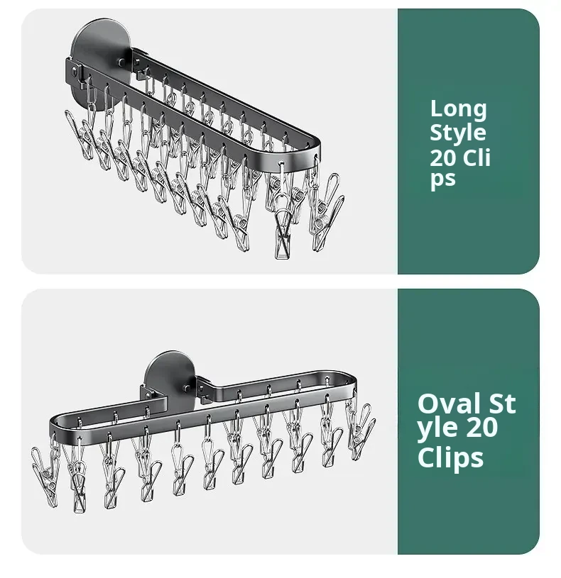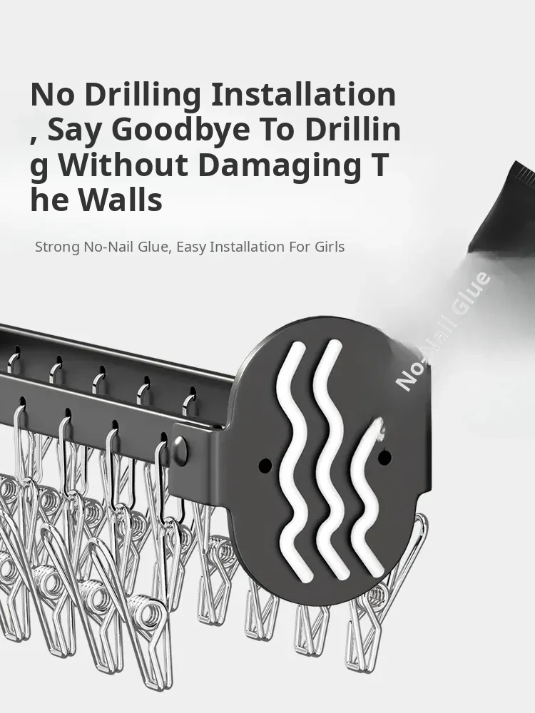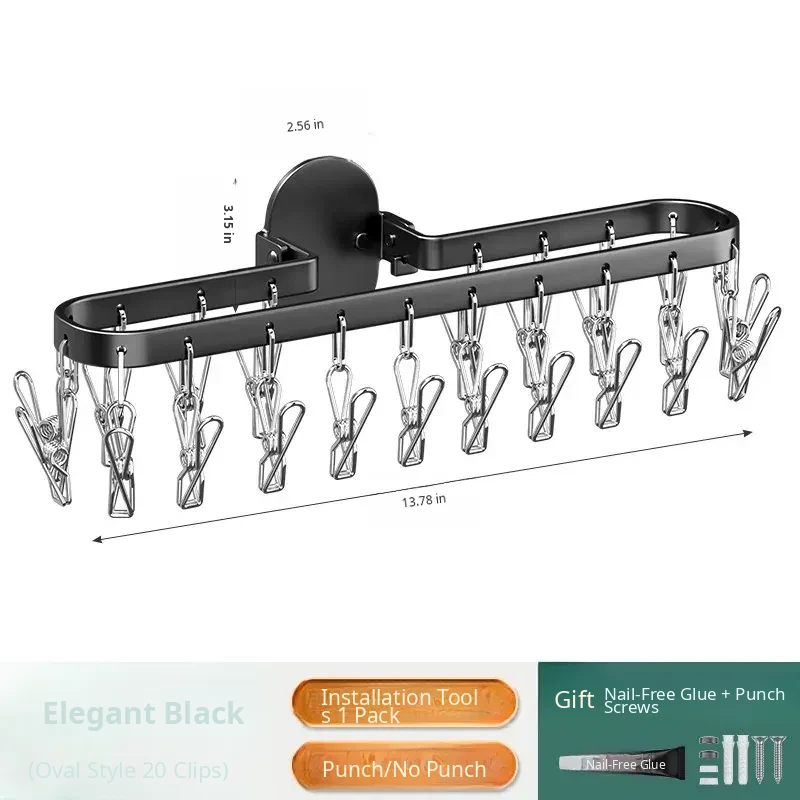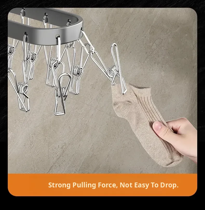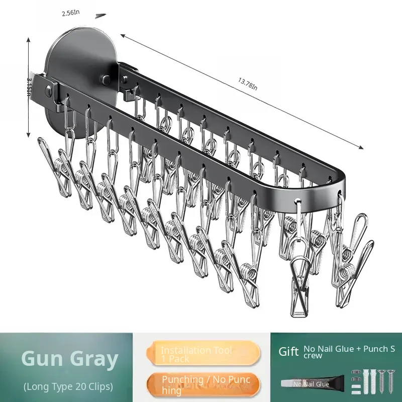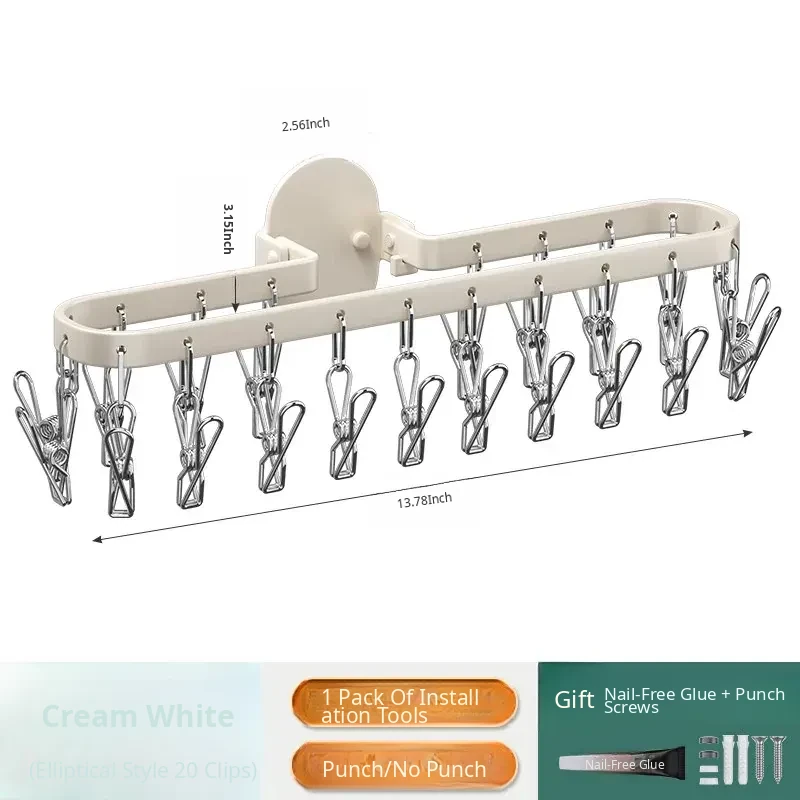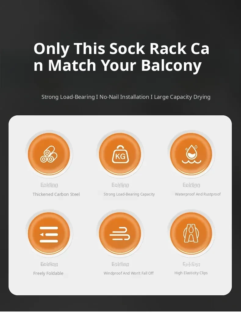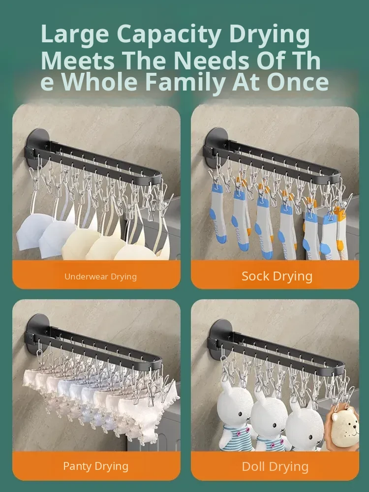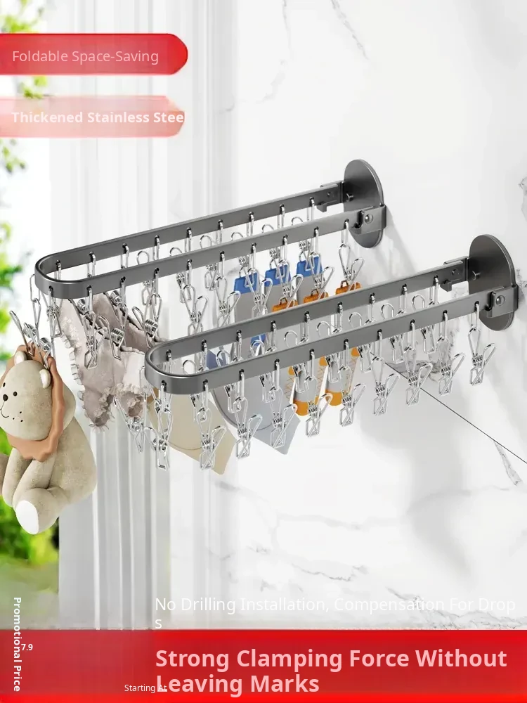 Folding Sock Drying Rack - No Drill Wall-Mounted Multi-Functional Clothes Hanger for Balcony, Ideal for Home Use with Multiple Clips for Efficient Drying