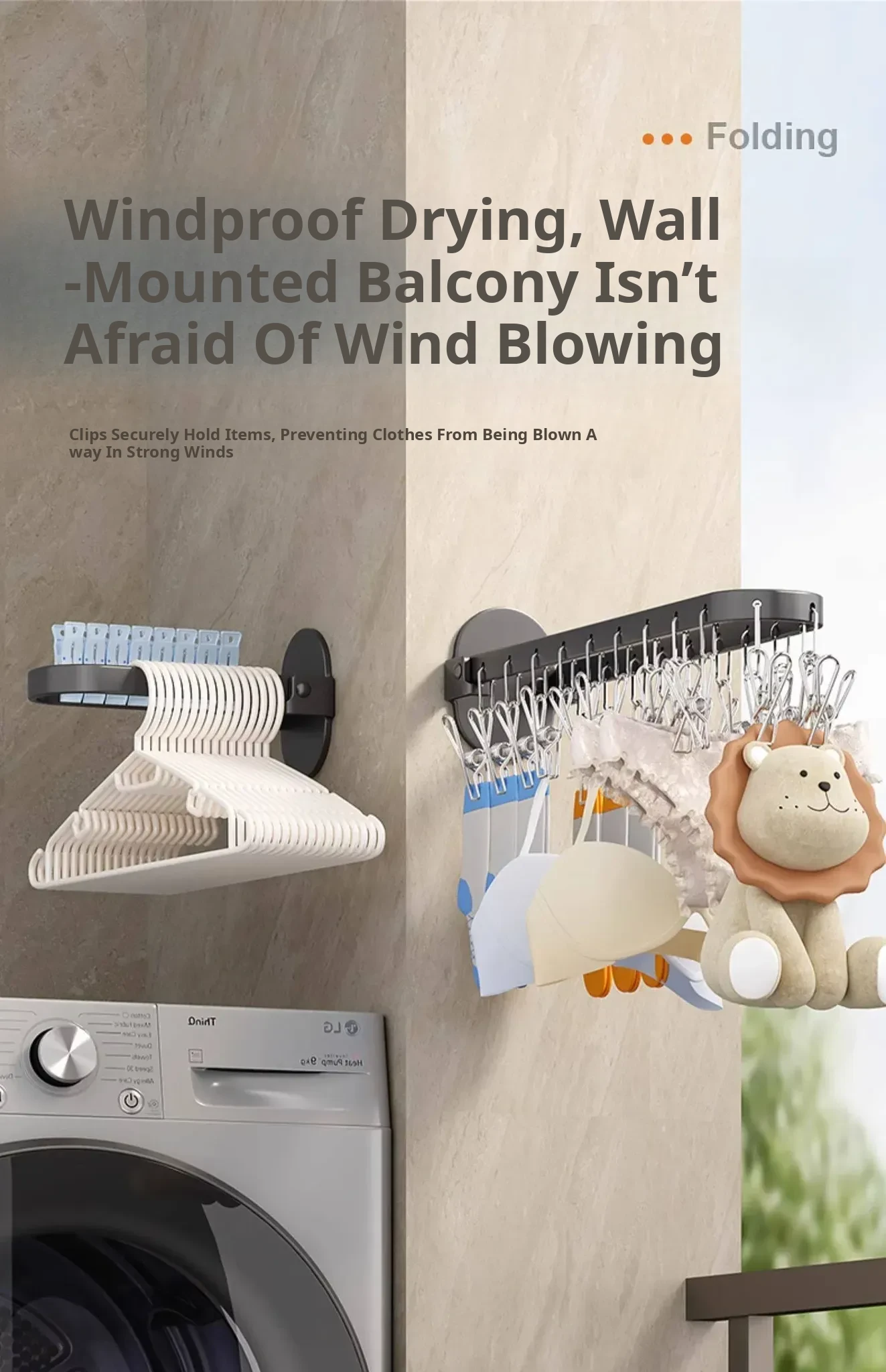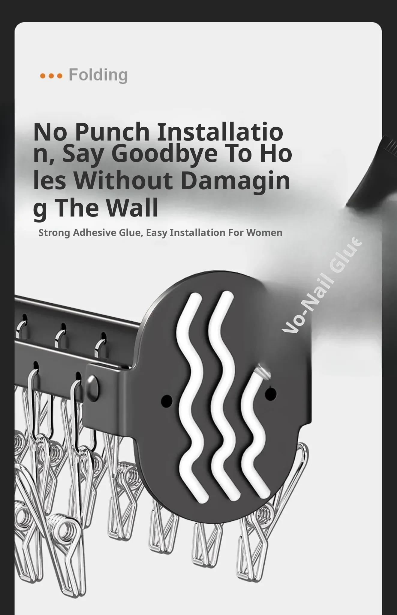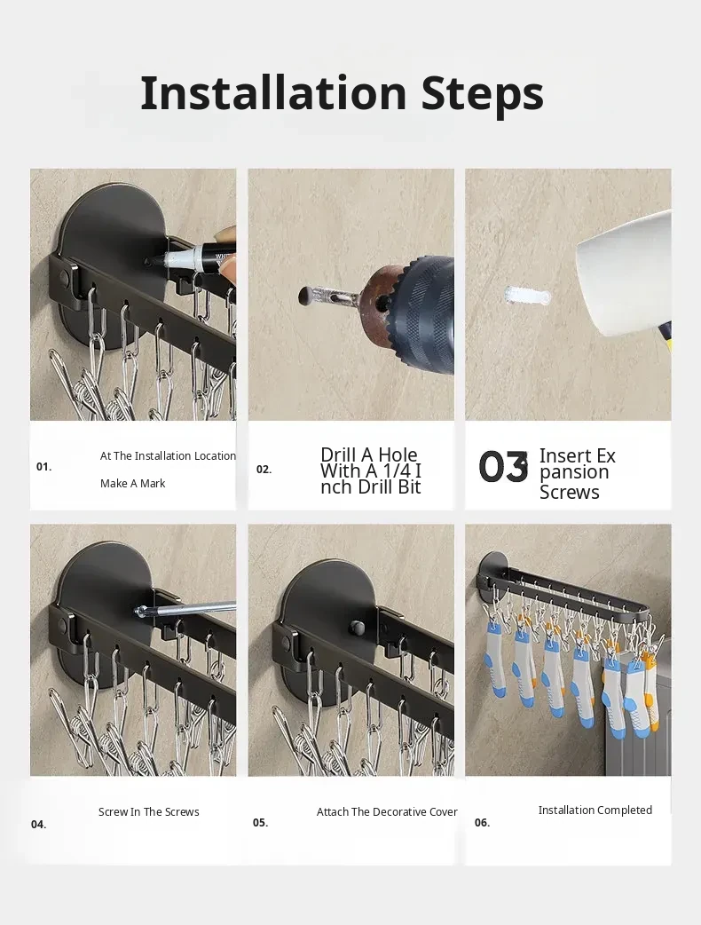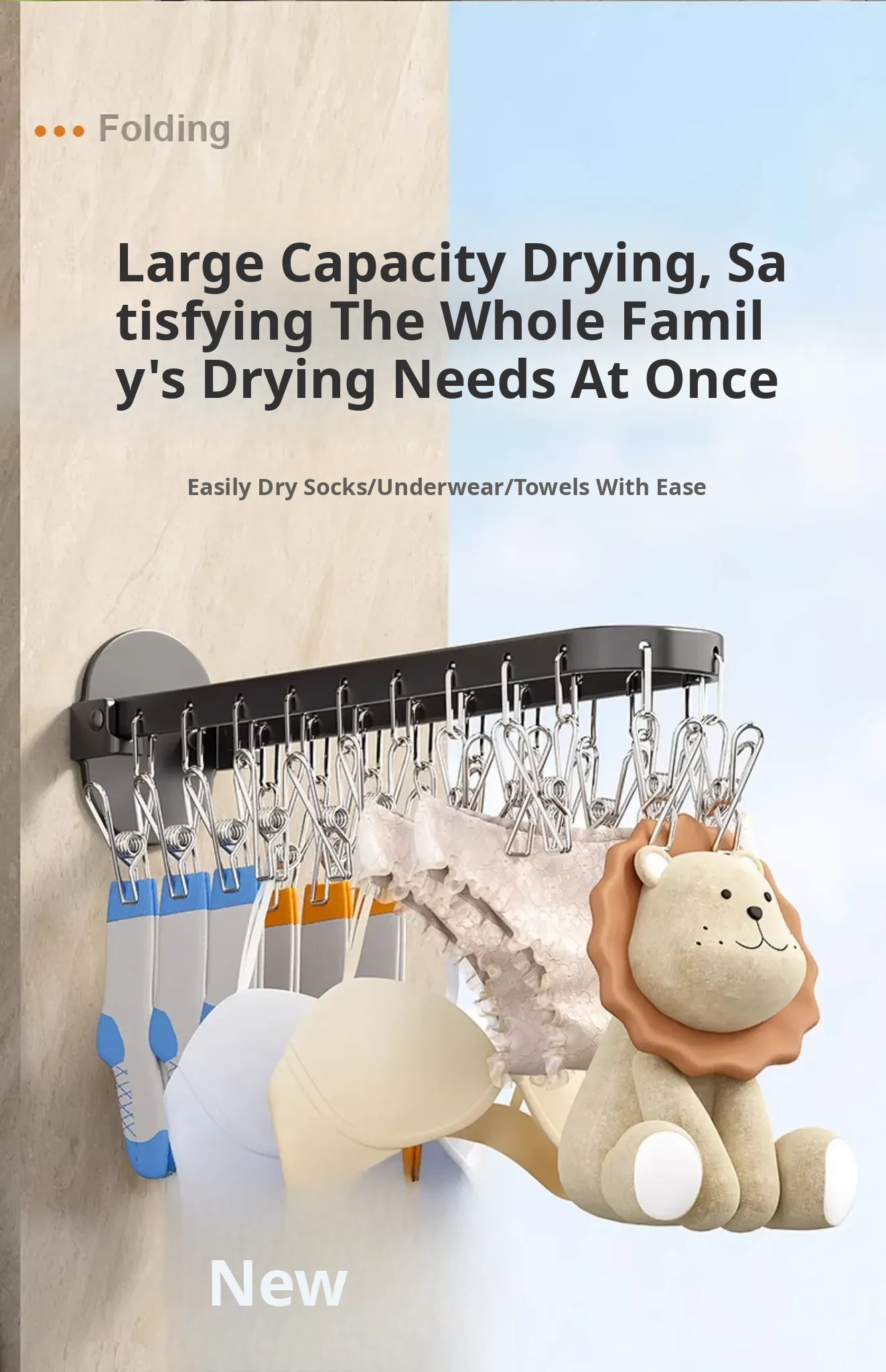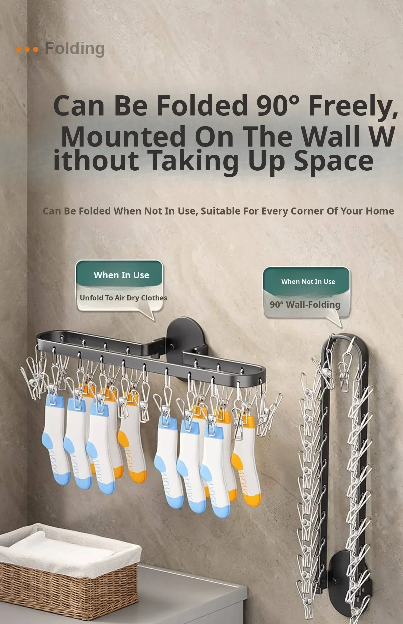 Folding Sock Drying Rack - No Drill Wall-Mounted Multi-Functional Clothes Hanger for Balcony, Ideal for Home Use with Multiple Clips for Efficient Drying