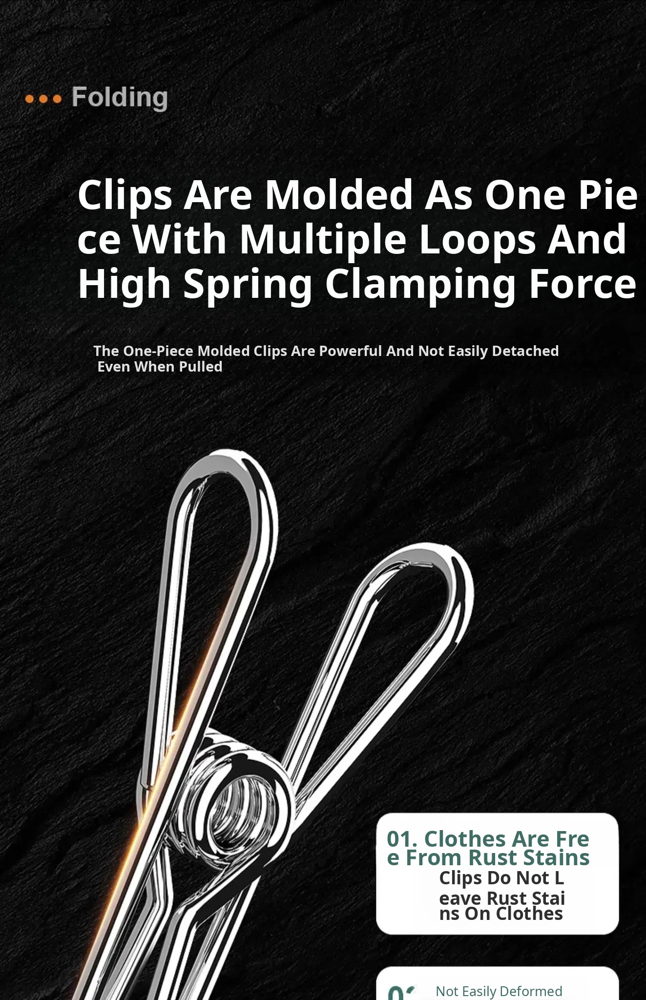 Black●Long Foldable Sock Clips●20 Clips [1 Pack]