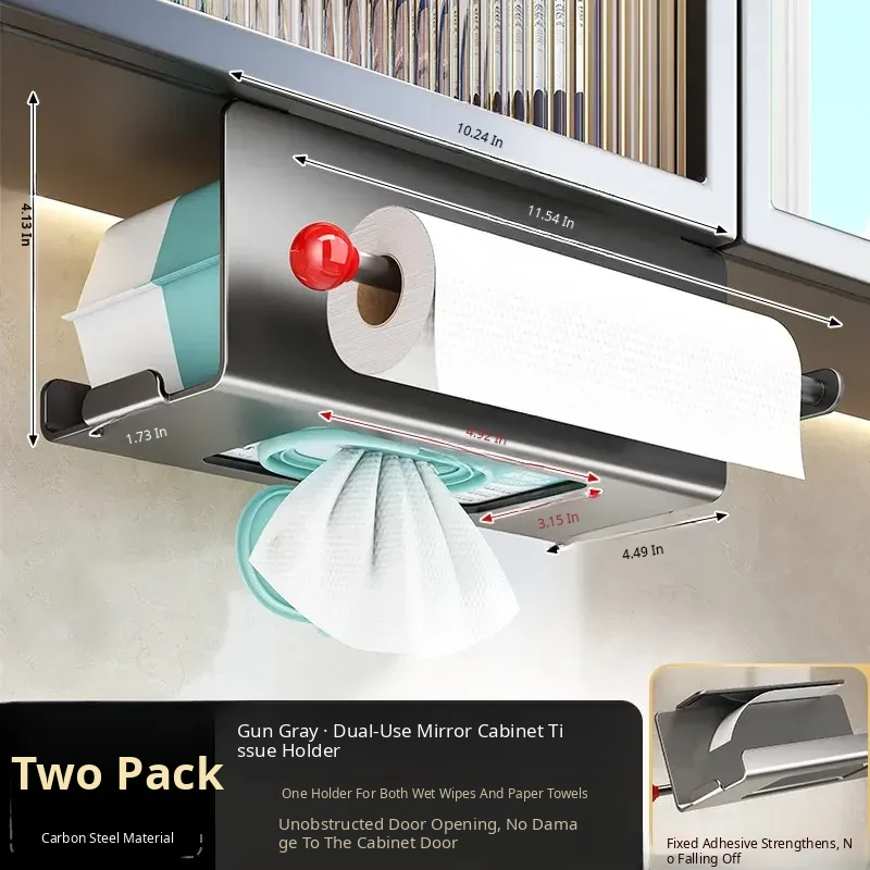 Gun Ash●Cabinet Paper Towel Holder [Universal for Tissue/Roll Paper] 2 Pack