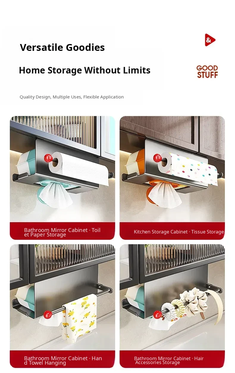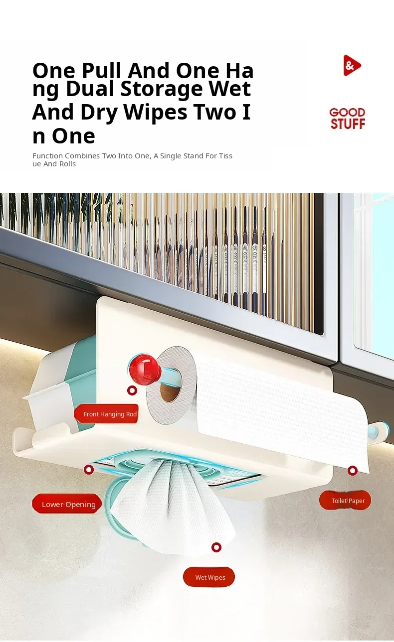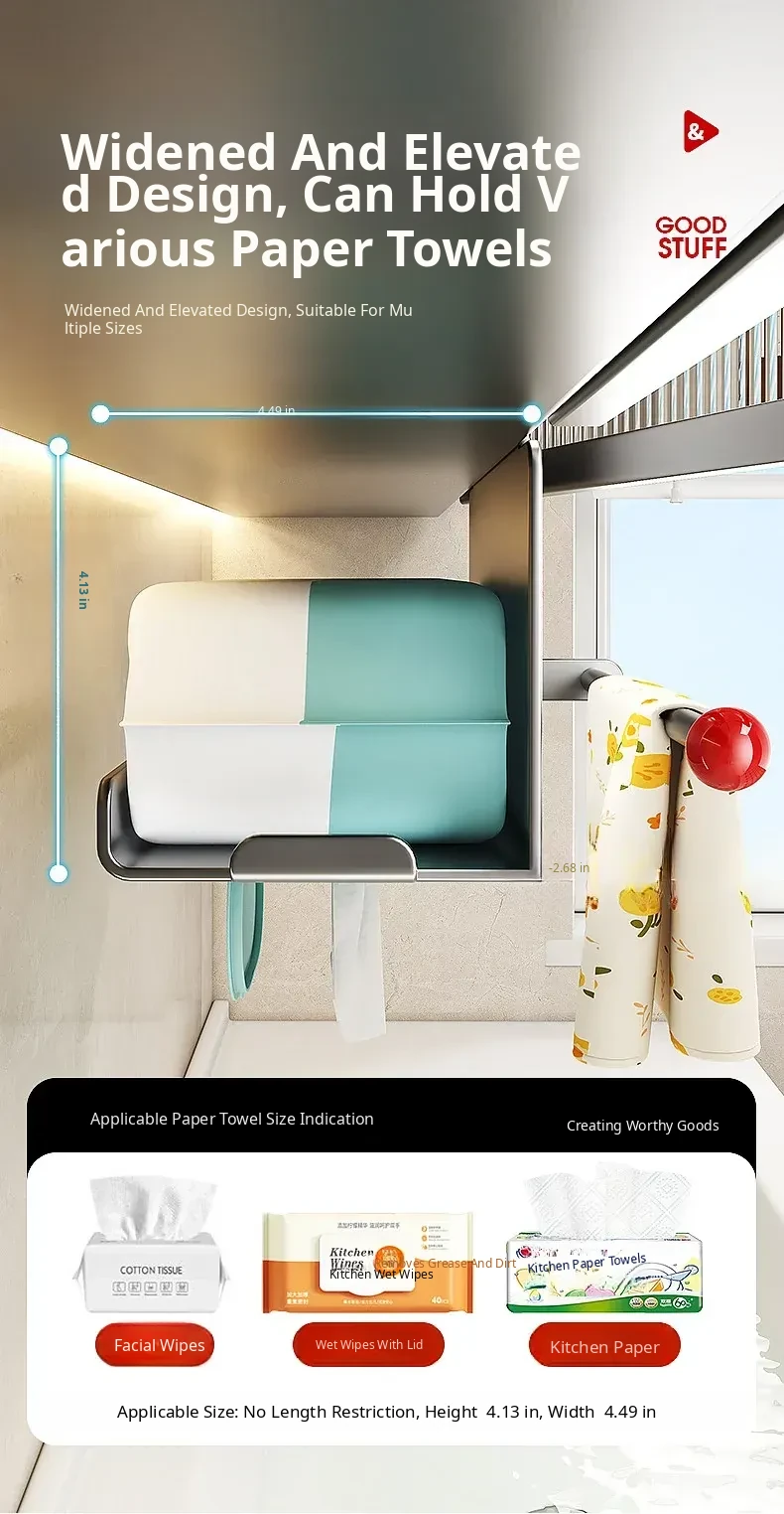Hanging Tissue Holder for Kitchen and Bathroom – No Drilling Needed, Space-Saving Overhead Storage for Paper Towels, Face Cloths, and More, Perfect for Organizing Your Toilet and Vanity Area