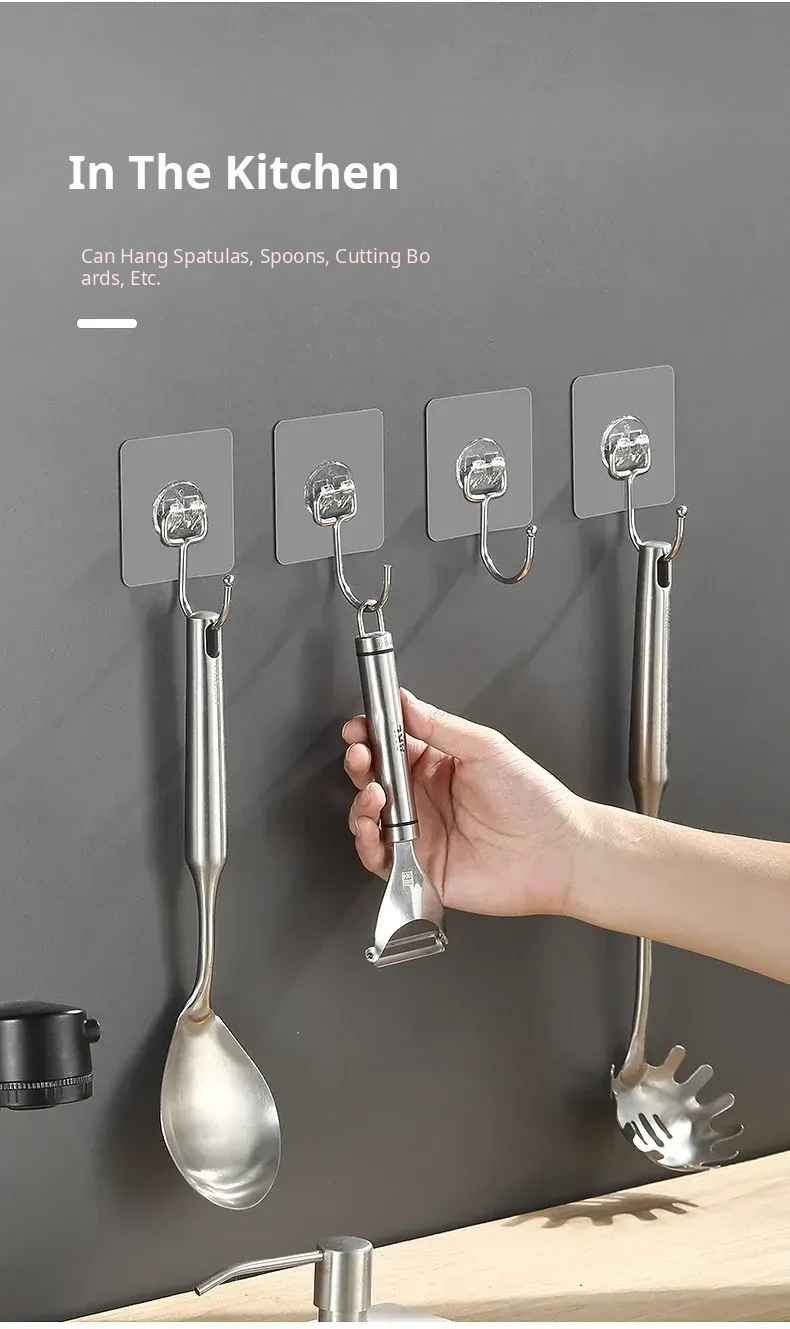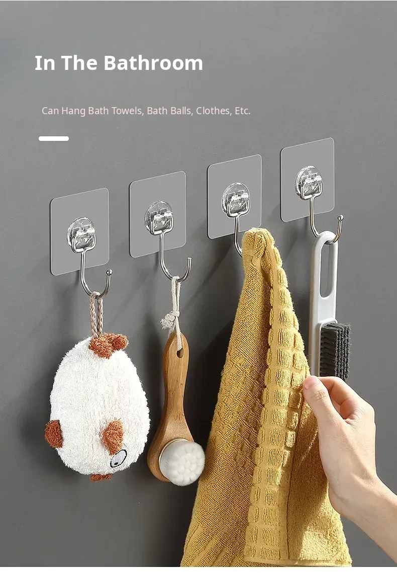 Heavy-Duty Adhesive Wall Hooks for Kitchen and Bathroom – No Drilling Required, Perfect for Hanging Towels and Clothes, Damage-Free Sticky Hooks for Toilet and Shower Use