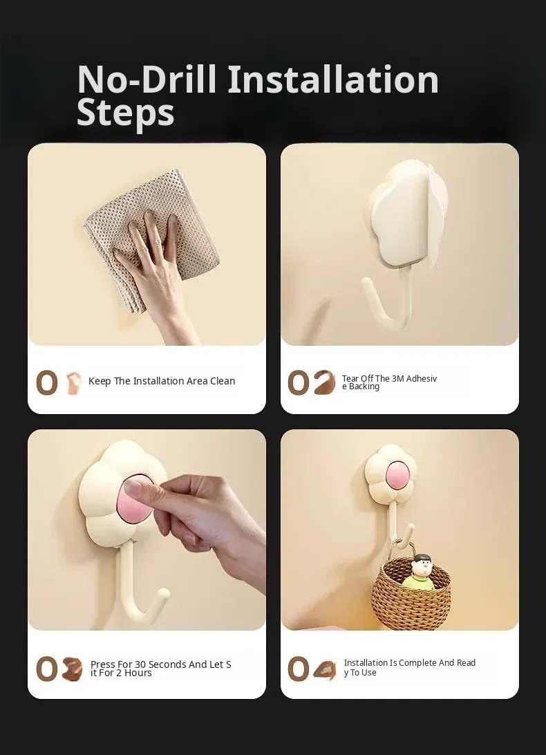 Heavy-Duty Adhesive Wall Hooks - No Drilling Required! Perfect for Dorms, Bathrooms, and Kitchens. Damage-Free Plastic Hooks for Clothes and Accessories - Easy to Install and Remove!