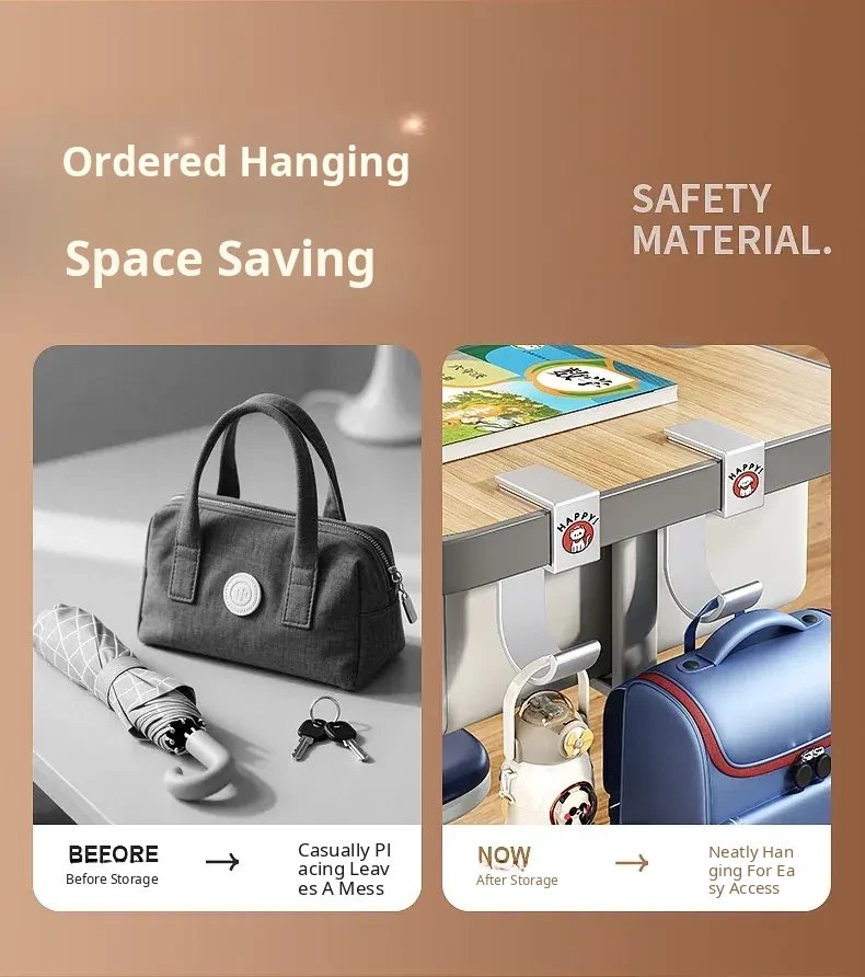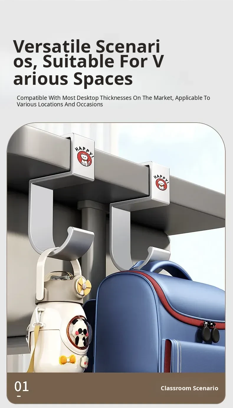 Heavy-Duty Hook for Student Desks - No Drill, No Trace Bag Hanger for Dorms and Offices - Perfect for Organizing and Saving Space!