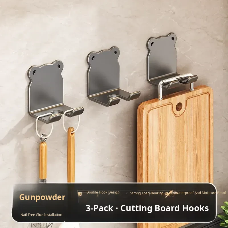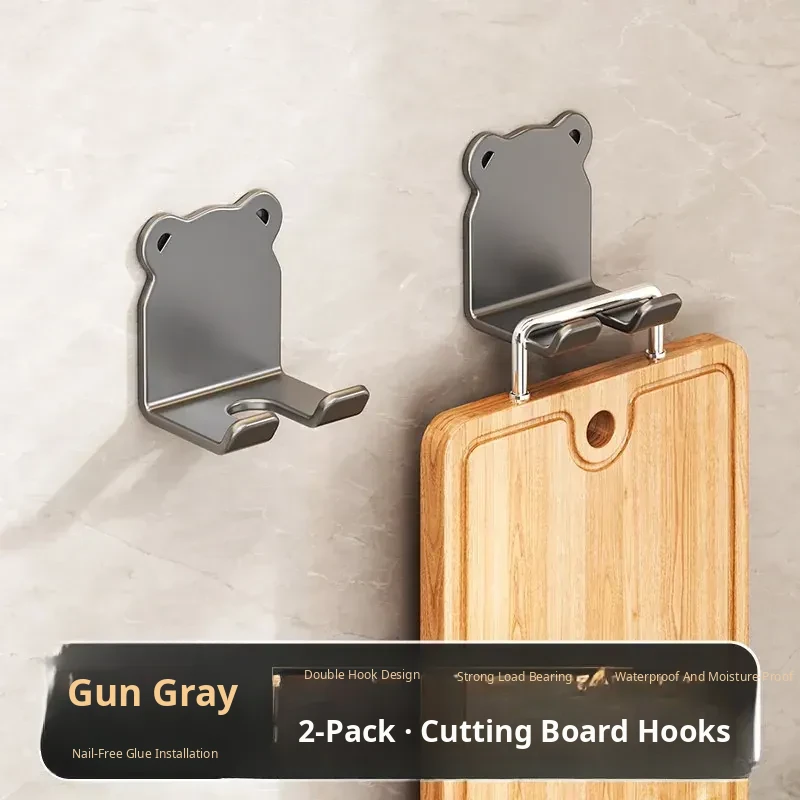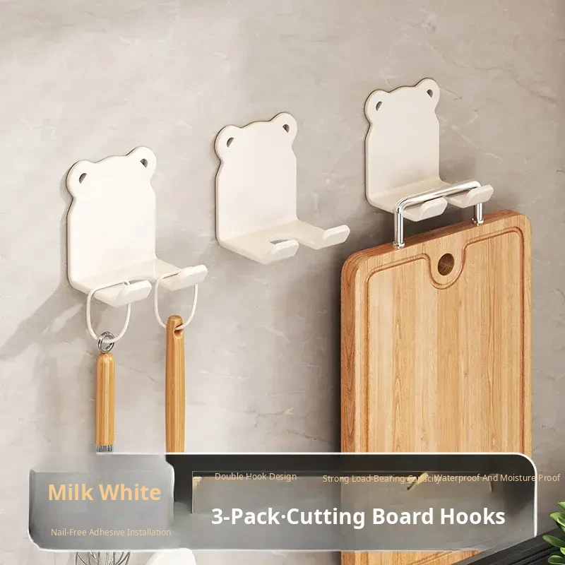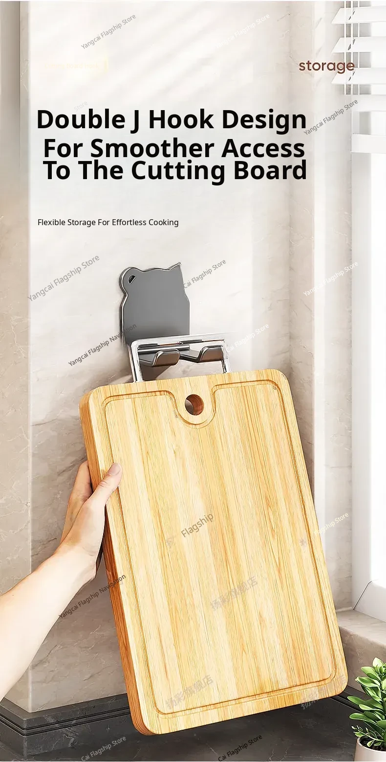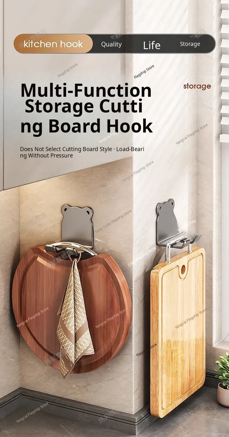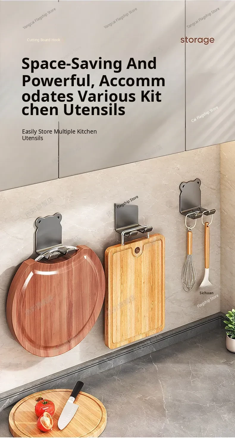 Heavy-Duty No-Drill Kitchen Cutting Board Hooks - Wall-Mounted Storage Rack for Chopping Boards and Kitchen Utensils, Perfect for Organized Cooking Spaces!