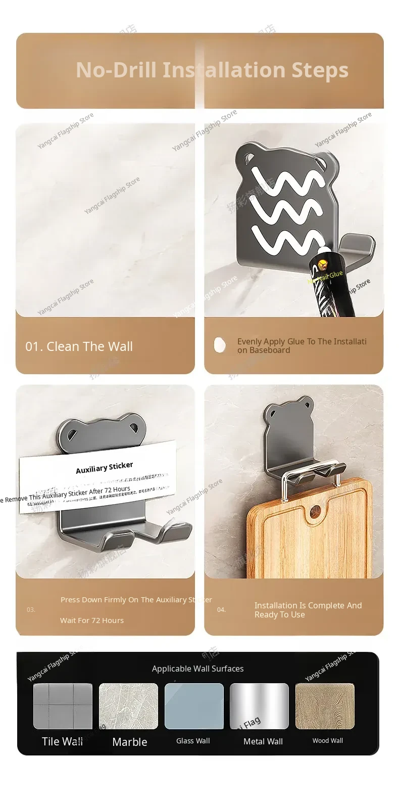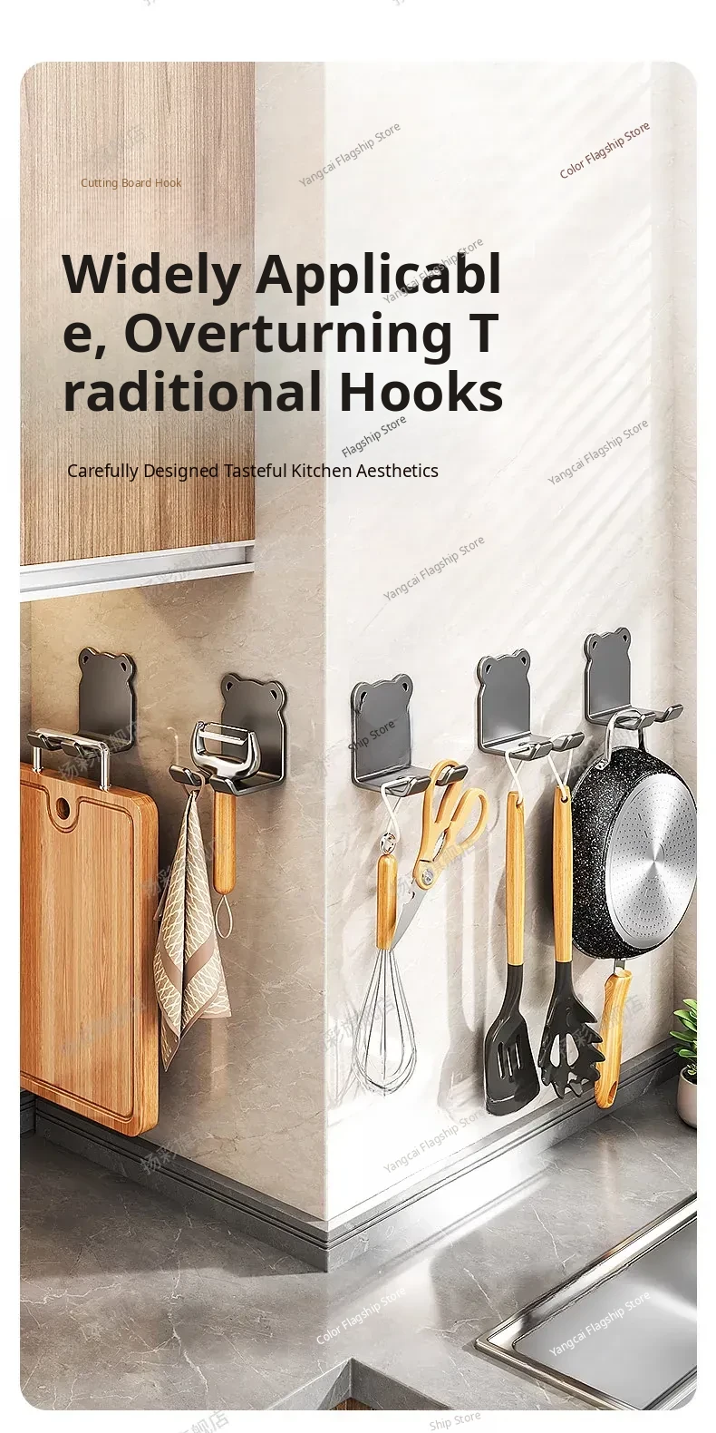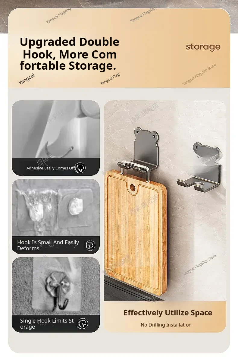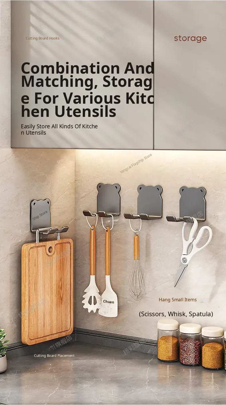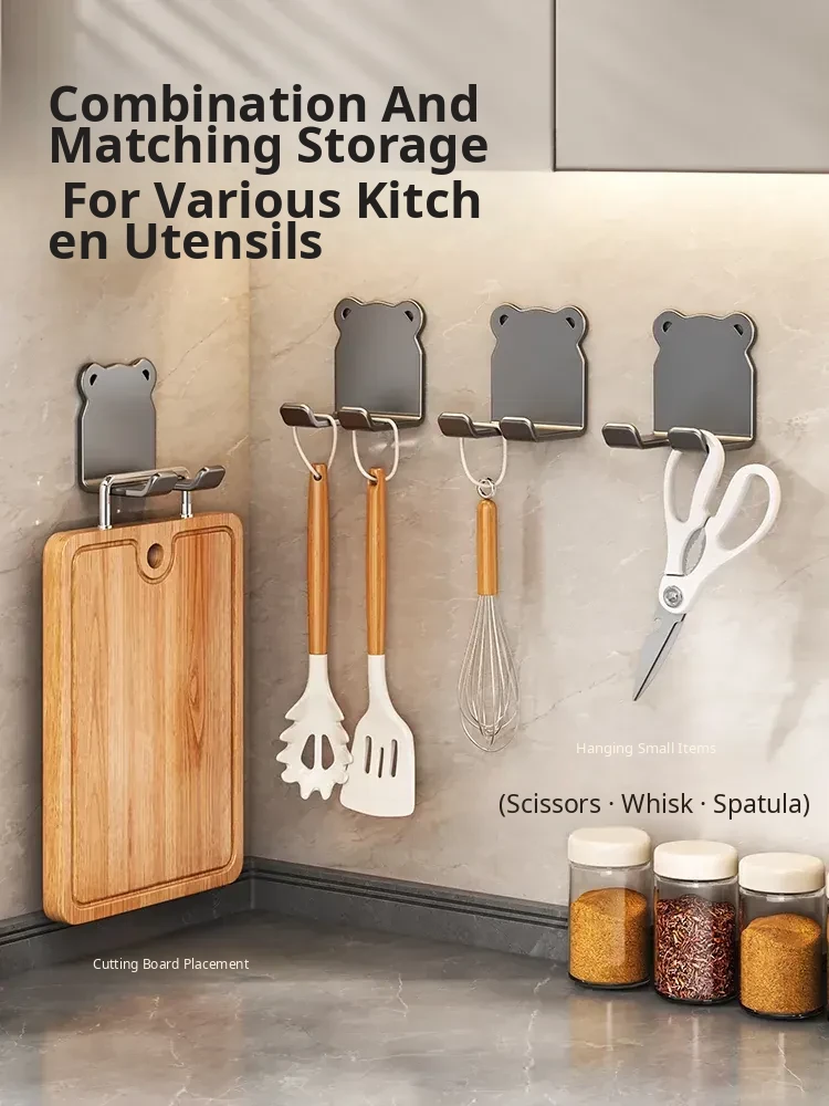 Heavy-Duty No-Drill Kitchen Cutting Board Hooks - Wall-Mounted Storage Rack for Chopping Boards and Kitchen Utensils, Perfect for Organized Cooking Spaces!