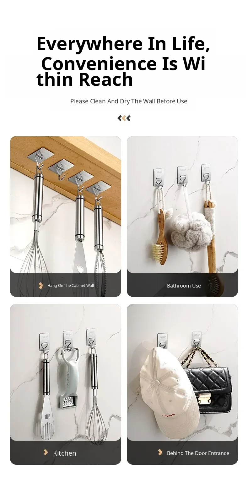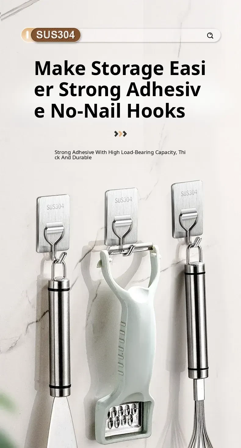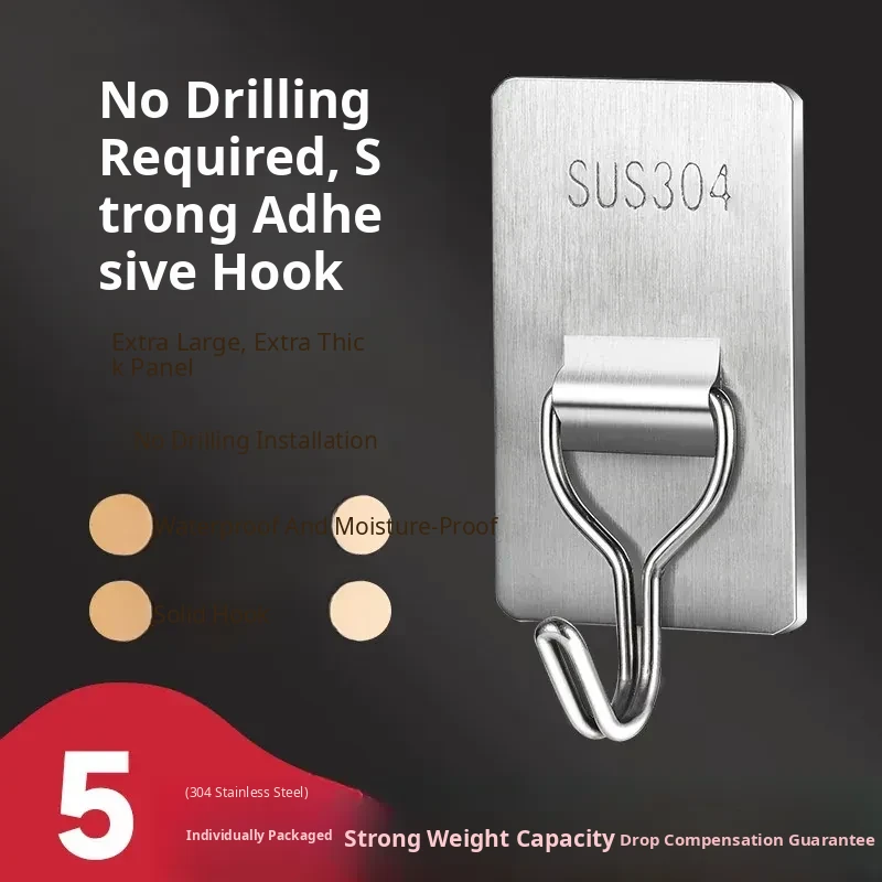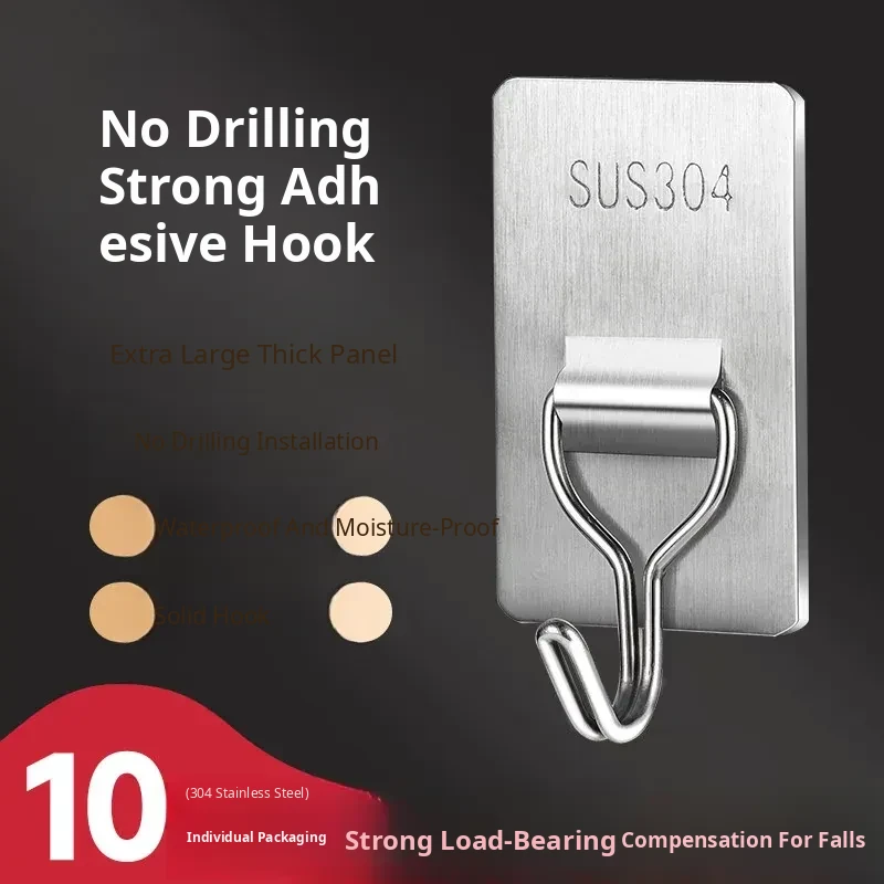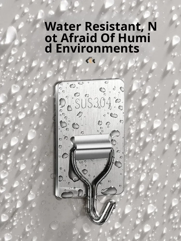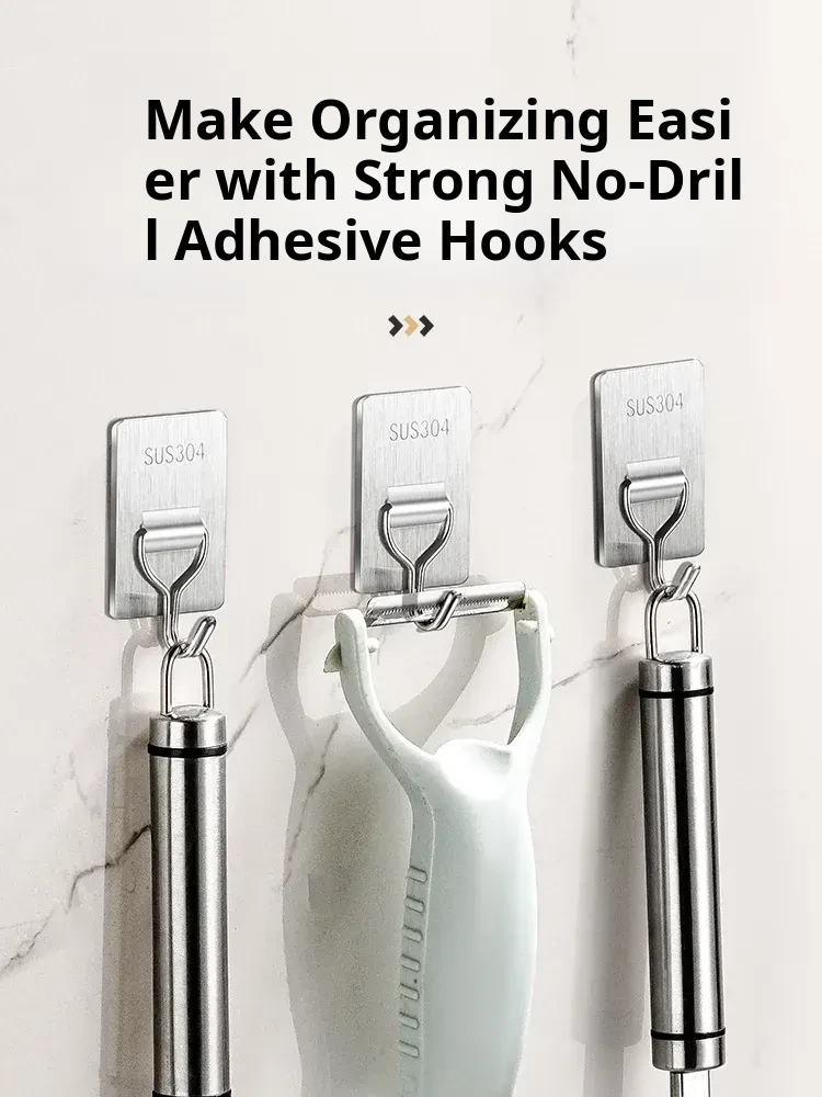 Heavy-Duty No-Drill Stainless Steel Adhesive Hooks - Strong, Damage-Free, Perfect for Kitchen Doors, Bathroom Walls, and Dorm Rooms